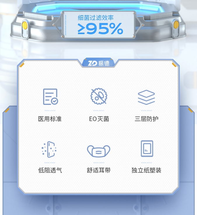 振德(ZHENDE)德美舒医用外科口罩 透气口罩 灭菌独立装 (二类医疗器械)50只/盒