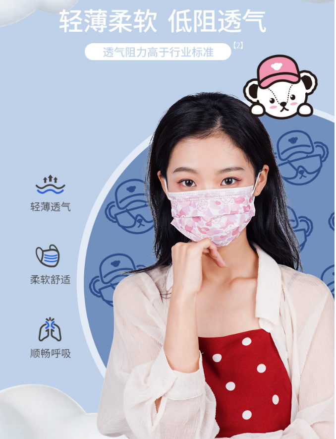 商品名称:振德浅蓝泰迪款外科口罩 50只/盒 独立装 商品毛重:450.00g 商品产地:中国大陆 货号:M742317180111K-15 口罩佩戴方式:耳戴式 类别:医用外科 口罩类型:折叠式 是否灭菌级:灭菌级 国产/进口:国产