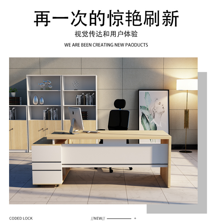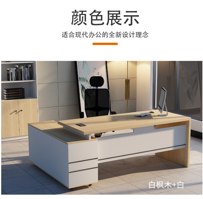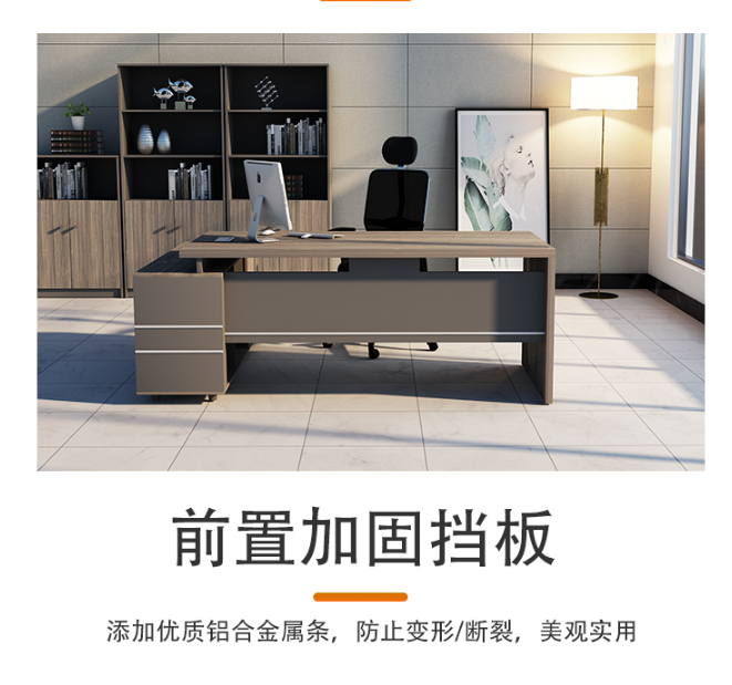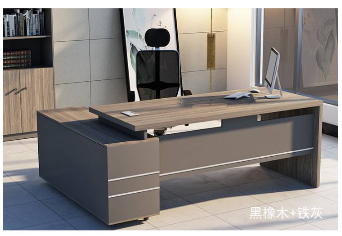 办公桌简约现代老板桌椅组合带柜电脑大班台单人经理主管职员工桌金宜轩 1.6米桌 黑橡木+铁灰 自营