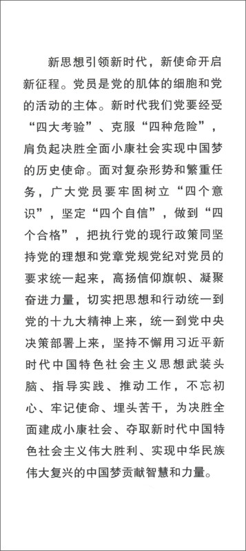 《新编党员实用手册(按照党的十九大精神和党章编写)》以党章党纪党规对党员的要求为依据,涵盖党员的基本条件和基本要求、合格党员的标准、预备党员相关知识、党员的义务和权利、党员的组织关系和组织生活、党员与党内选举、党员与党的纪律和规矩、党员行为规范、党员的党籍党龄党费等方面的内容,务实、全面,具有较强的系统性、指导性、知识性、针对性、实用性,能够帮助广大党员切实践行党员标准,校准价值航向,永葆先进性和纯洁性。