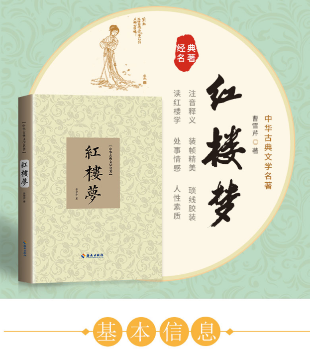 《红楼梦/中华古典文学名著》以贾、史、王、薛四大家族的兴衰为背景,以贾宝玉、林黛玉、薛宝钗的爱情故事为主线,刻画了以贾宝玉和金陵十二钗为中心的正邪两赋有情人的人性美和悲剧美,揭露了封建社会后期的种种黑暗和罪恶,及其不可克服的内在矛盾。中国封建社会的百科全书,传统文化的集大成者,被誉为中国古典四大名著之首。