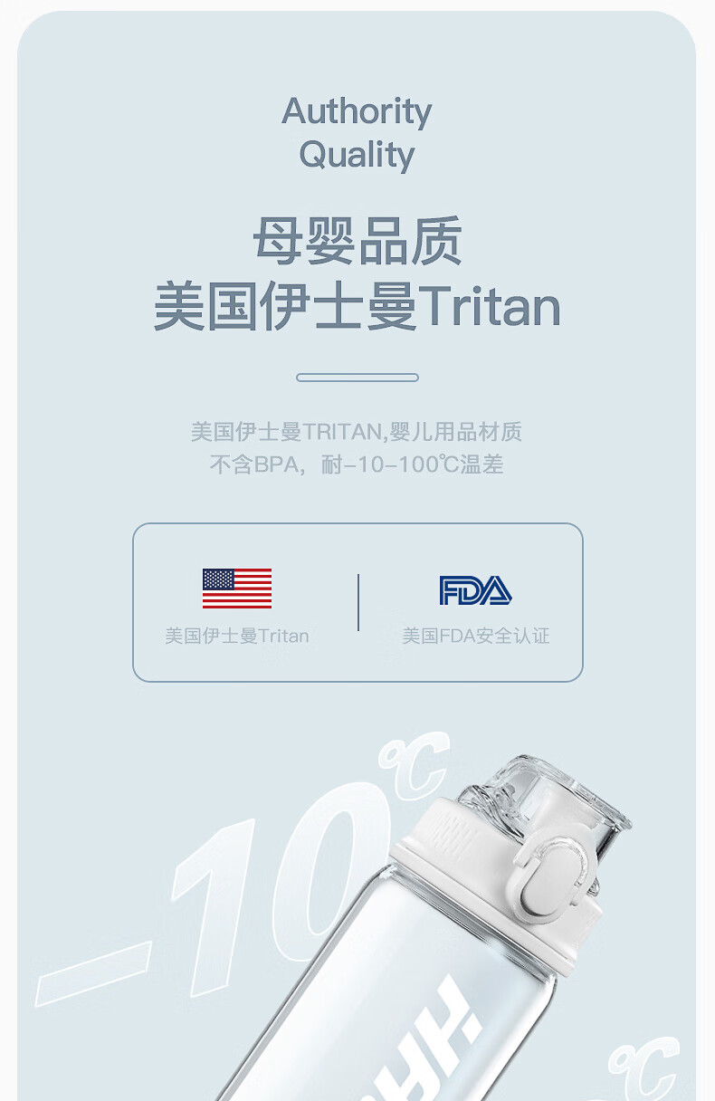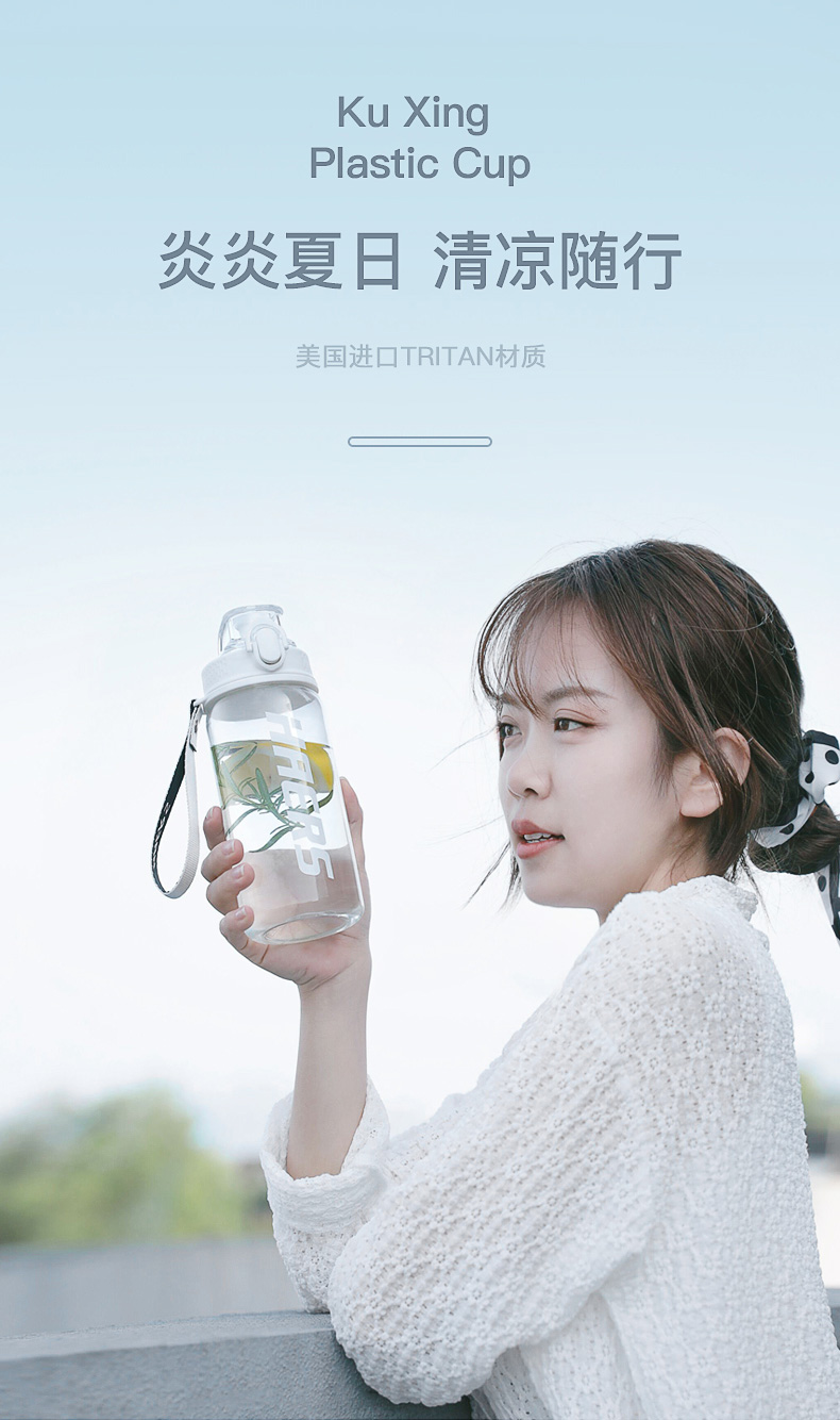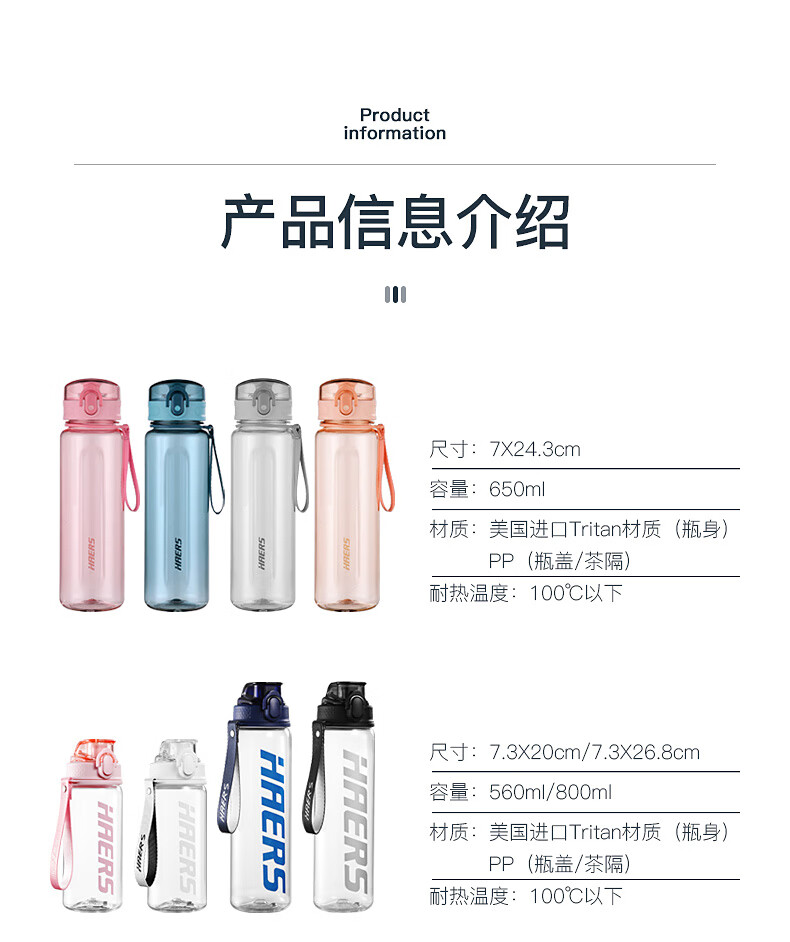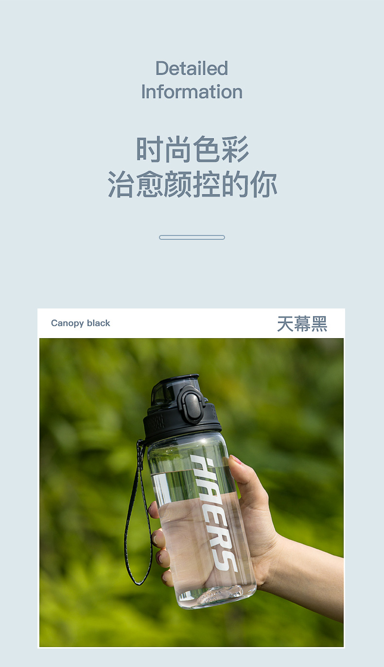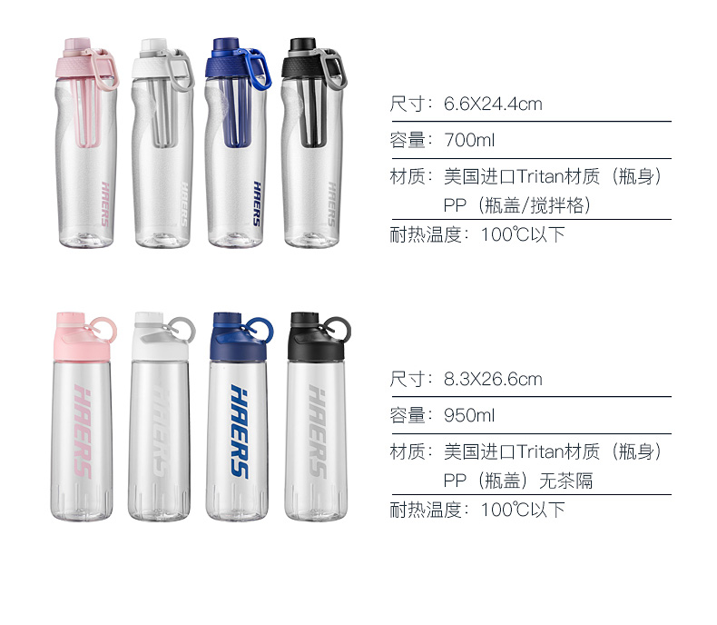 哈尔斯(HAERS)悦享炫彩休闲杯/抗摔耐高温夏季运动水杯Tritan材质男女大容量户外便携健身学生水壶 特价【750ml一键开盖】 HTR-27-13 自营