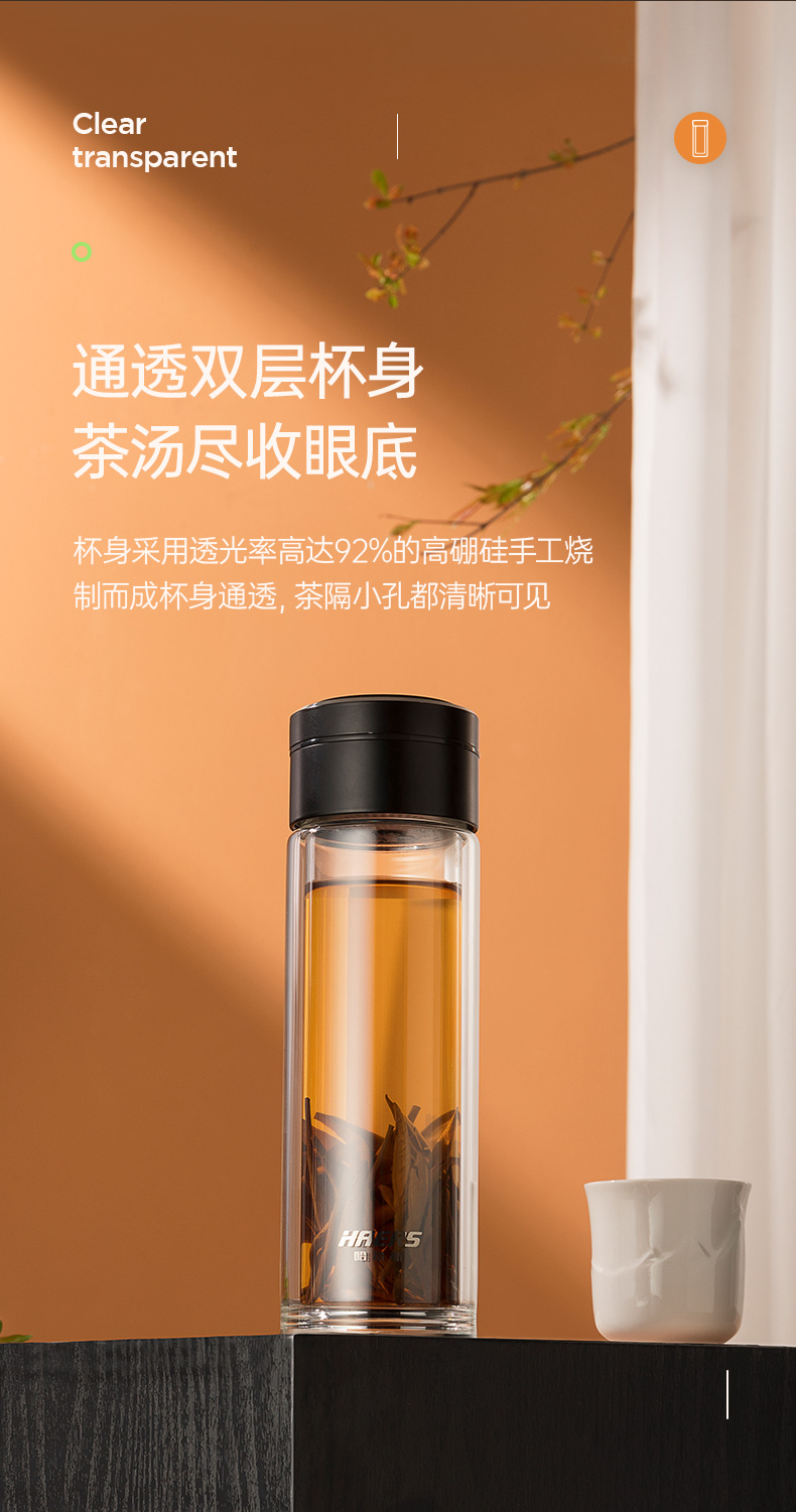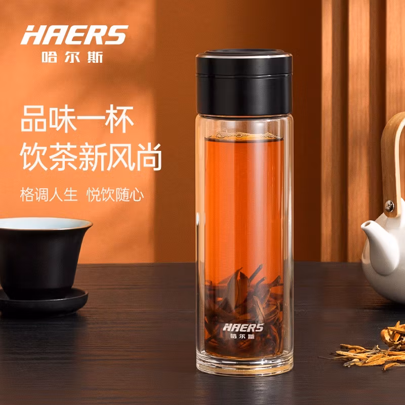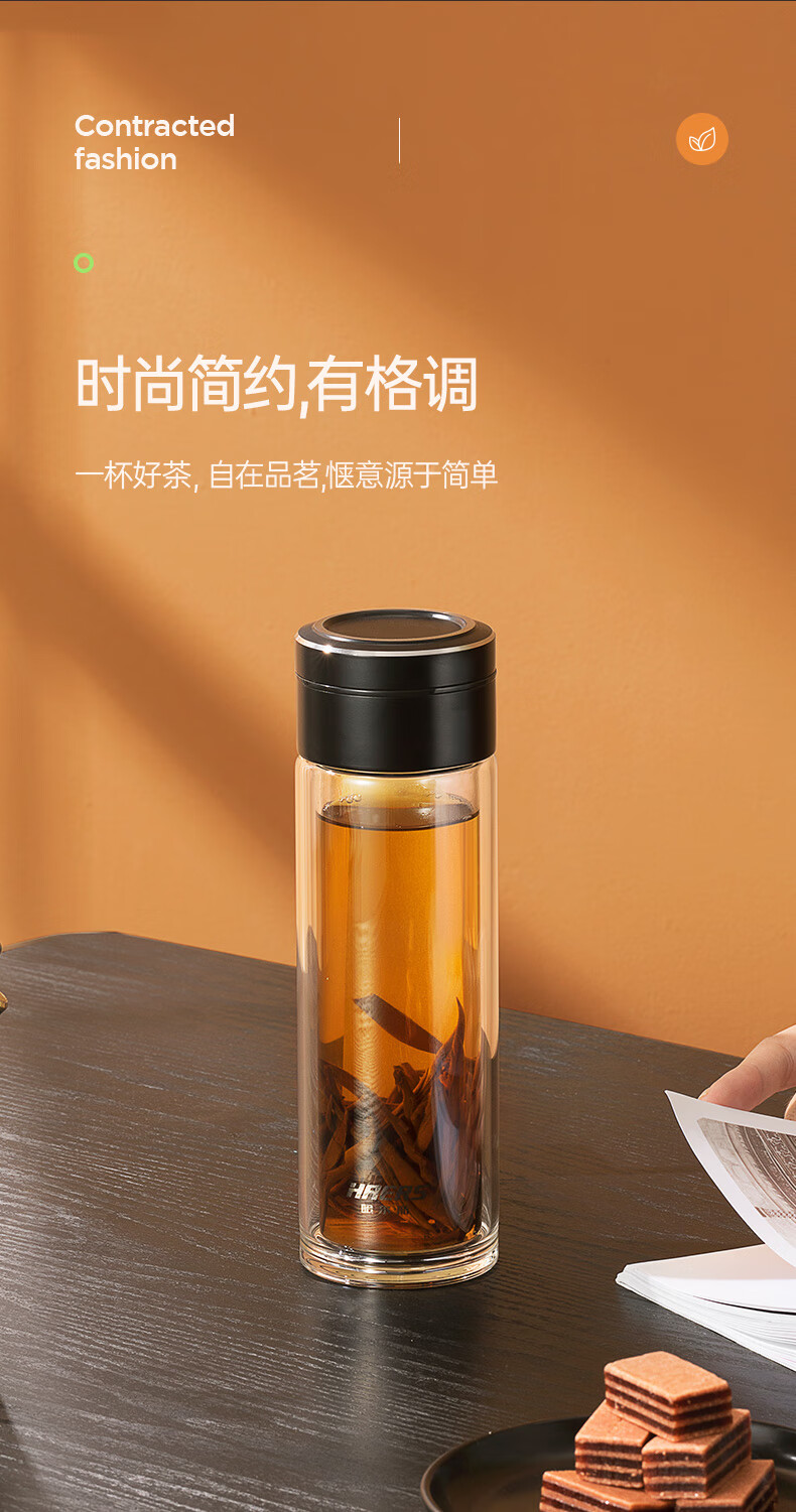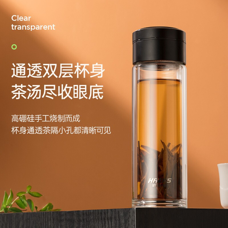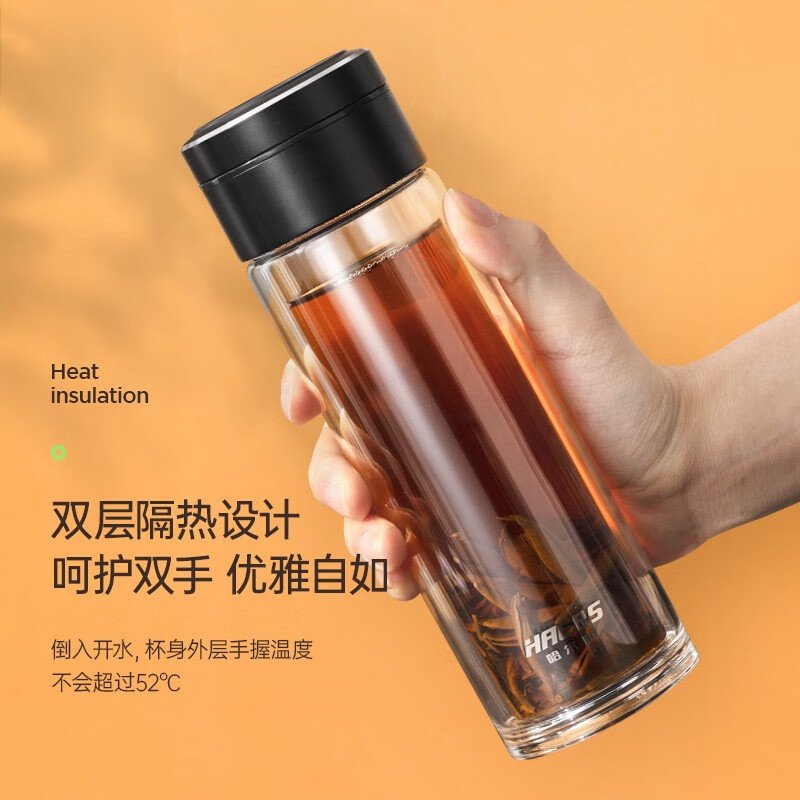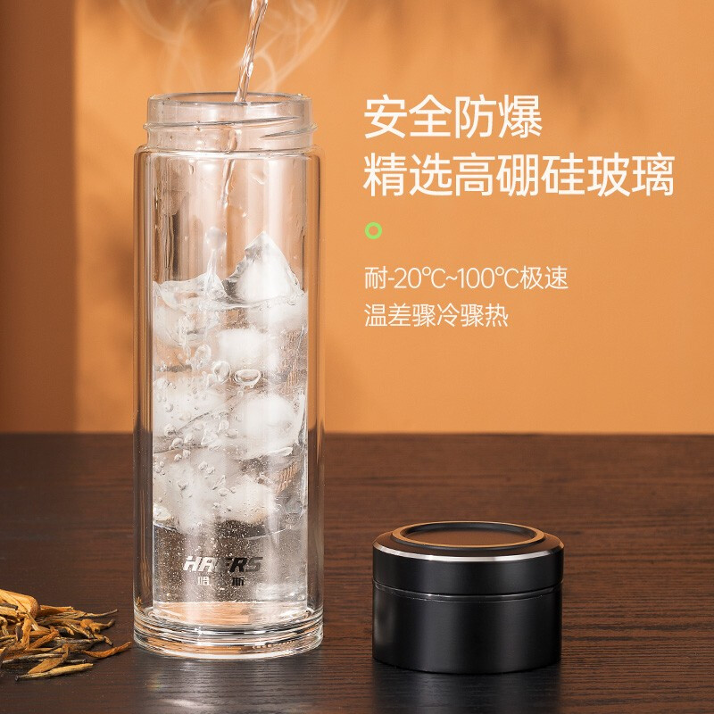 哈尔斯唯泽泡茶师/双层玻璃杯男女便携泡茶杯家用商务办公室水杯 HBL-W-320-110-E 自营