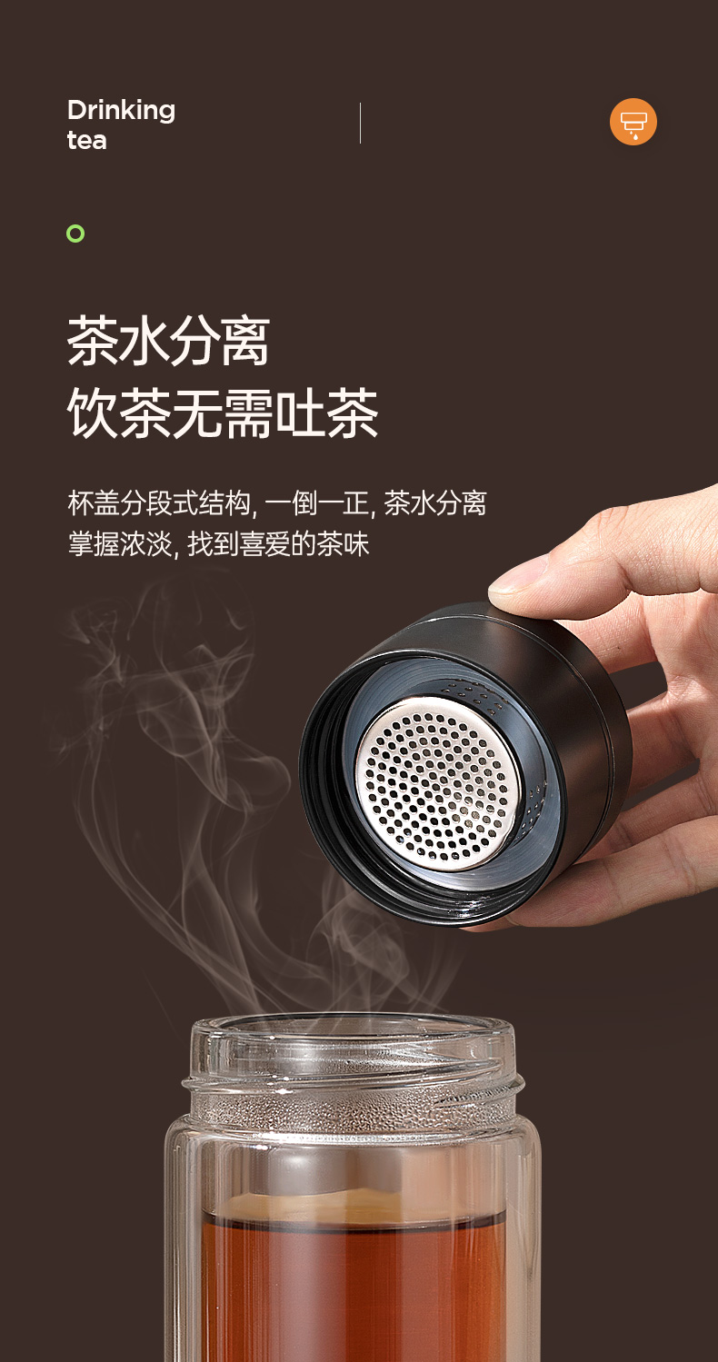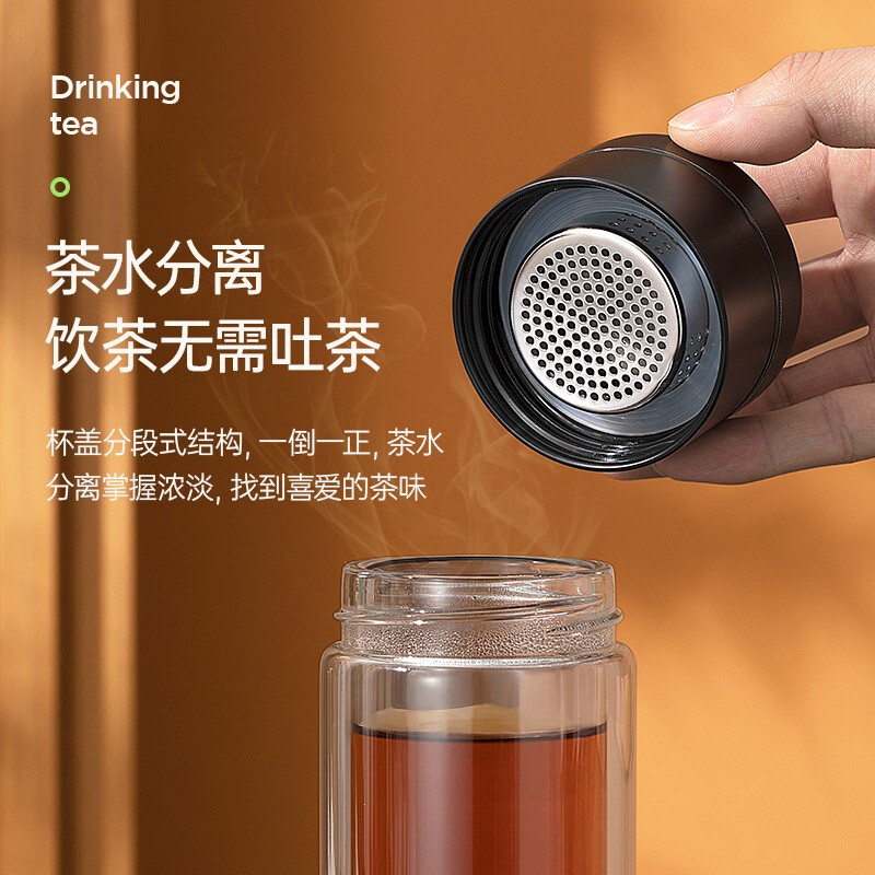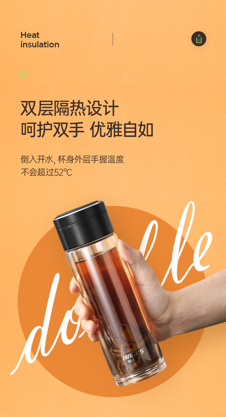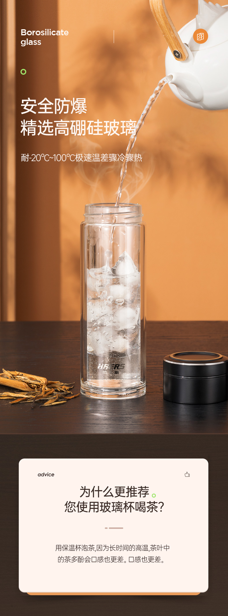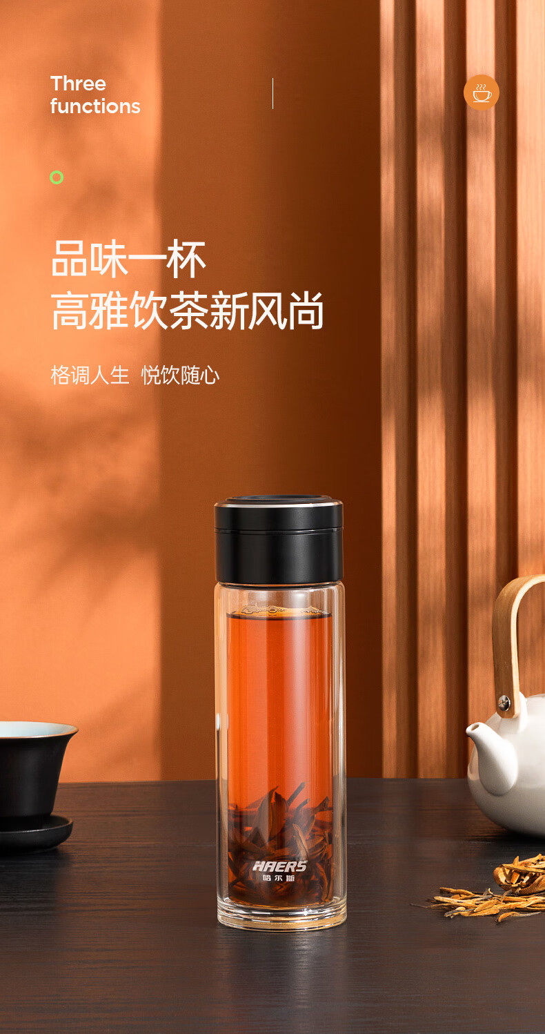 哈尔斯唯泽泡茶师/双层玻璃杯男女便携泡茶杯家用商务办公室水杯 HBL-W-320-110-E 自营