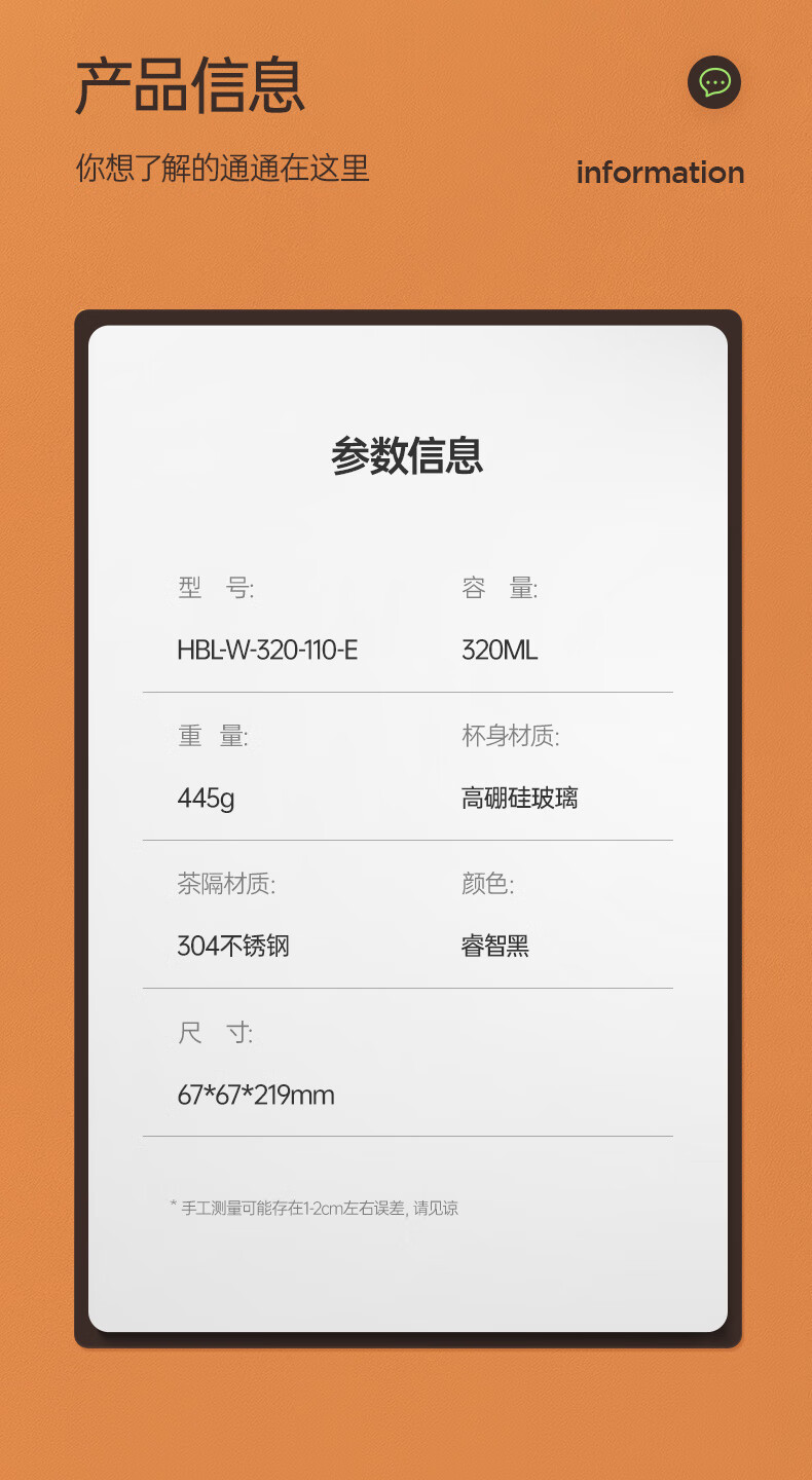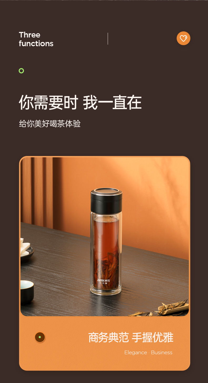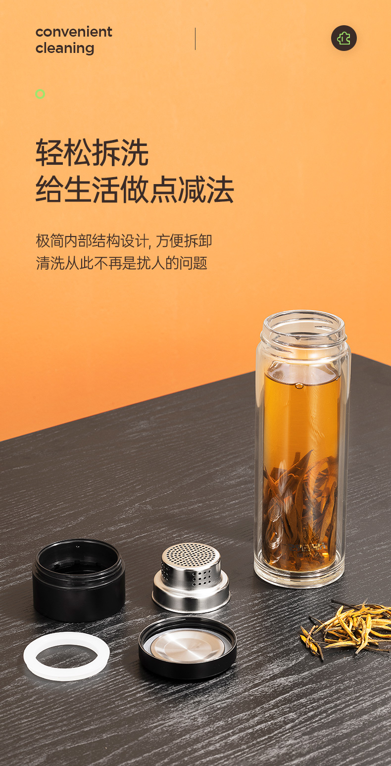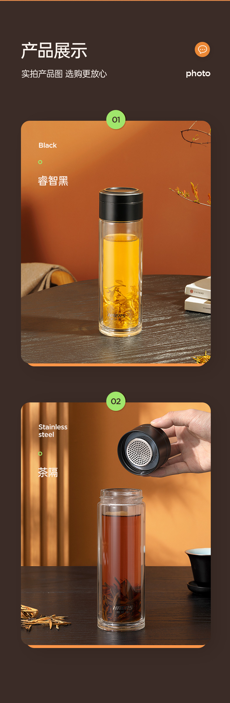 哈尔斯唯泽泡茶师/双层玻璃杯男女便携泡茶杯家用商务办公室水杯 HBL-W-320-110-E 自营