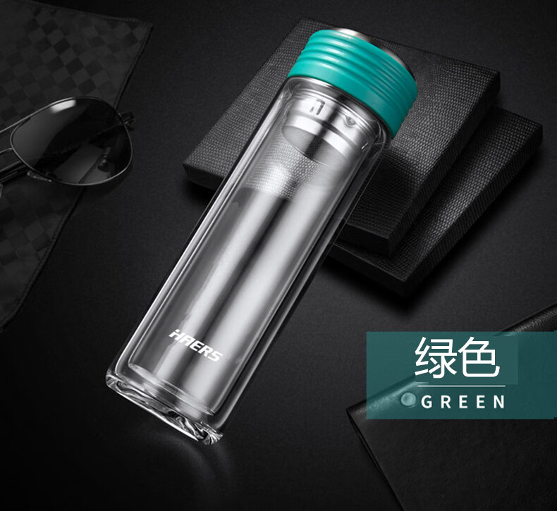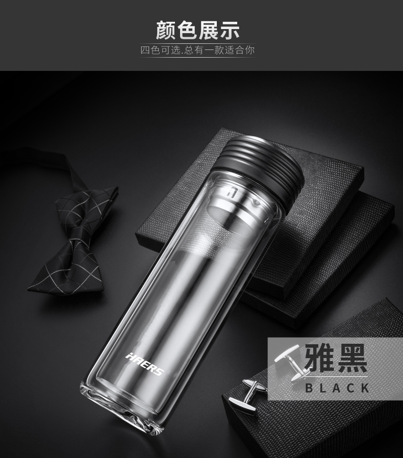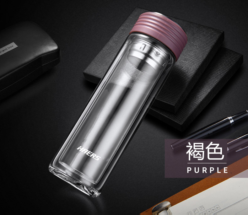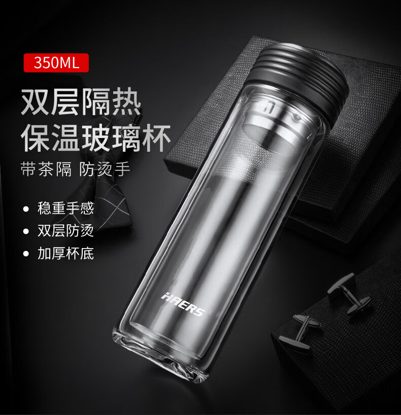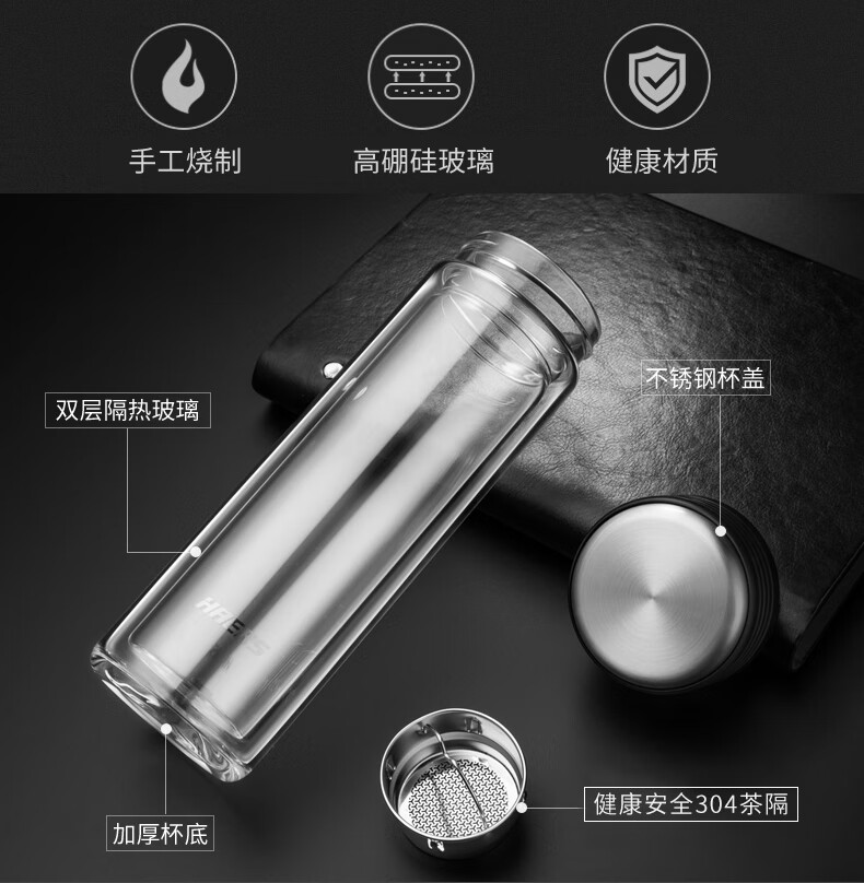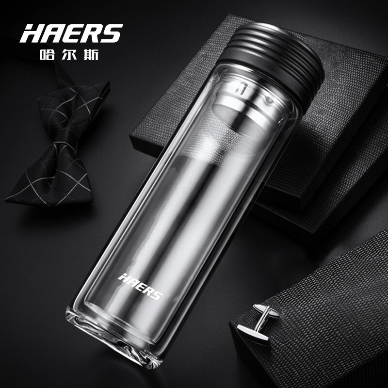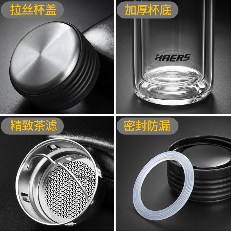 哈尔斯(HAERS)乐享双层玻璃杯/双层便携玻璃杯 带滤网商务杯子 办公室泡茶水杯 350mL HBL-350-45 自营