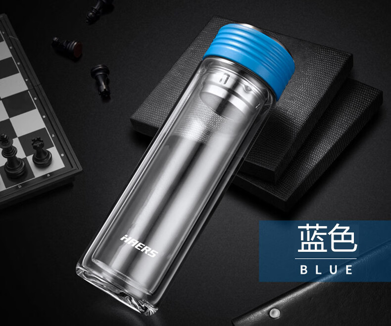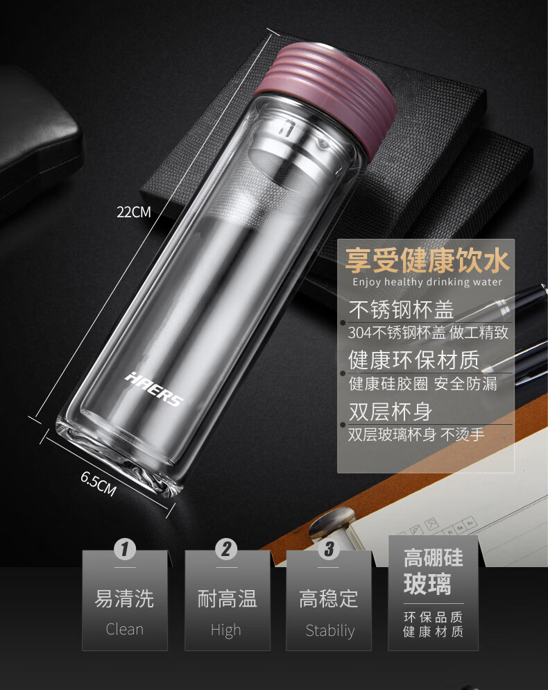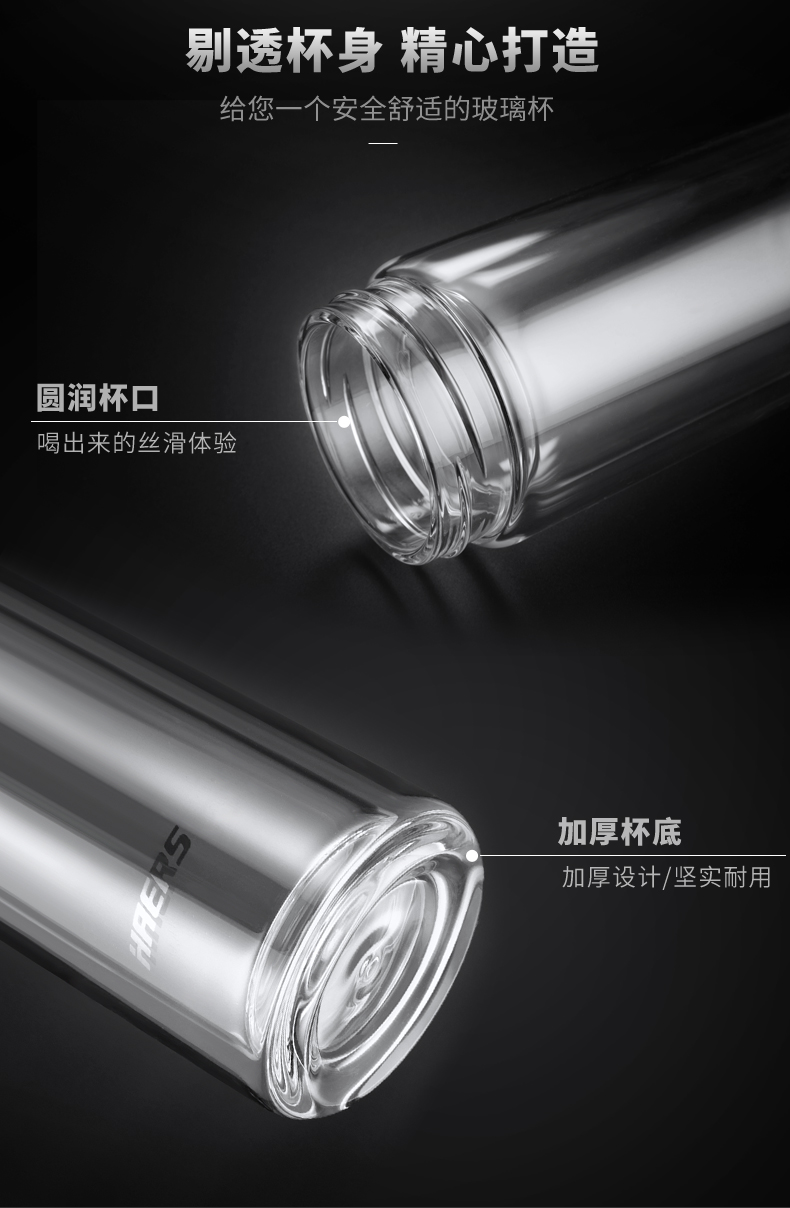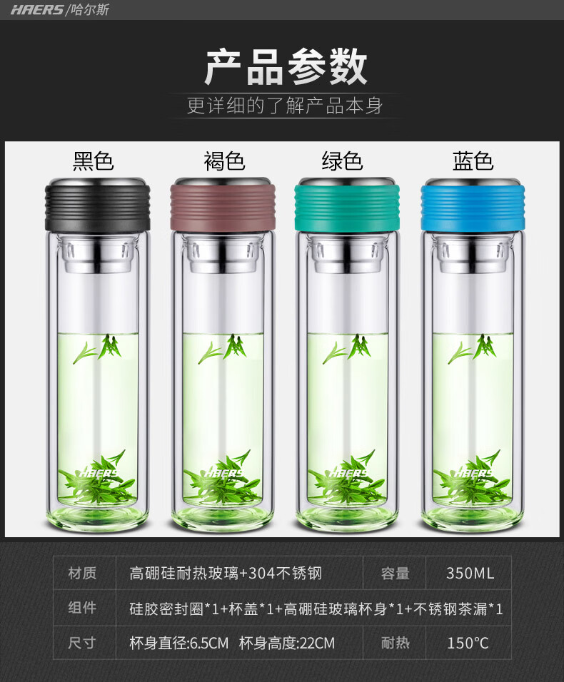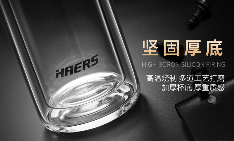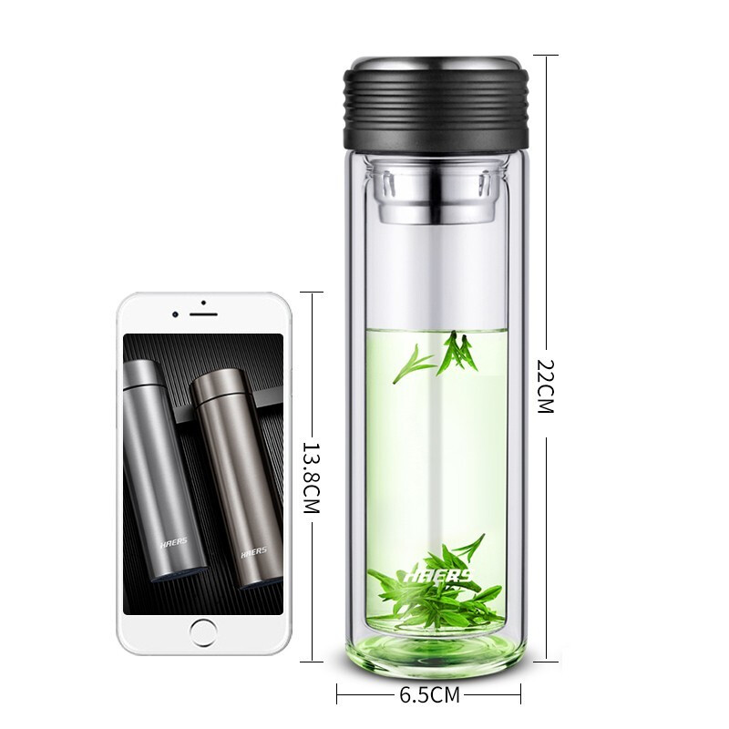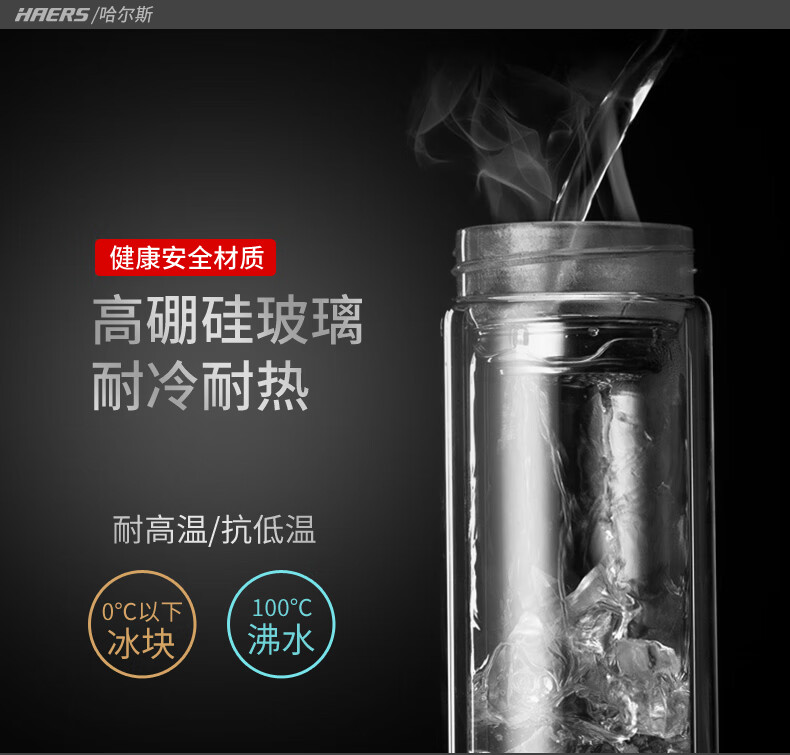 哈尔斯(HAERS)乐享双层玻璃杯/双层便携玻璃杯 带滤网商务杯子 办公室泡茶水杯 350mL HBL-350-45 自营