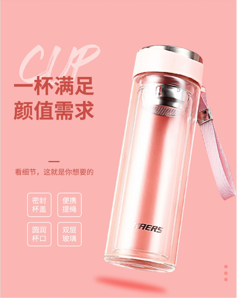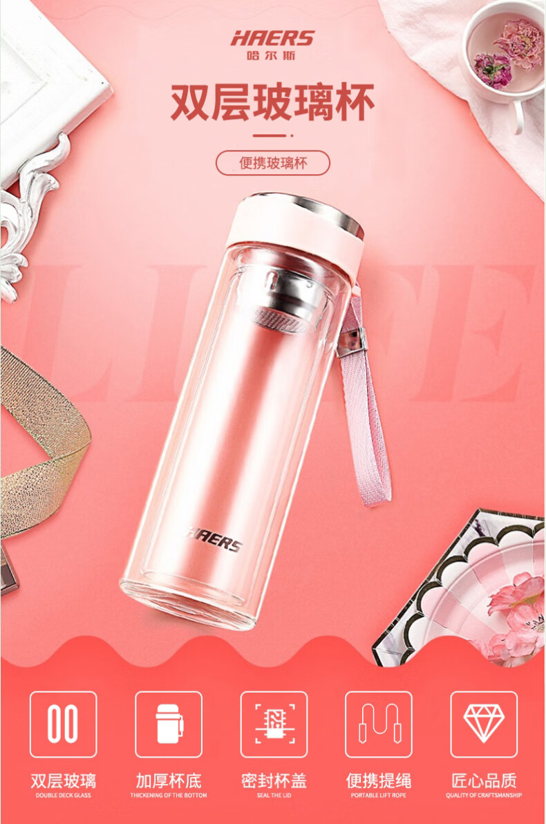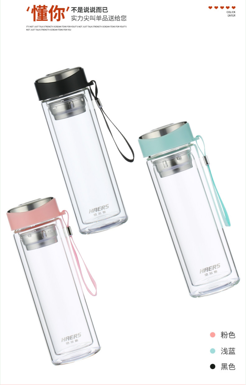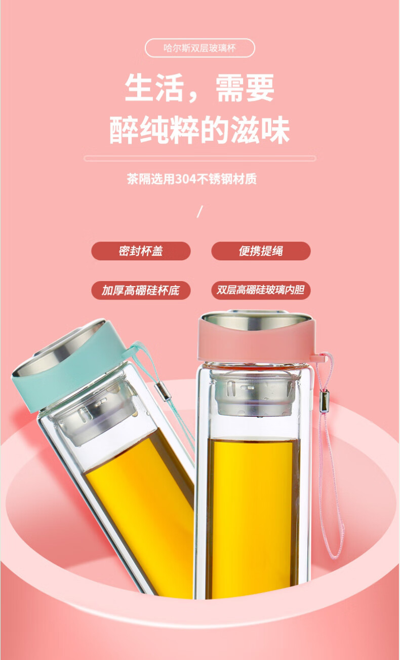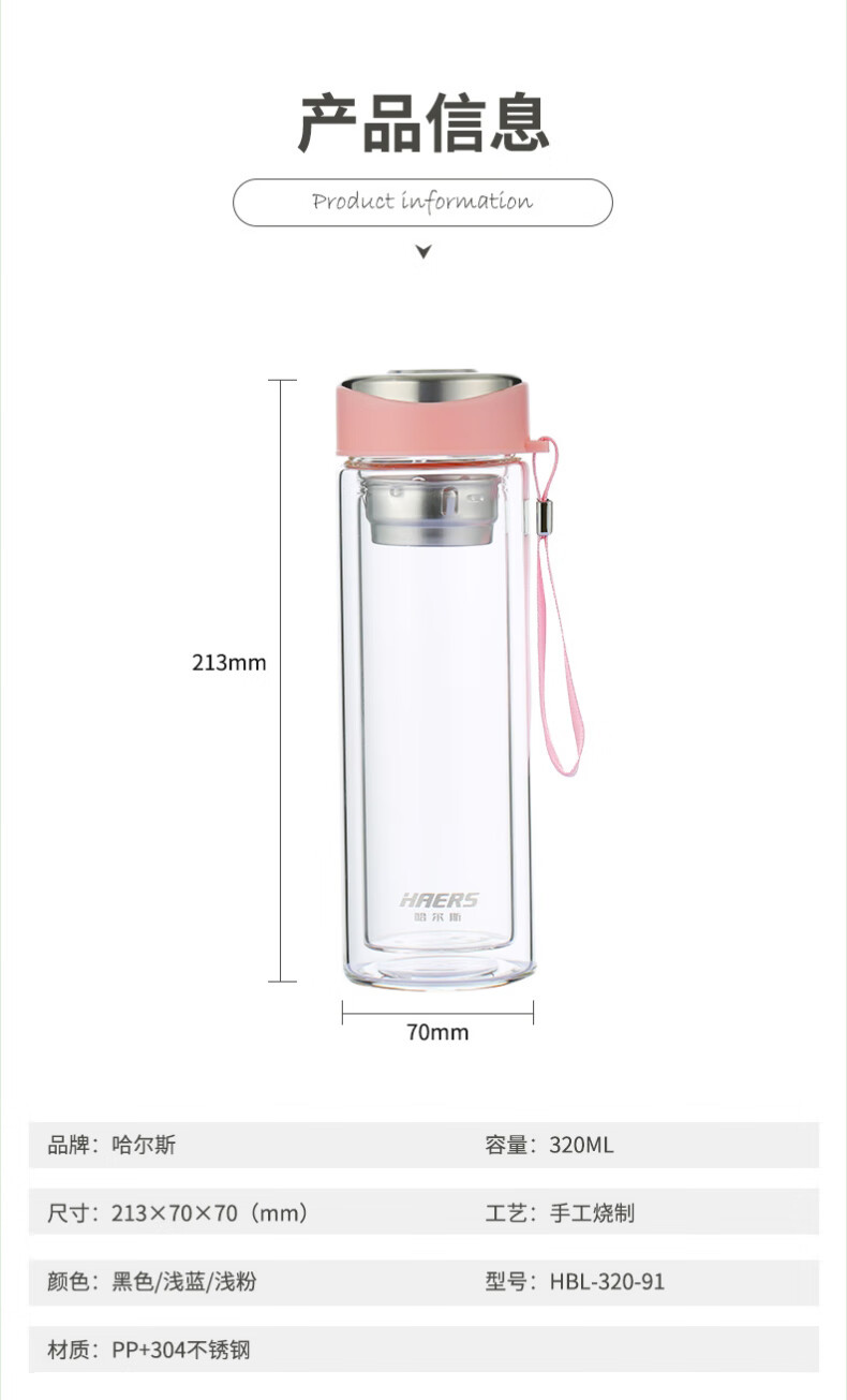 哈尔斯致尚吊带玻璃杯/双层玻璃杯HBL-320-91(320ml) 泡茶杯 隔热杯 自营