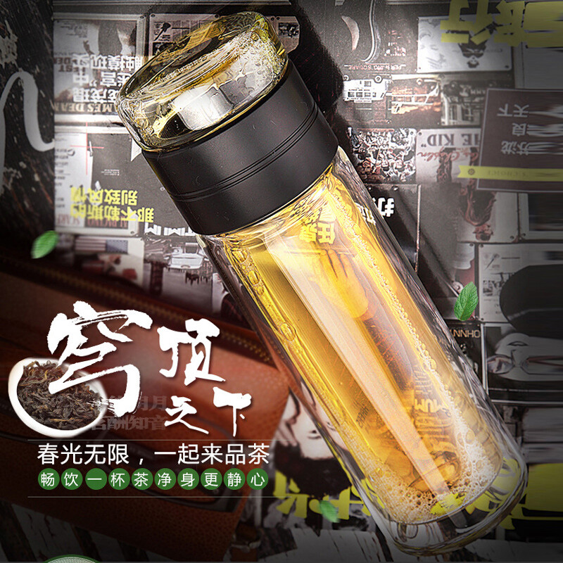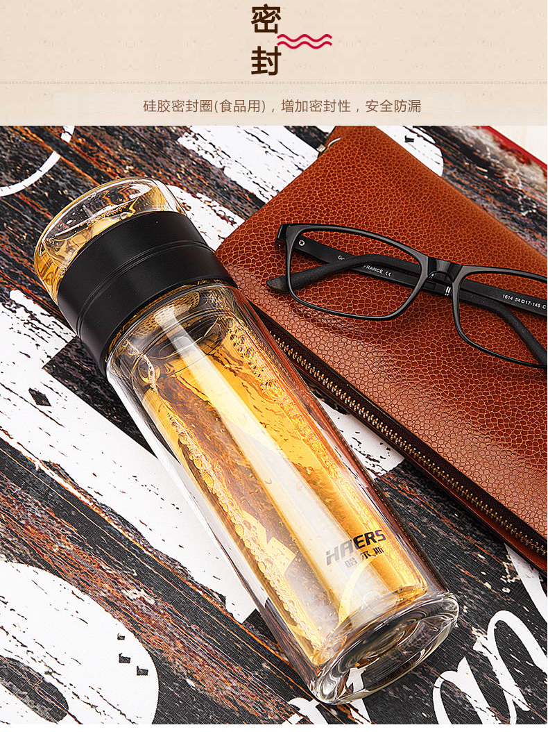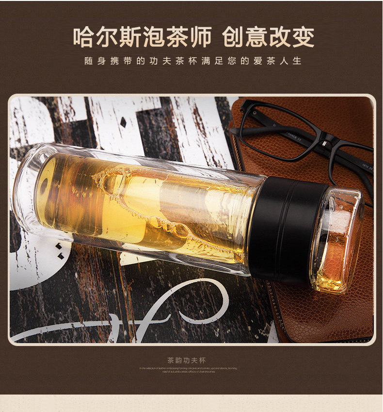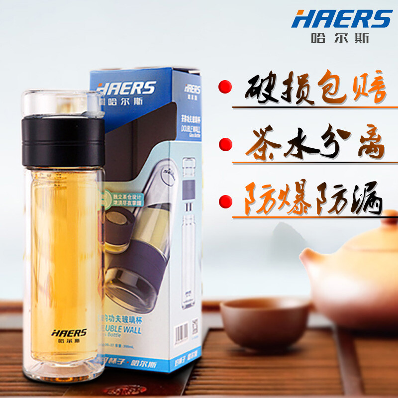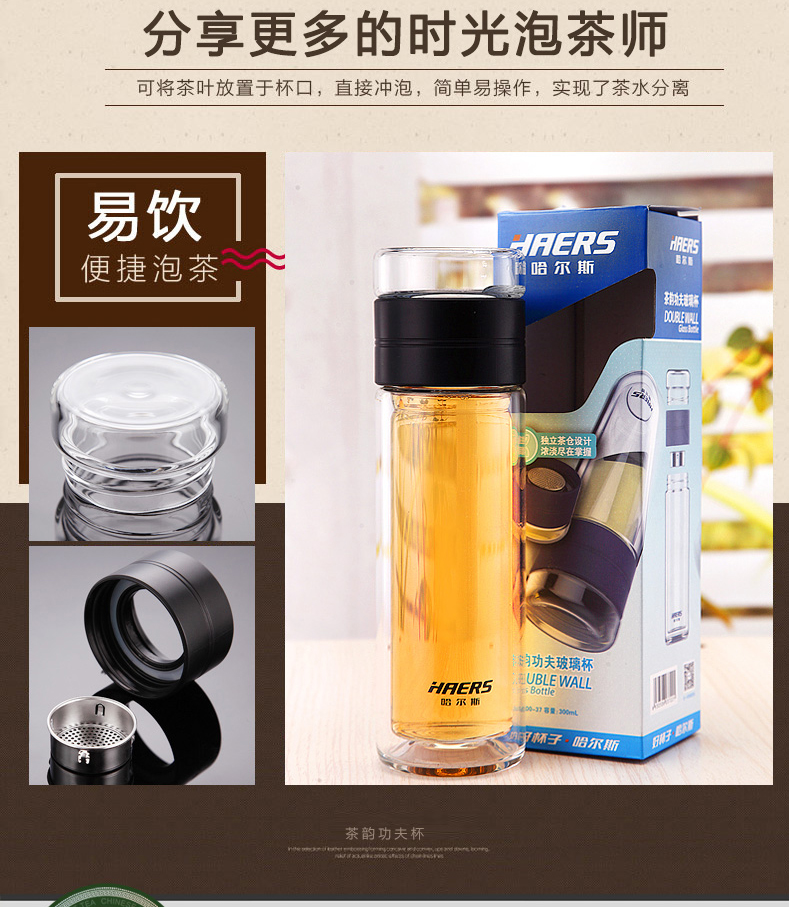 哈尔斯茶韵功夫玻璃杯/茶水分离杯玻璃杯双层茶杯300ml男女办公杯 HBL-300-37 自营