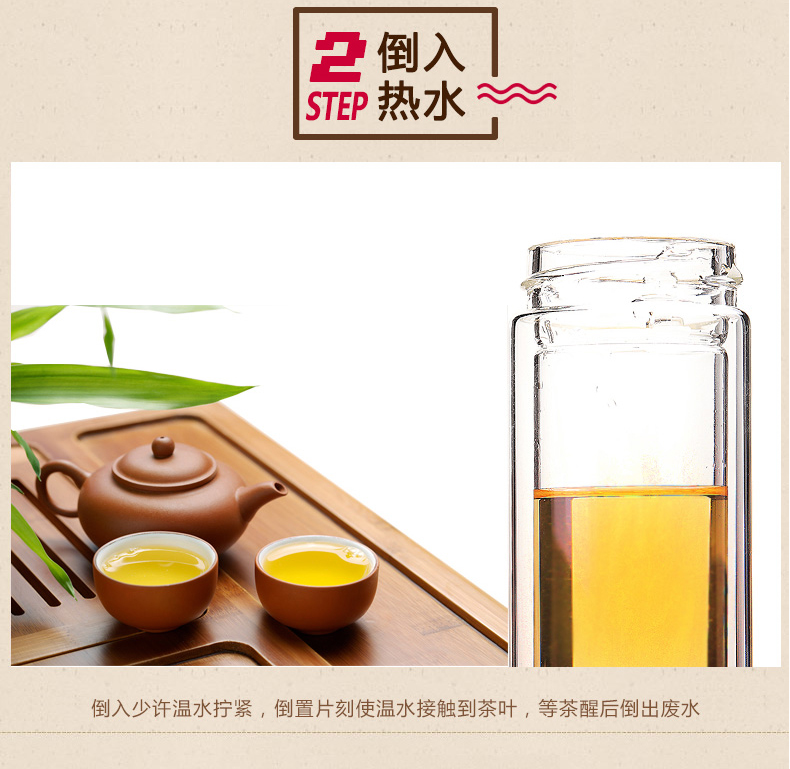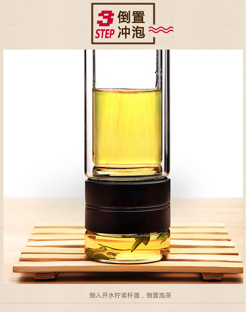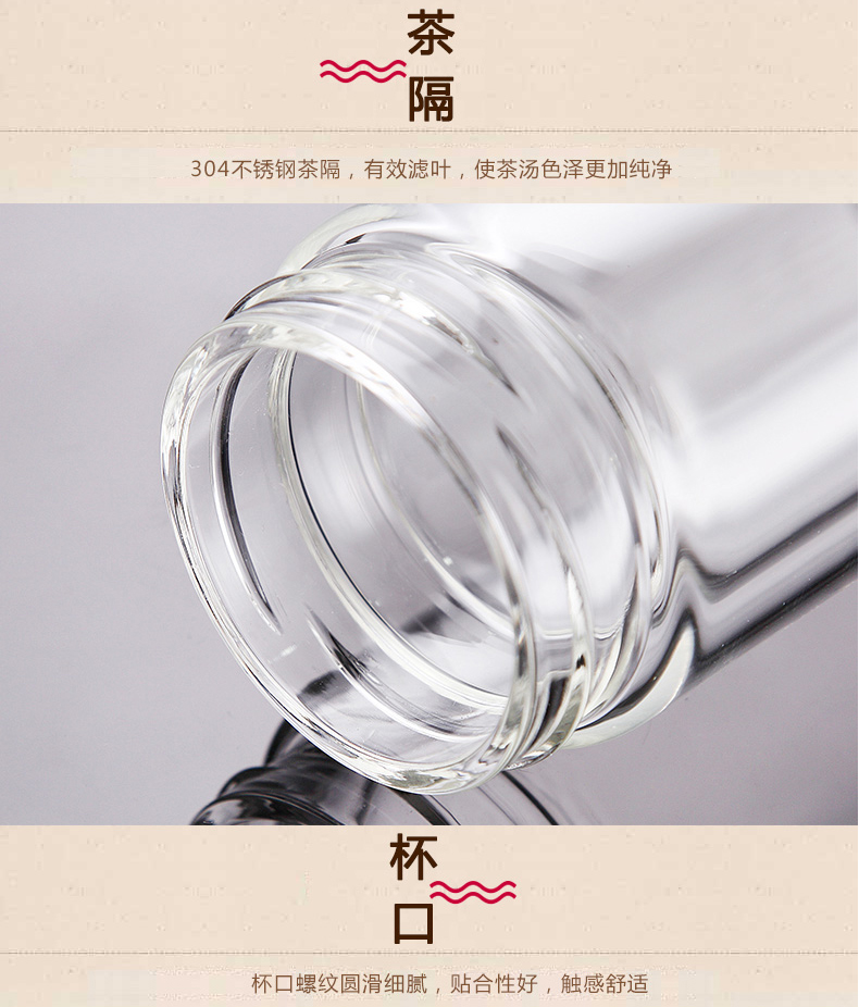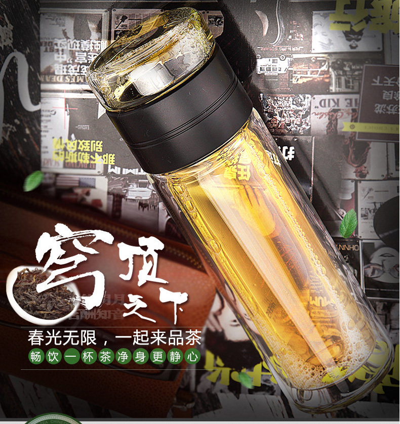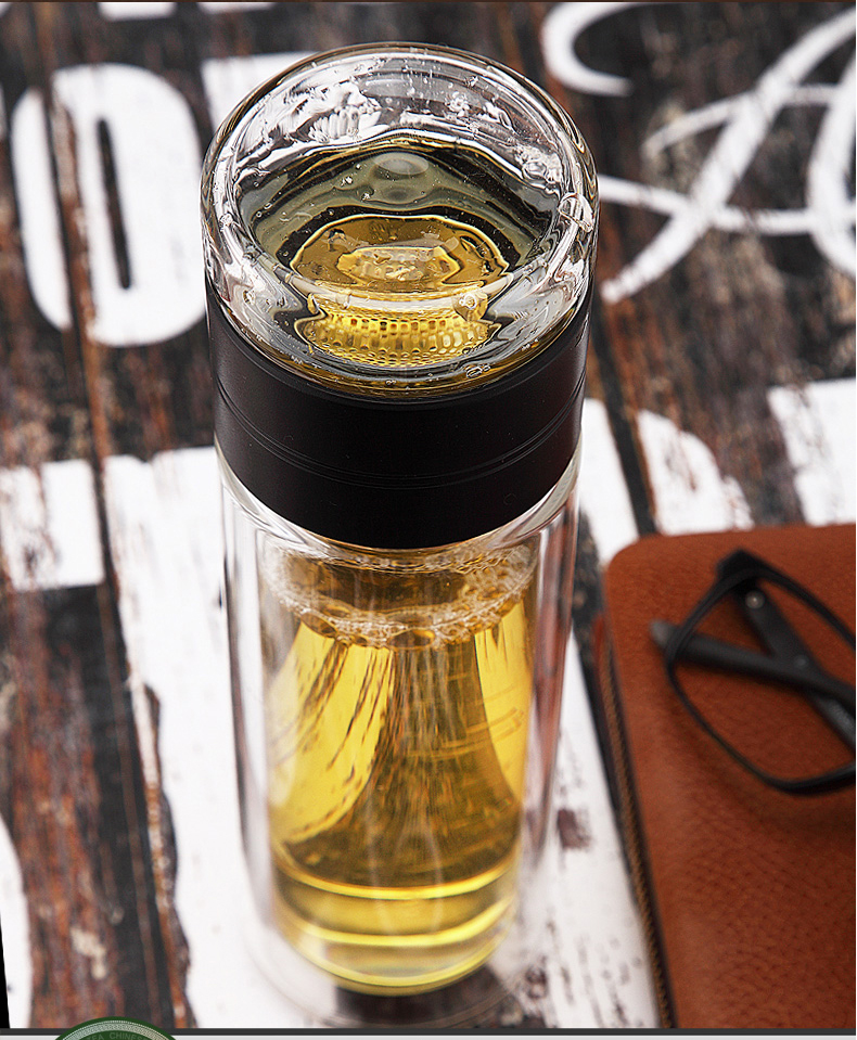 哈尔斯茶韵功夫玻璃杯/茶水分离杯玻璃杯双层茶杯300ml男女办公杯 HBL-300-37 自营
