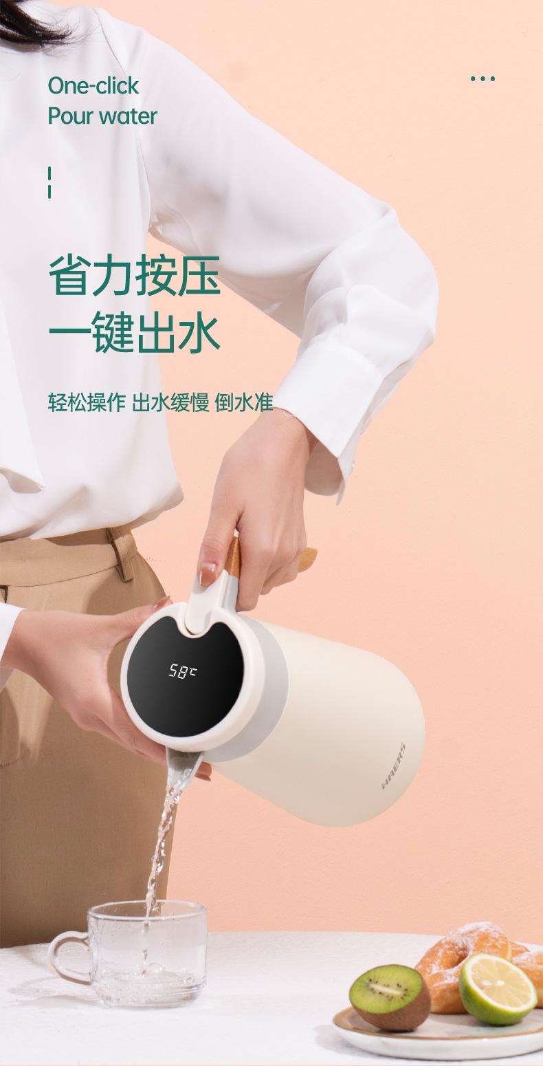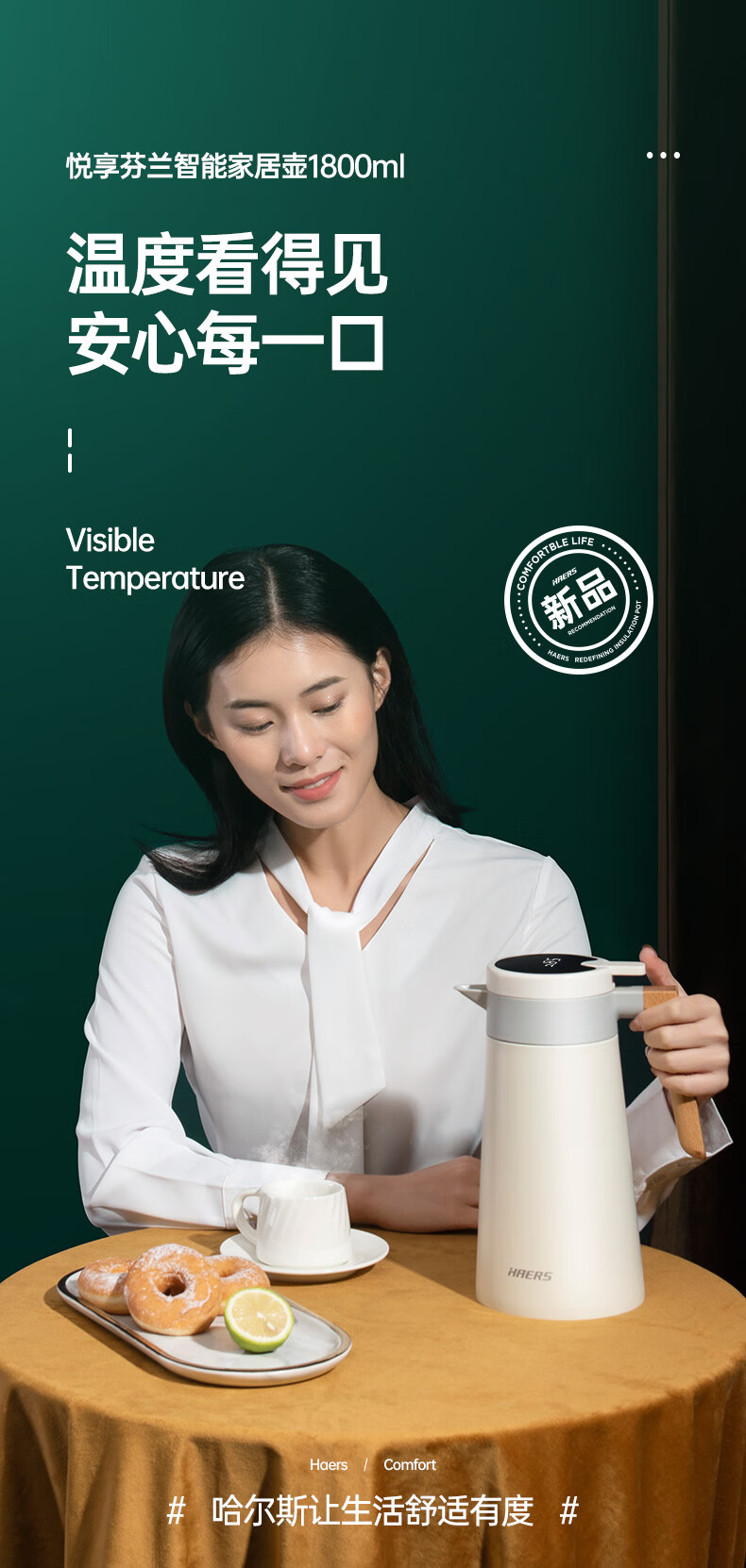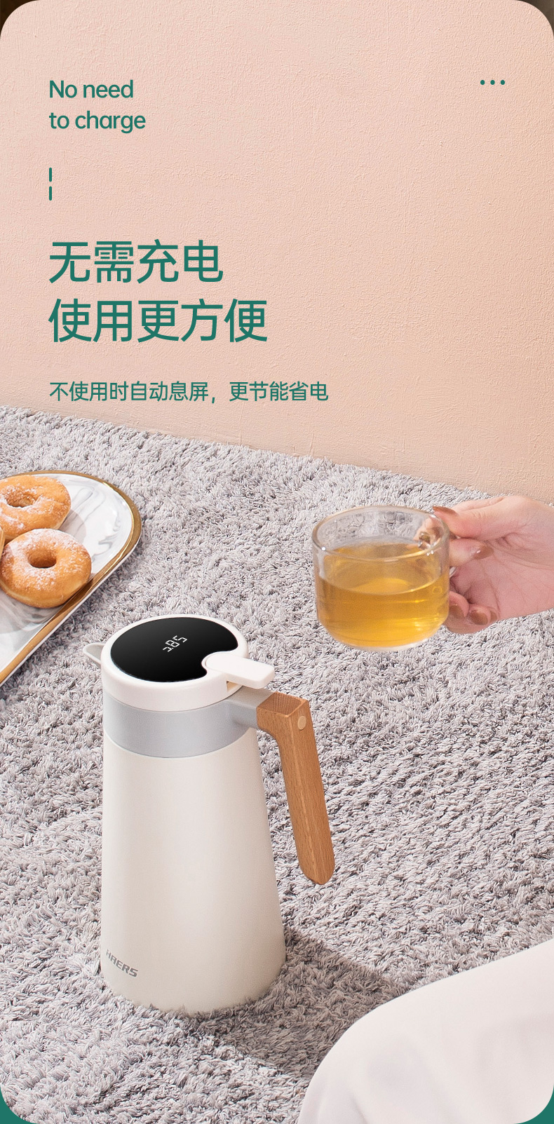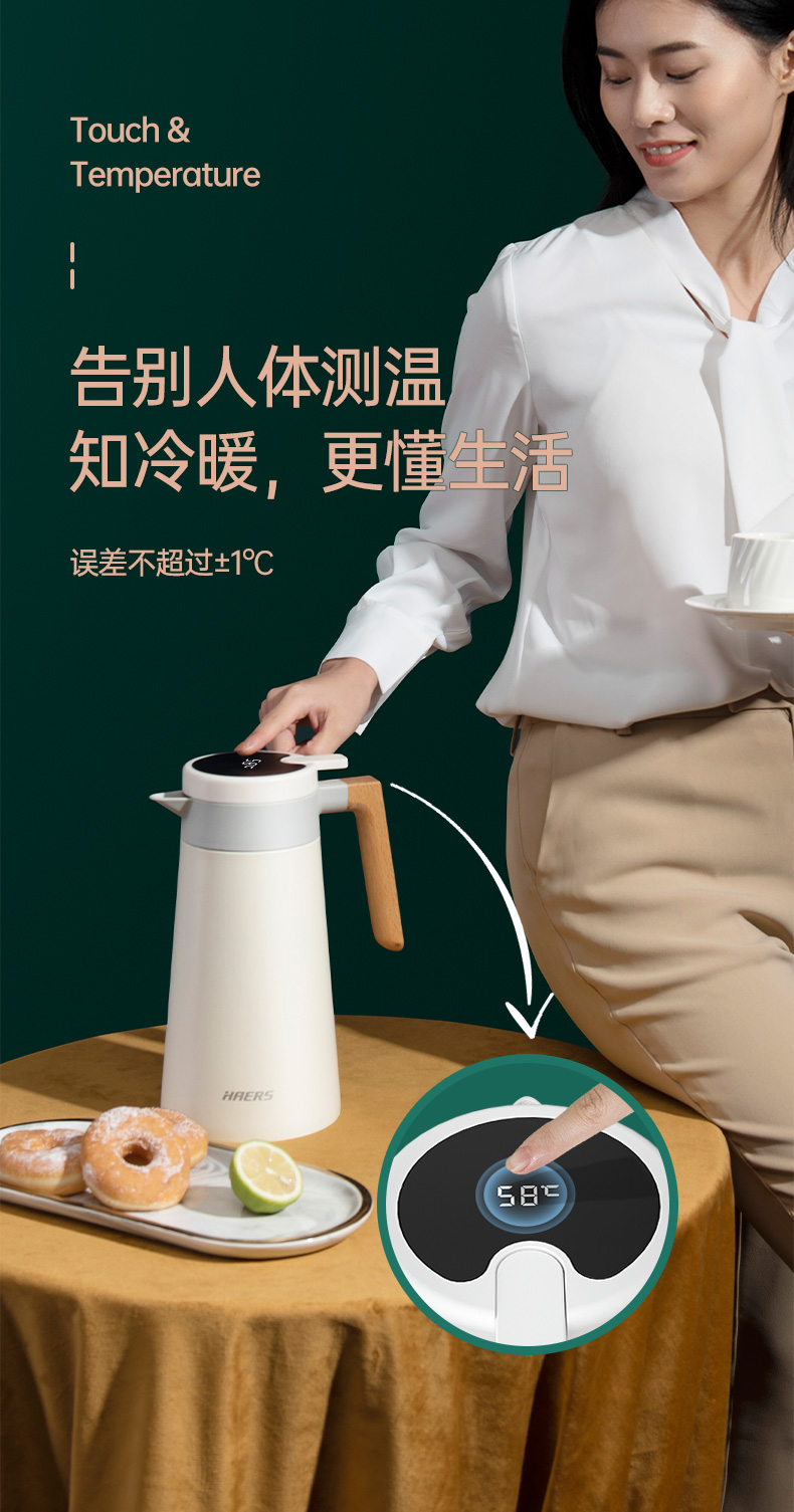 哈尔斯温显家居壶/保温壶家用304不锈钢大容量保温瓶热水瓶暖水壶咖啡壶1500ml 【智能显温 尖口壶嘴设计】HDM-1500-51 自营