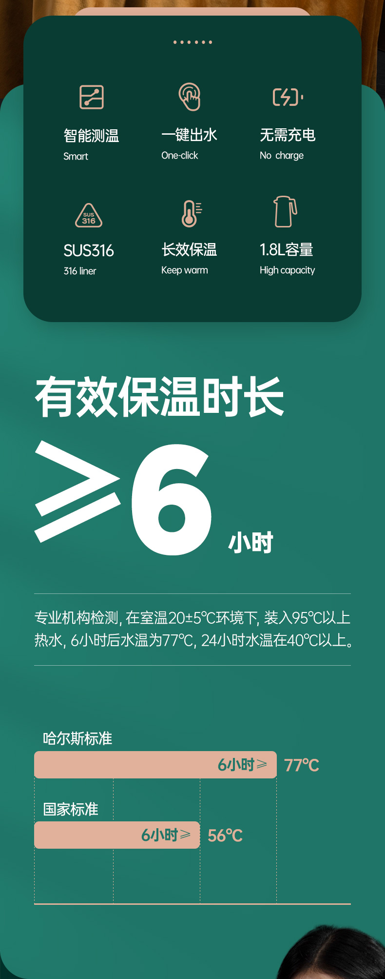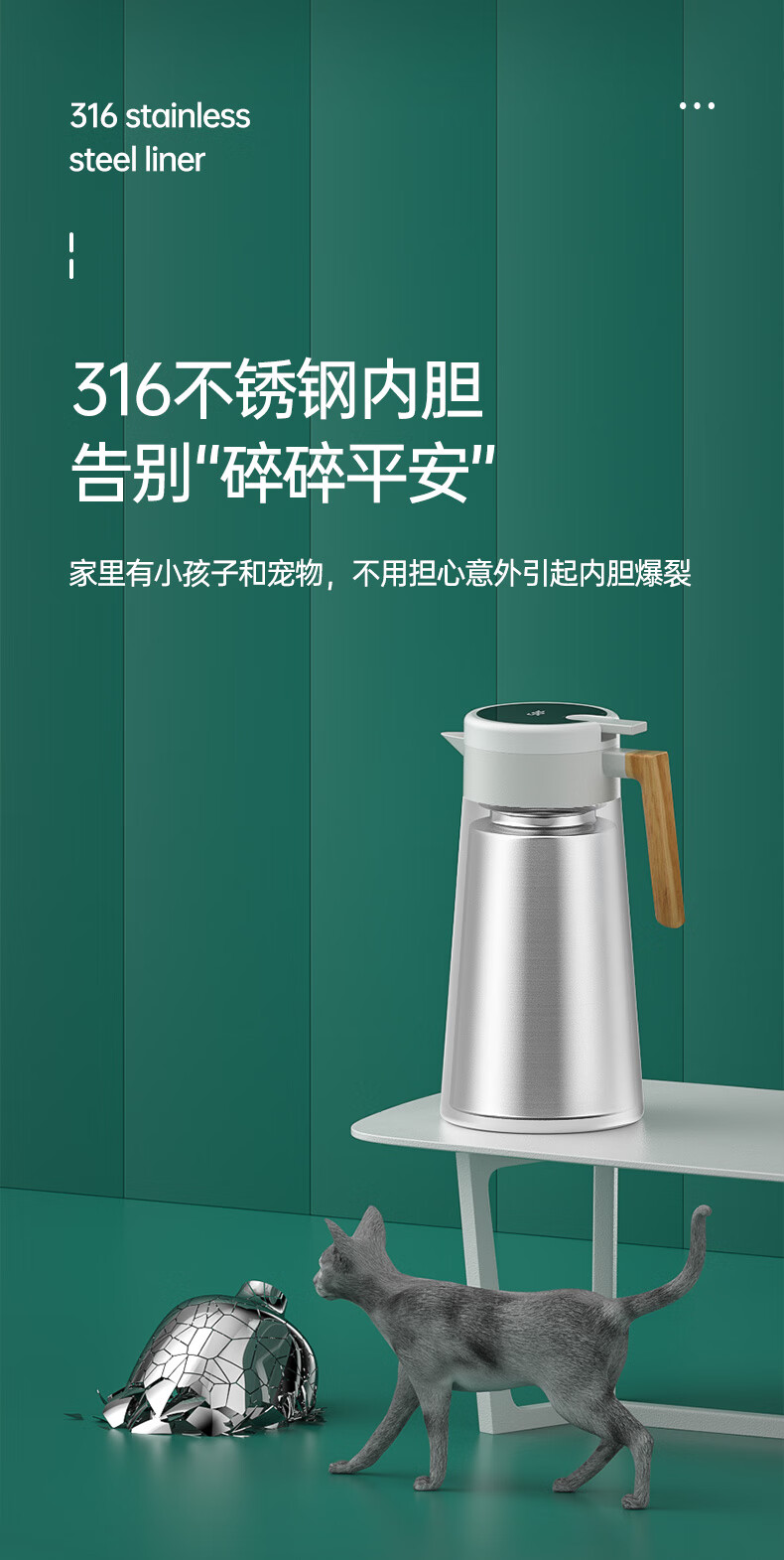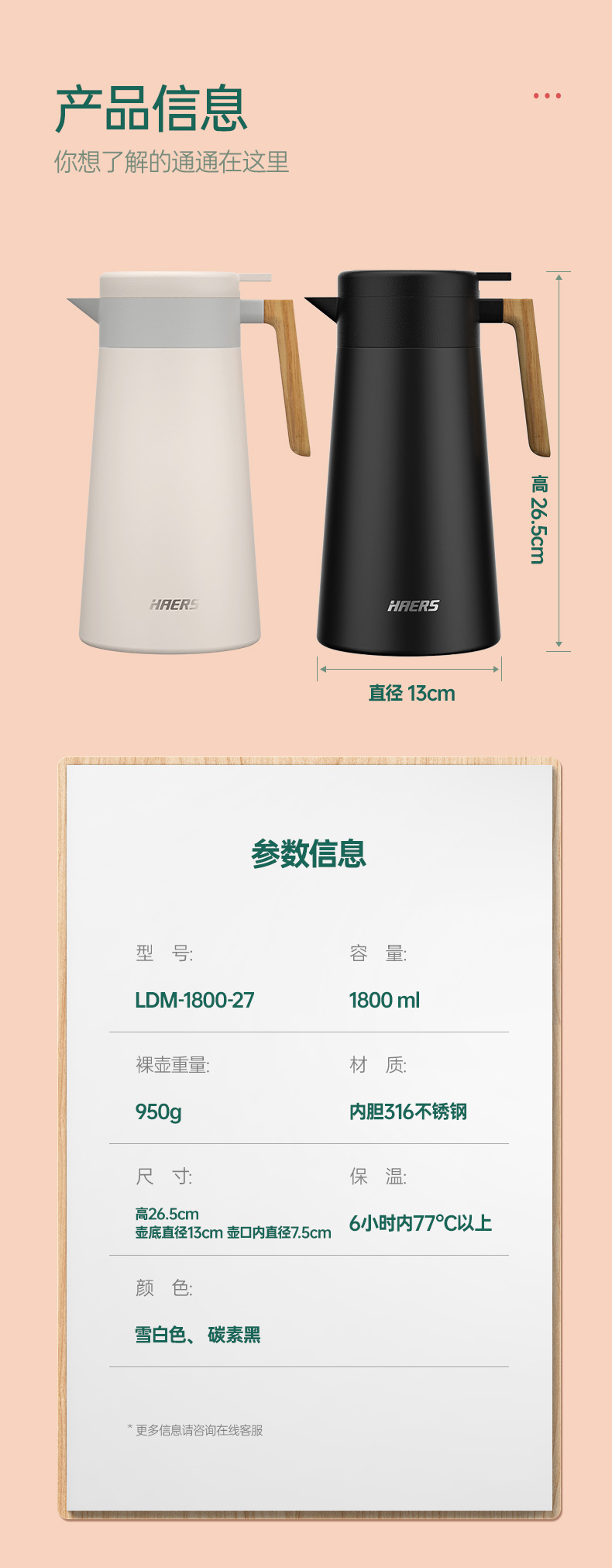 哈尔斯温显家居壶/保温壶家用304不锈钢大容量保温瓶热水瓶暖水壶咖啡壶1500ml 【智能显温 尖口壶嘴设计】HDM-1500-51 自营