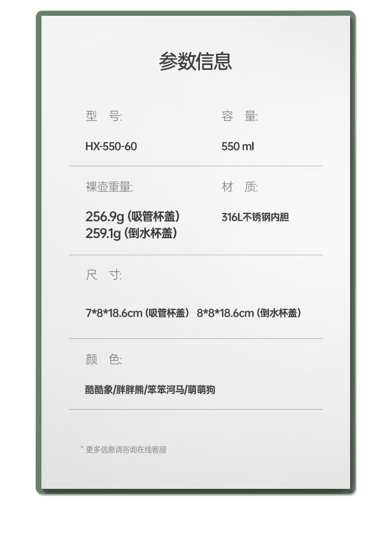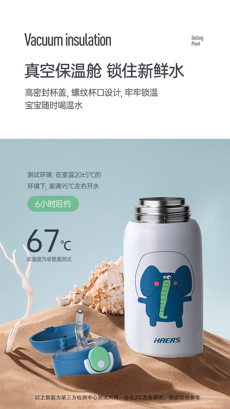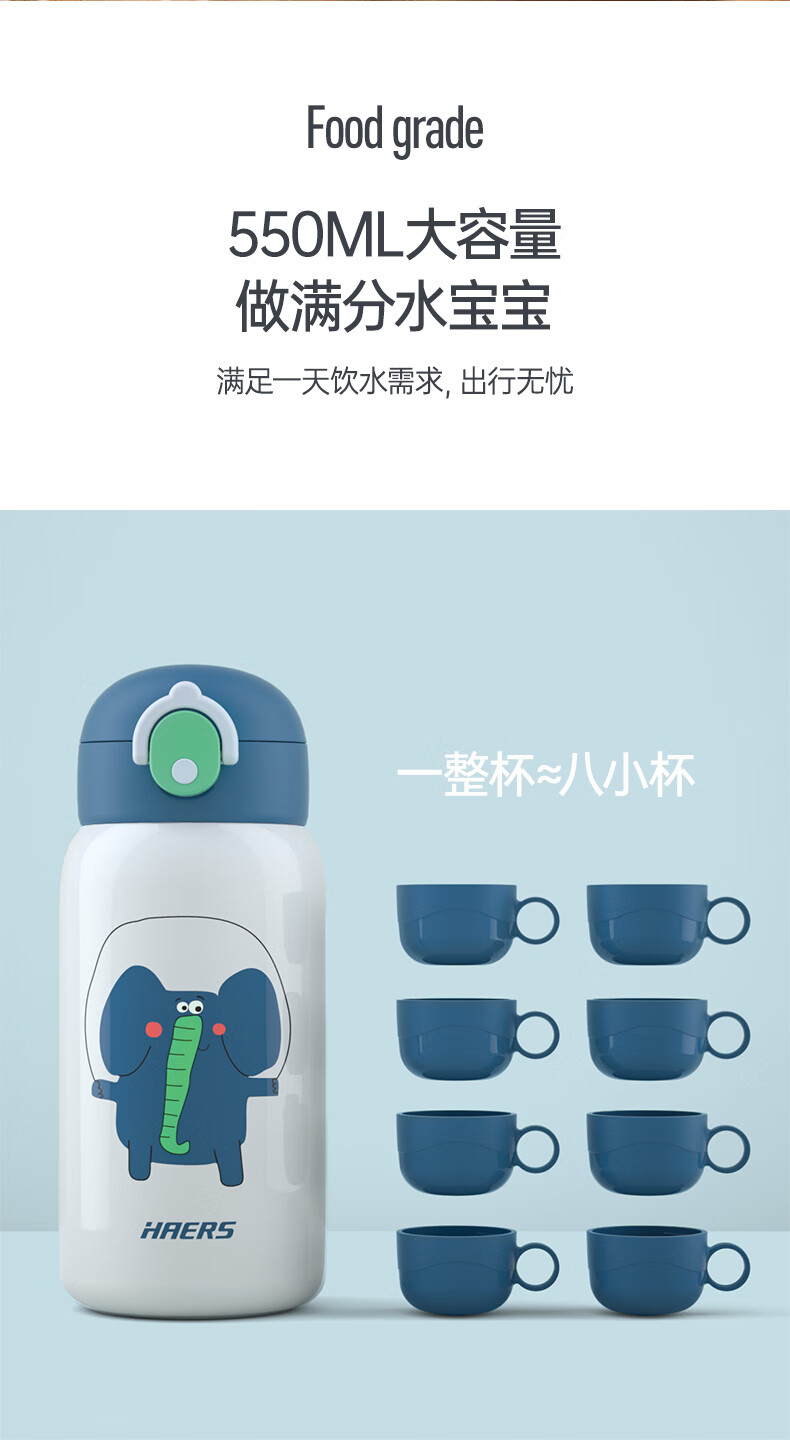 哈尔斯儿童保温杯/萌宠系列水杯壶316不锈钢吸管杯两用杯子小学生宝宝水杯550ml 【316不锈钢 防烫变色提醒】HX-550-60 自营
