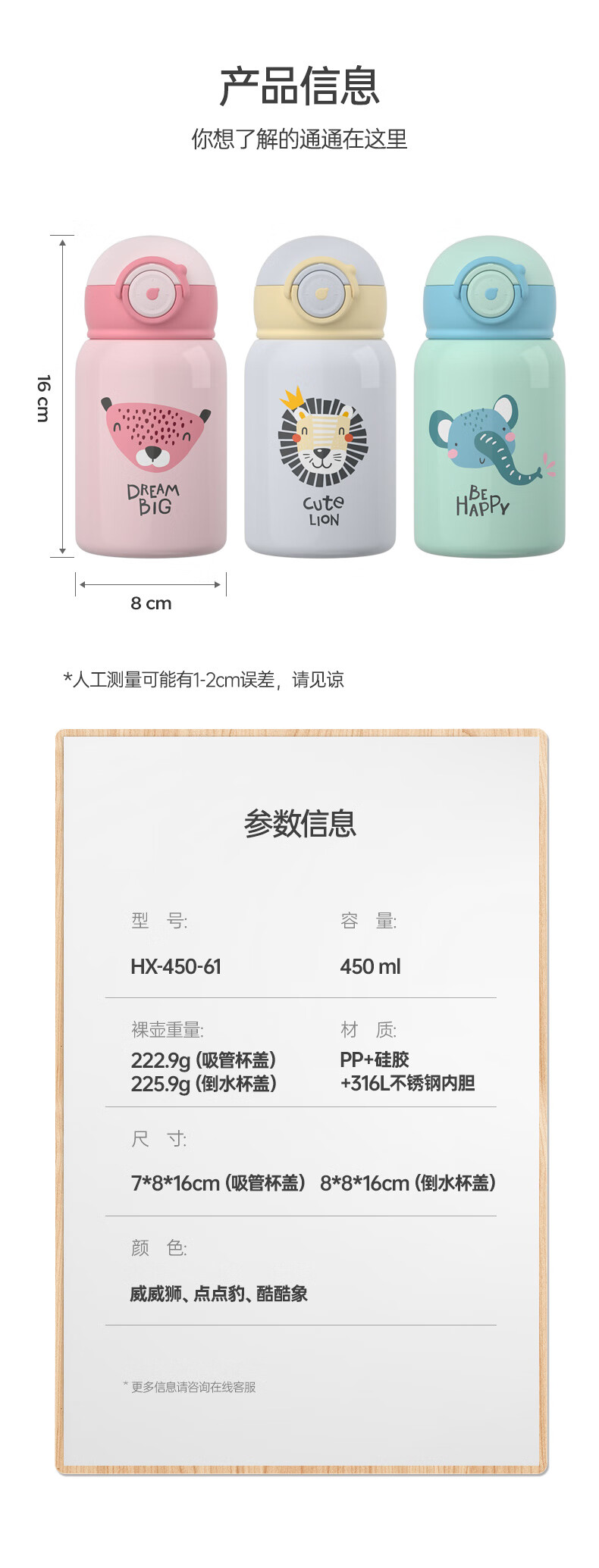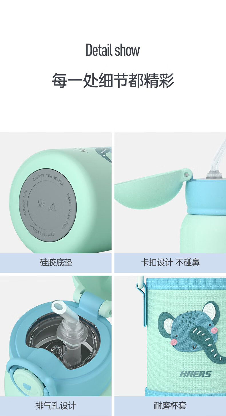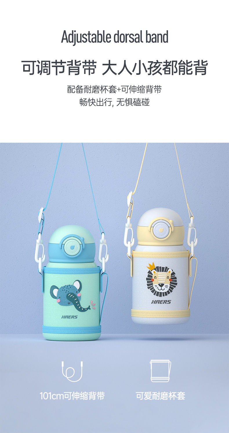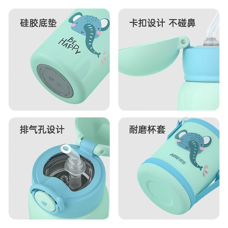哈尔斯儿童保温杯/316不锈钢吸管杯两用杯子小学生宝宝水杯450ml【健康316不锈钢 防烫排气孔】HX-450-61 自营