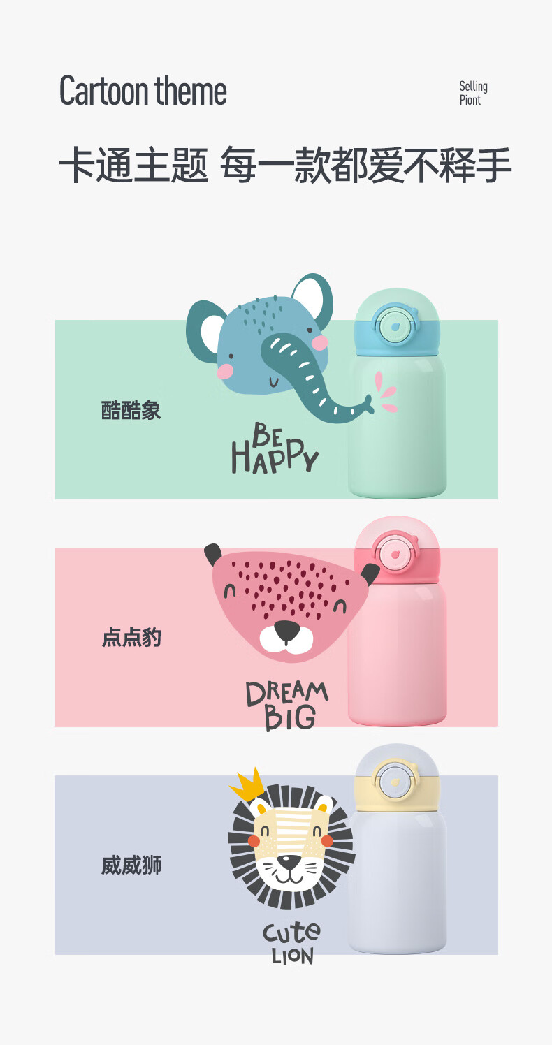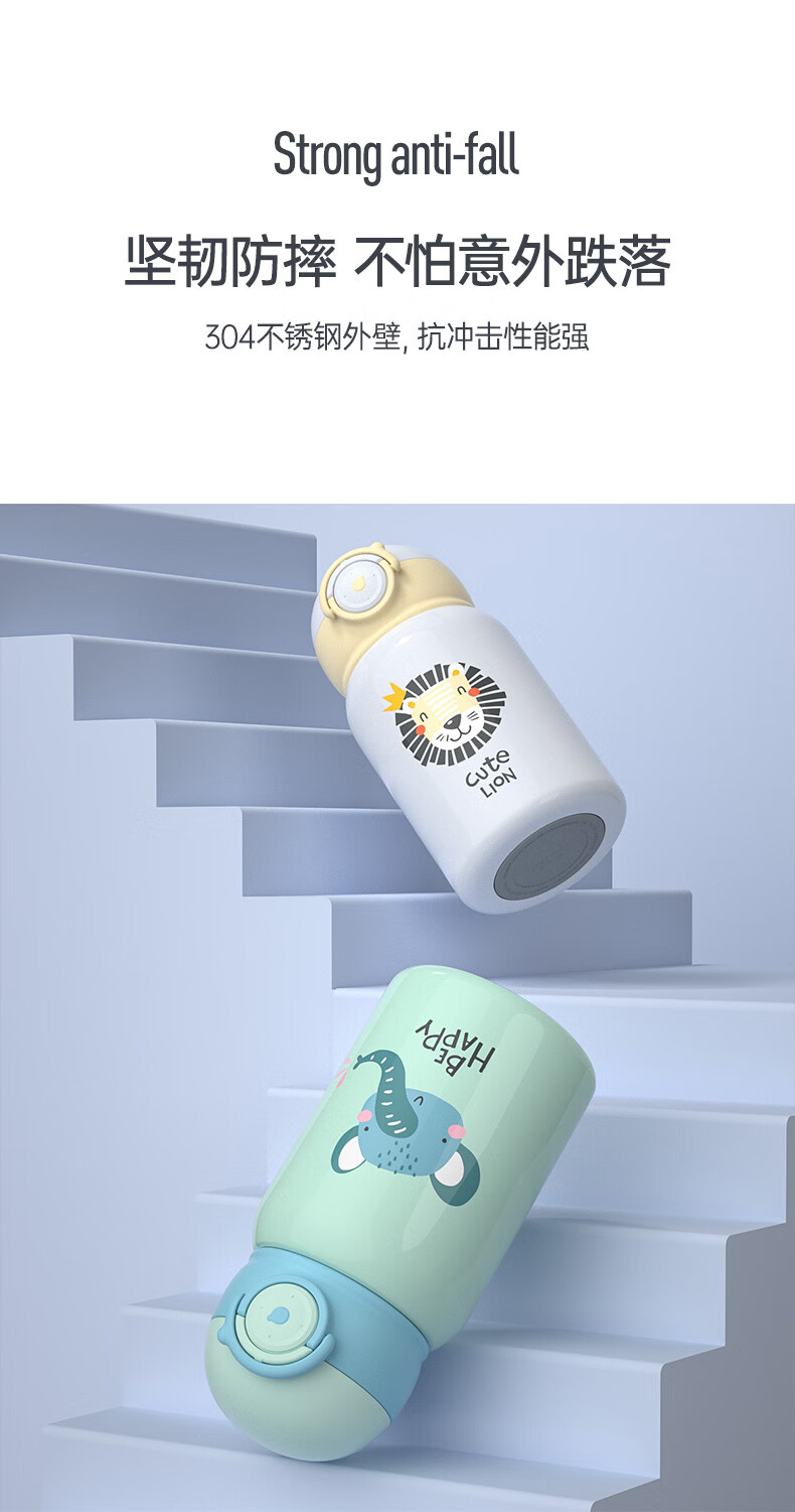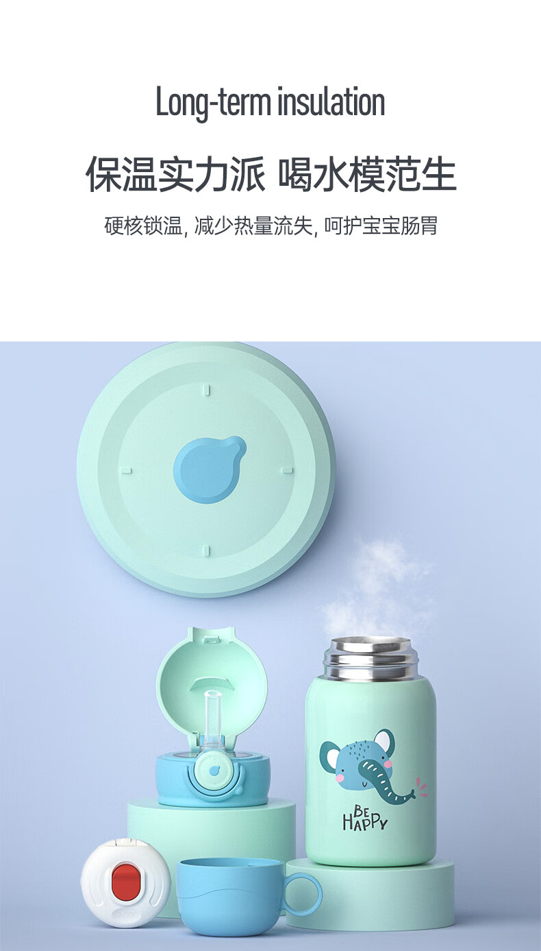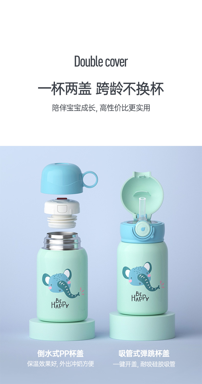 哈尔斯儿童保温杯/316不锈钢吸管杯两用杯子小学生宝宝水杯450ml【健康316不锈钢 防烫排气孔】HX-450-61 自营