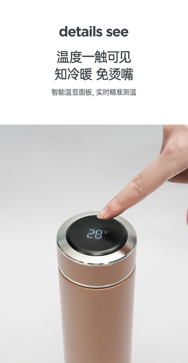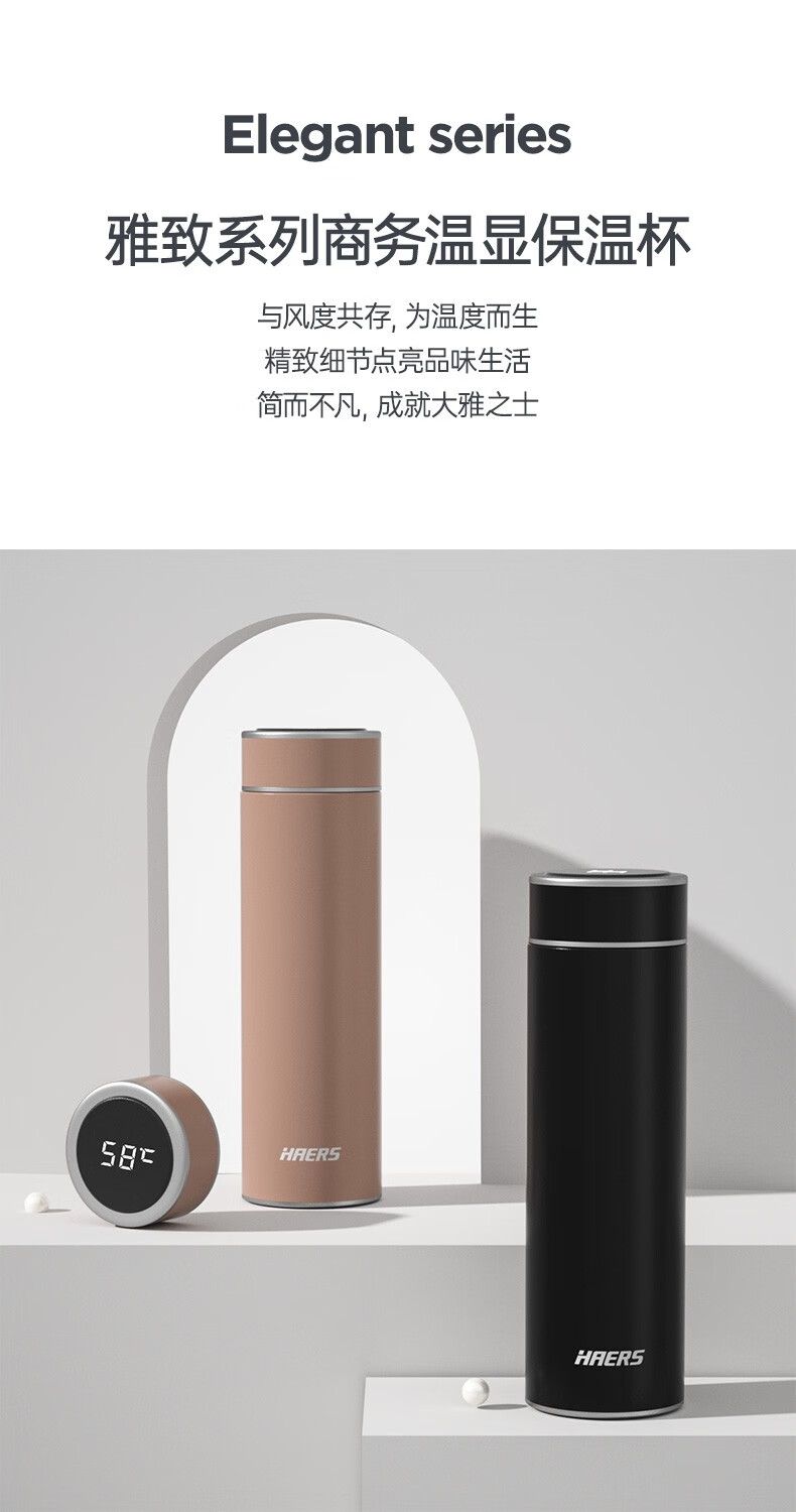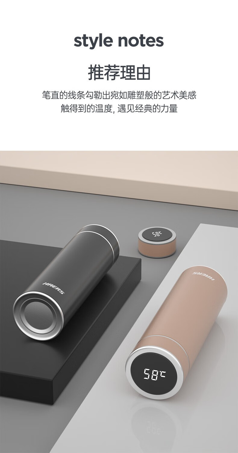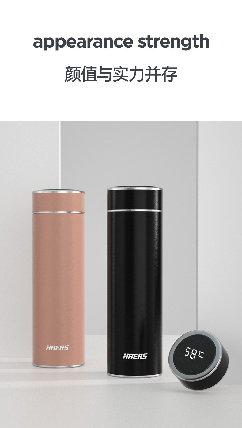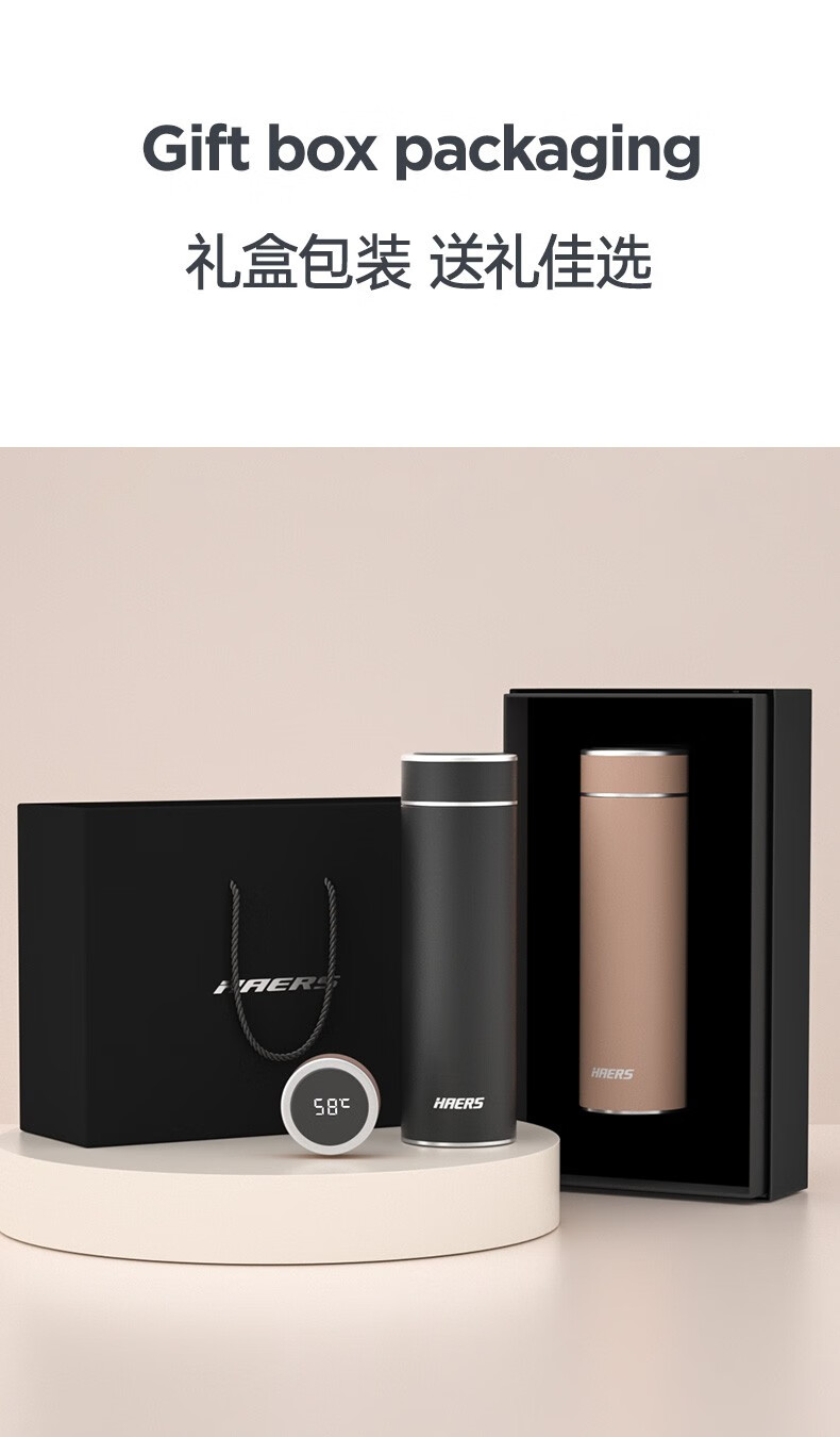 哈尔斯保温杯商务智能显温杯316不锈钢办公车载便携男女士【无缝内胆316】HDM-500-53 自营