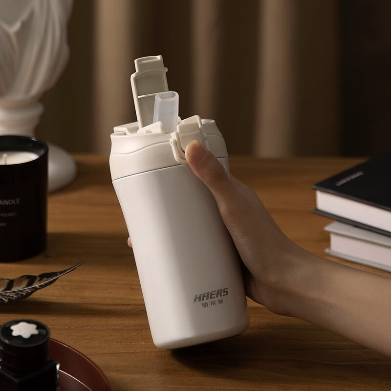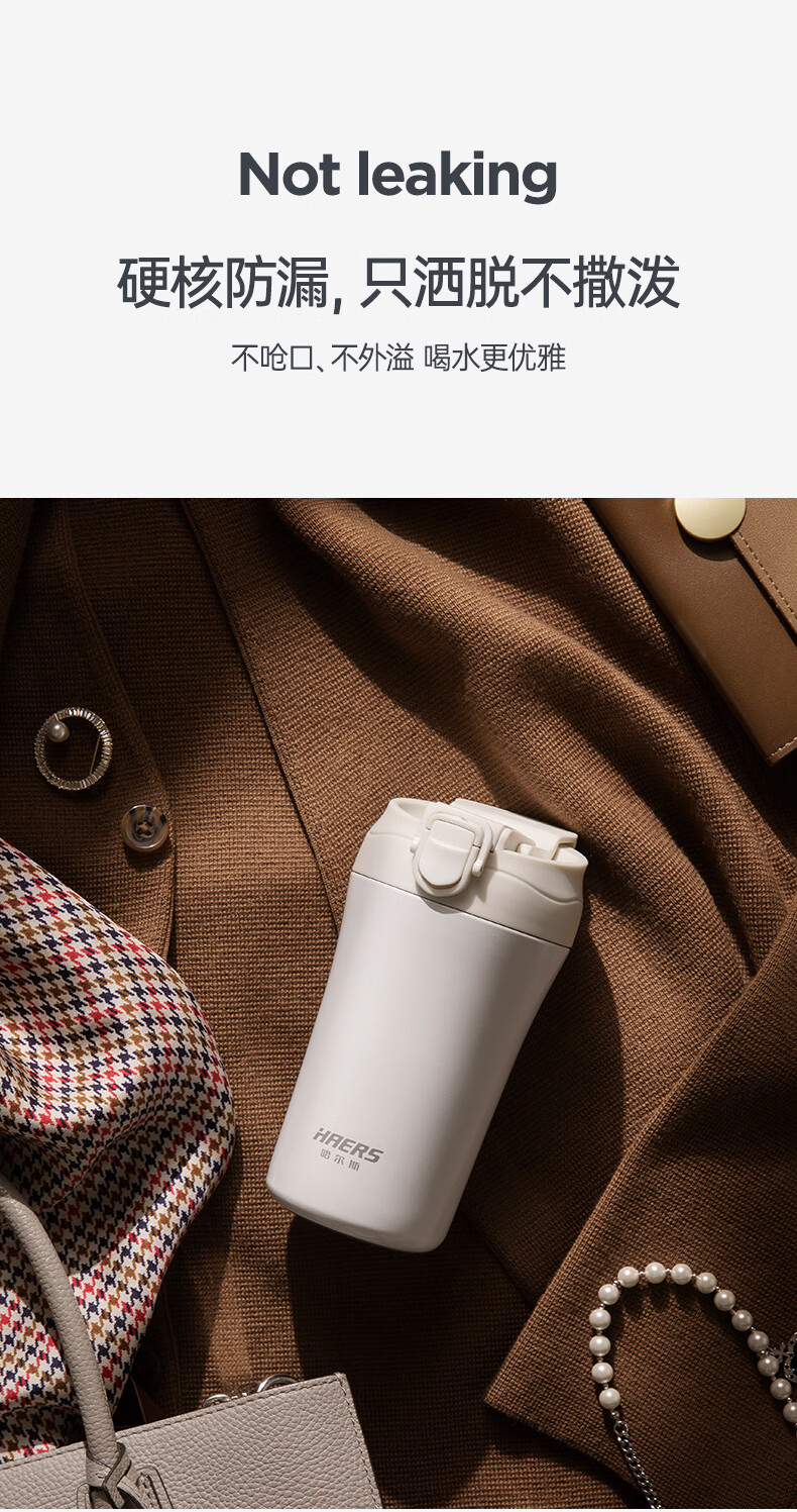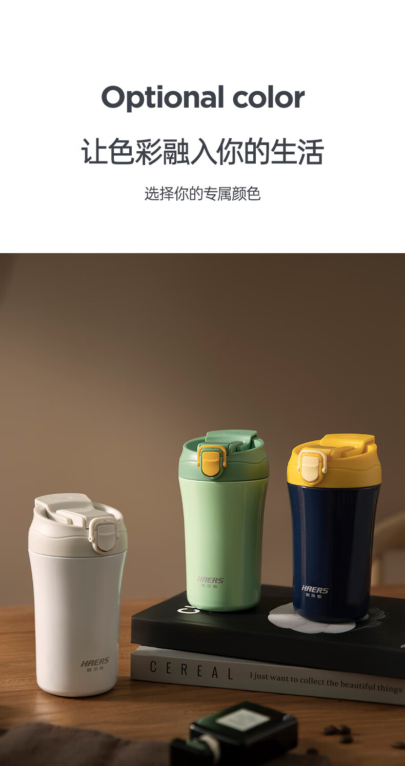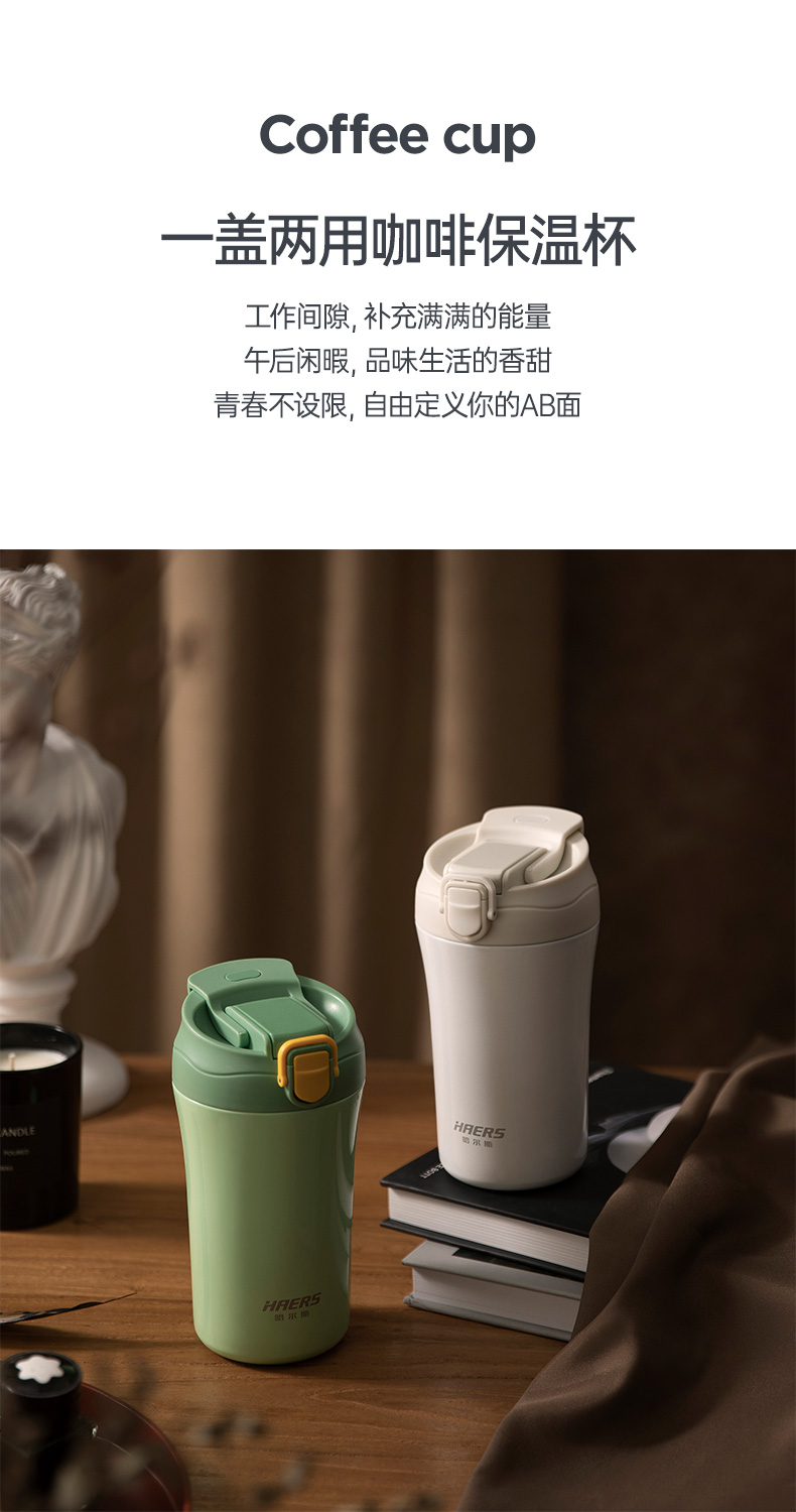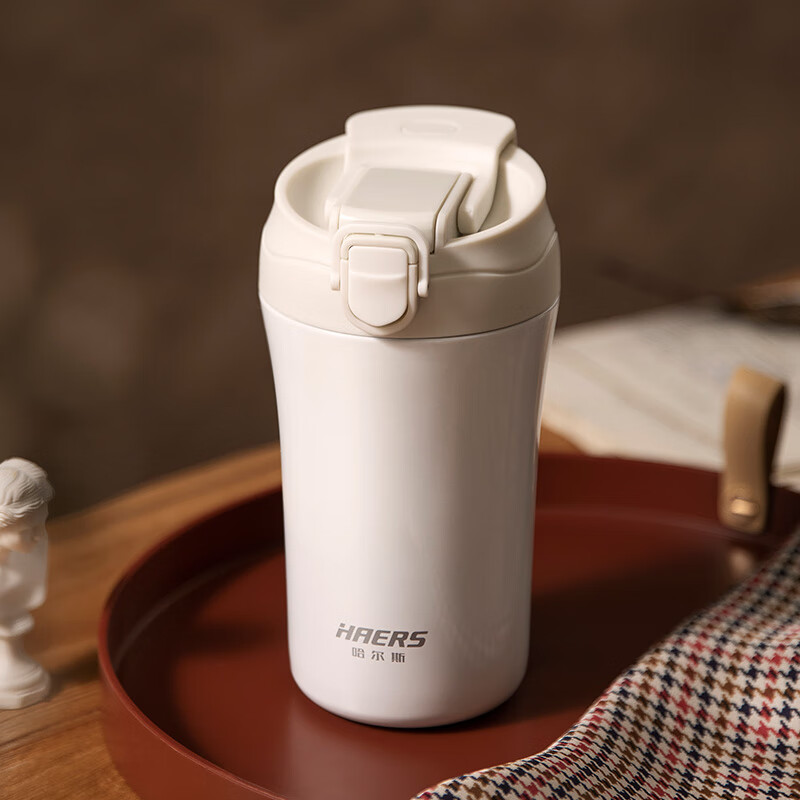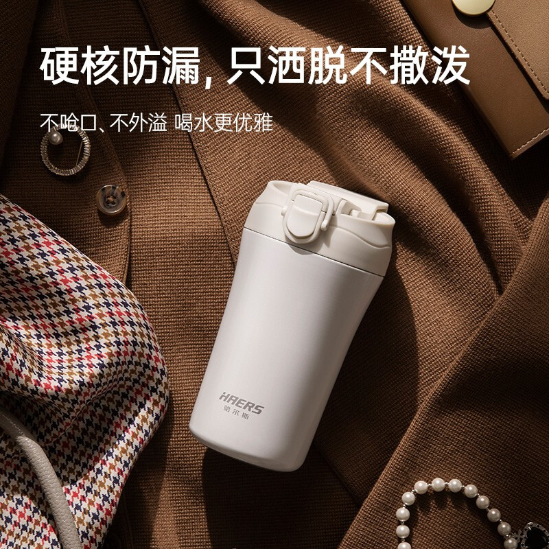 哈尔斯(HAERS)保温杯女高颜值咖啡杯双饮口时尚办公杯车载大容量随行水杯420ml HE-420-21 自营