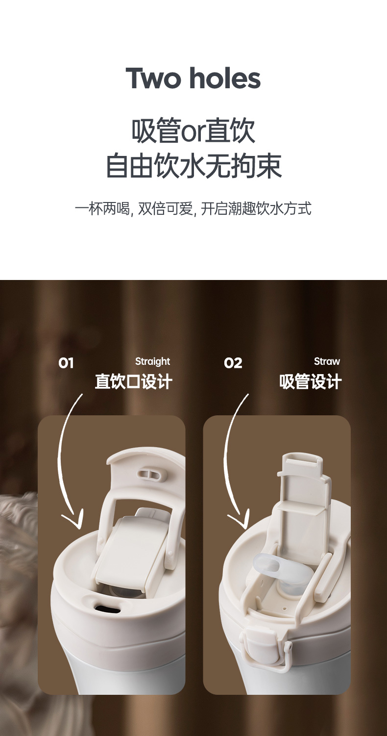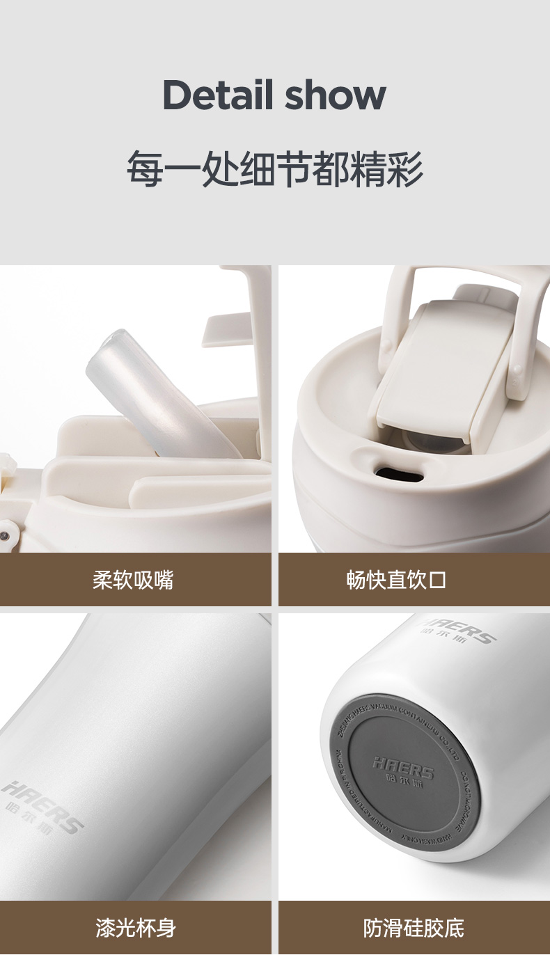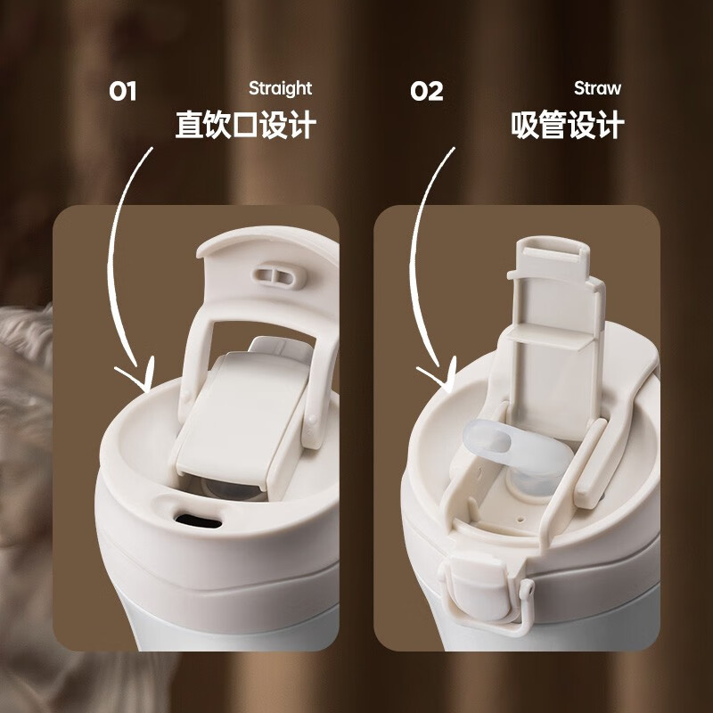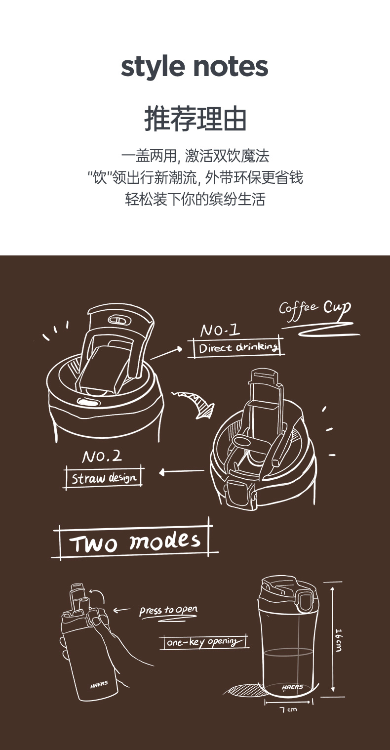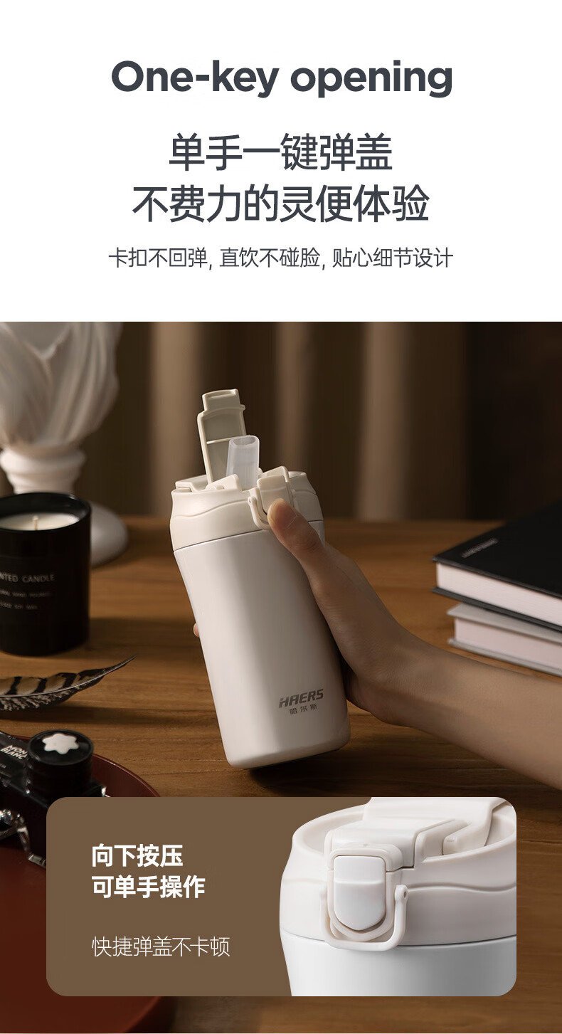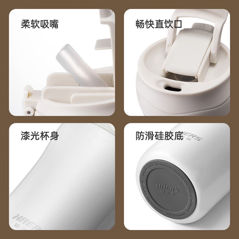 哈尔斯(HAERS)保温杯女高颜值咖啡杯双饮口时尚办公杯车载大容量随行水杯420ml HE-420-21 自营