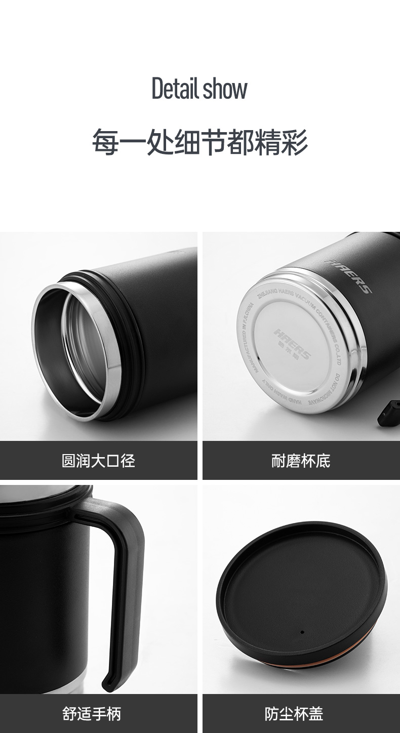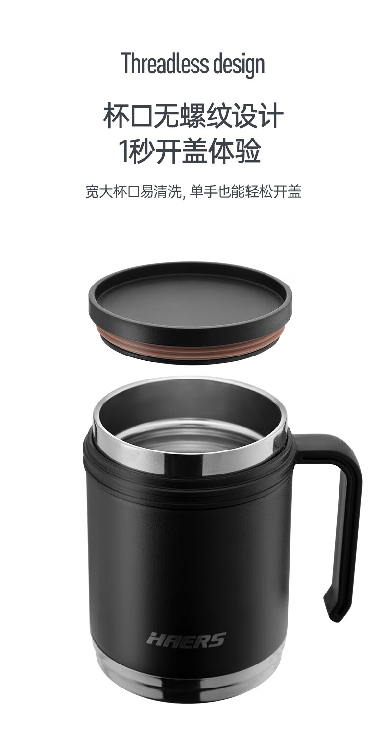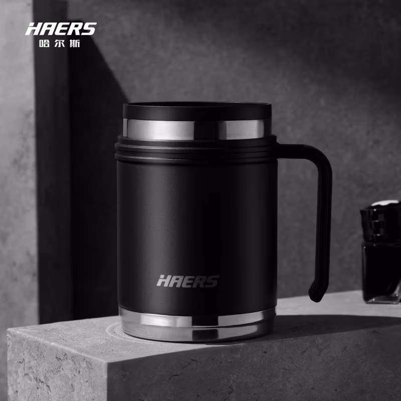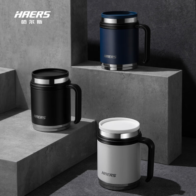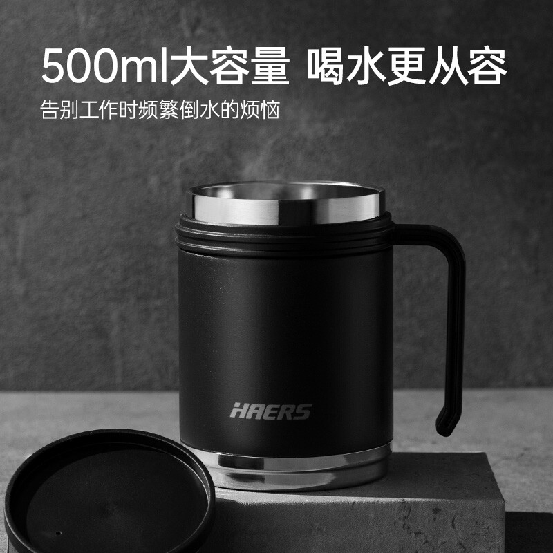 哈尔斯(HAERS)精钢系列办公杯/保温杯男女316不锈钢精钢系列商务办公水杯带手柄泡茶杯500mL HBG-500-17 自营