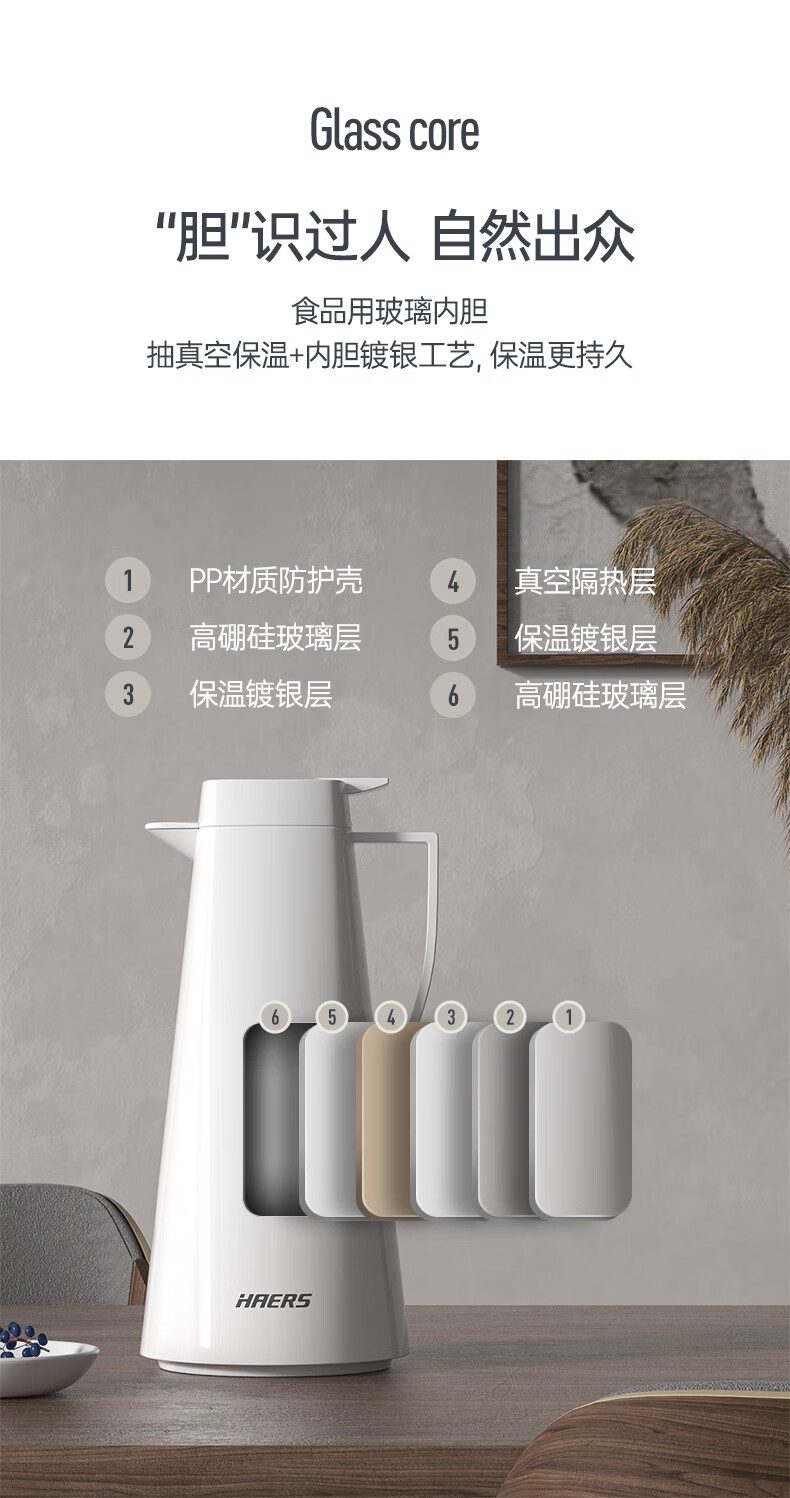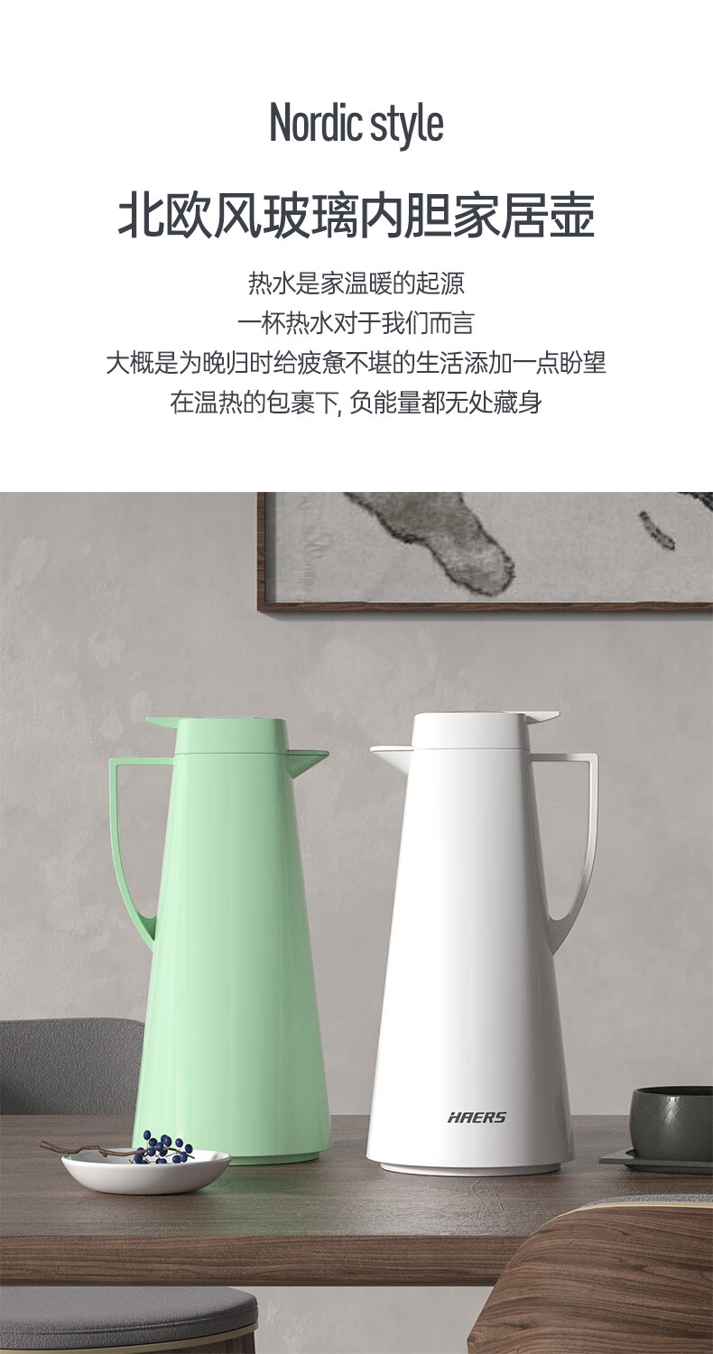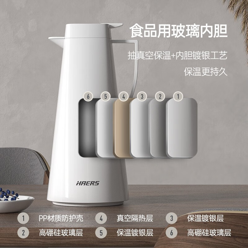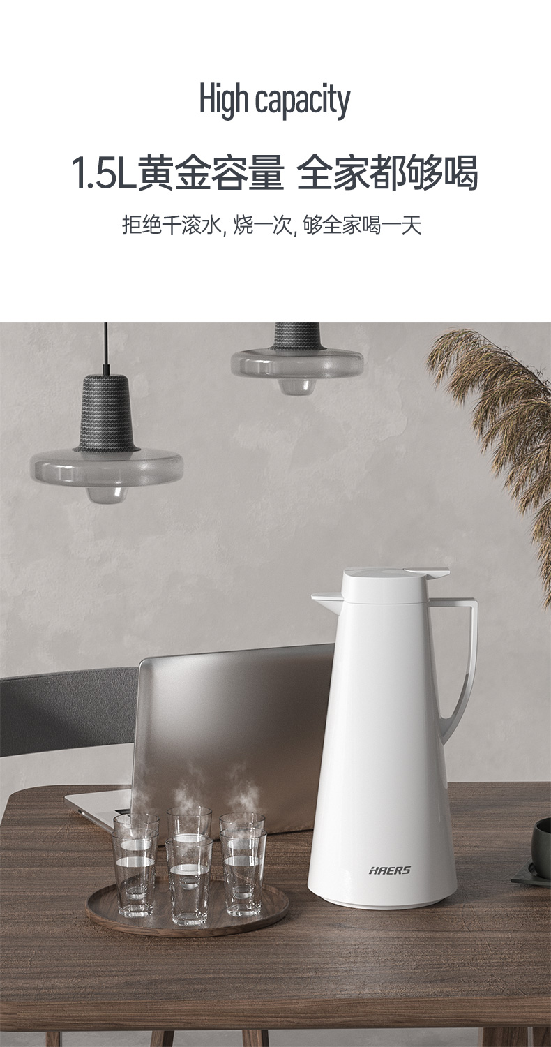哈尔斯保温壶家用玻璃内胆保温瓶大容量暖水壶北欧风家居壶1.5L 1500ml HKG-1500-7 自营