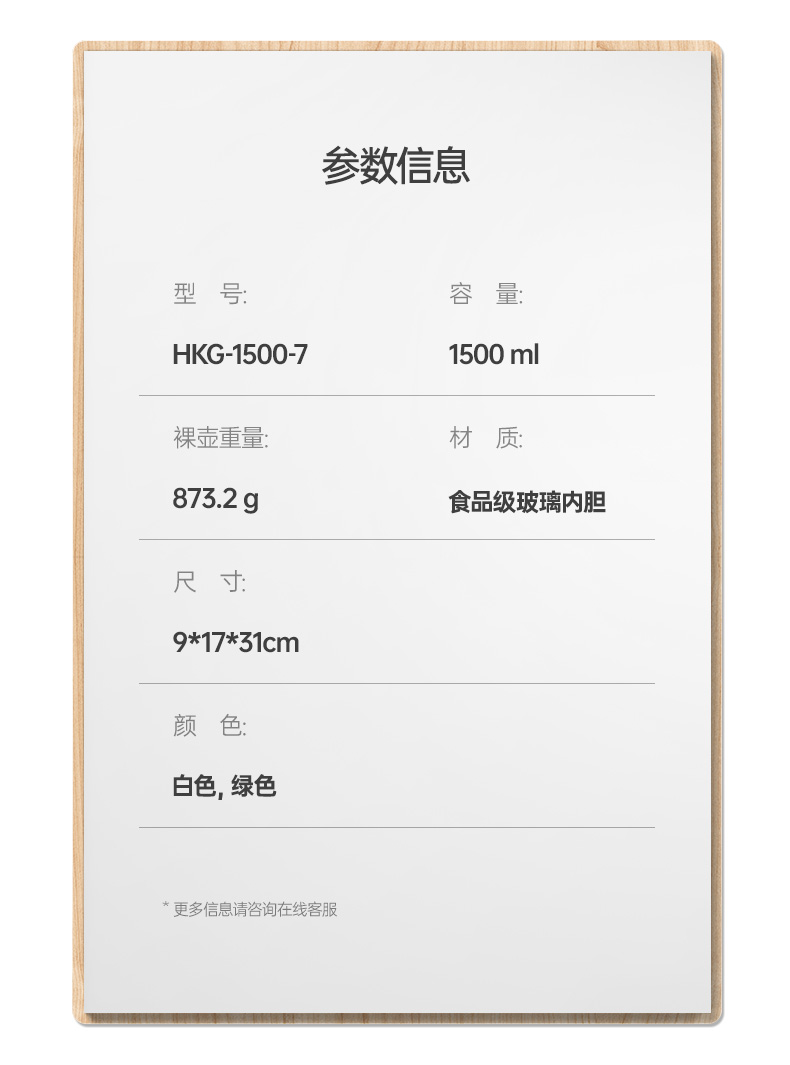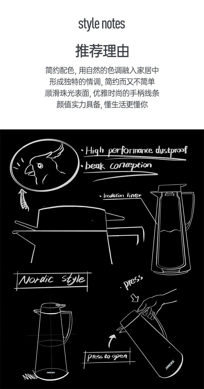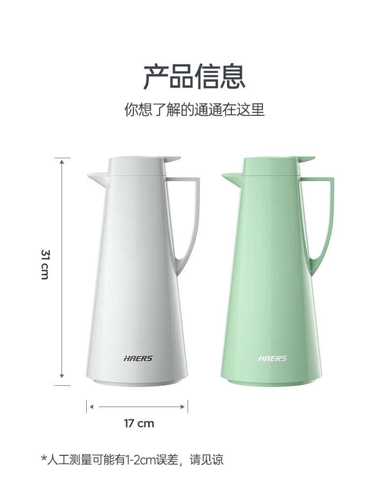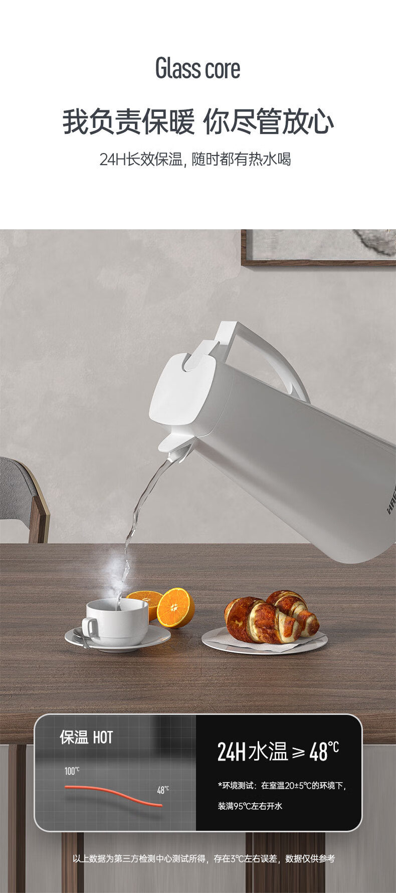 哈尔斯保温壶家用玻璃内胆保温瓶大容量暖水壶北欧风家居壶1.5L 1500ml HKG-1500-7 自营