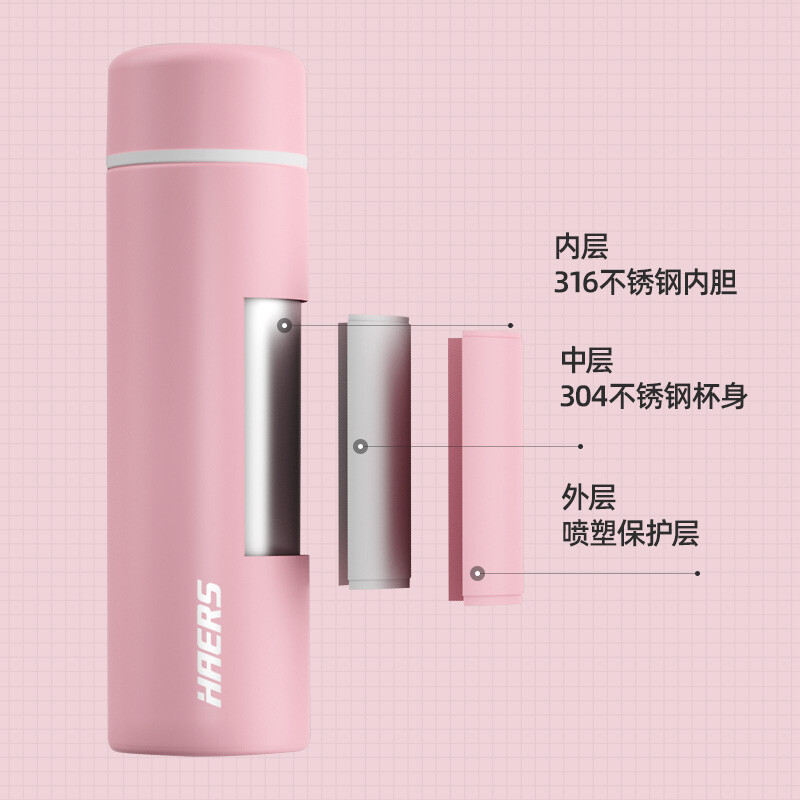¥178.00哈尔斯(HAERS)天鹅轻量真空保温杯/316不锈钢保温杯弹跳盖水杯子女卡通简约便携防摔直饮轻量杯350ml LD-350-88 (一杯双盖)