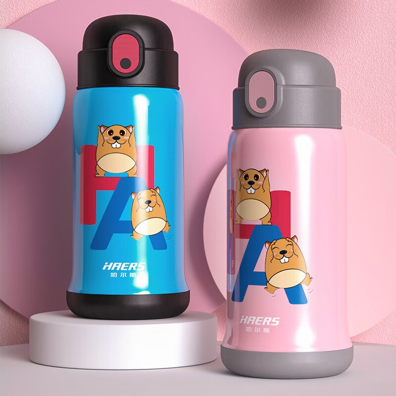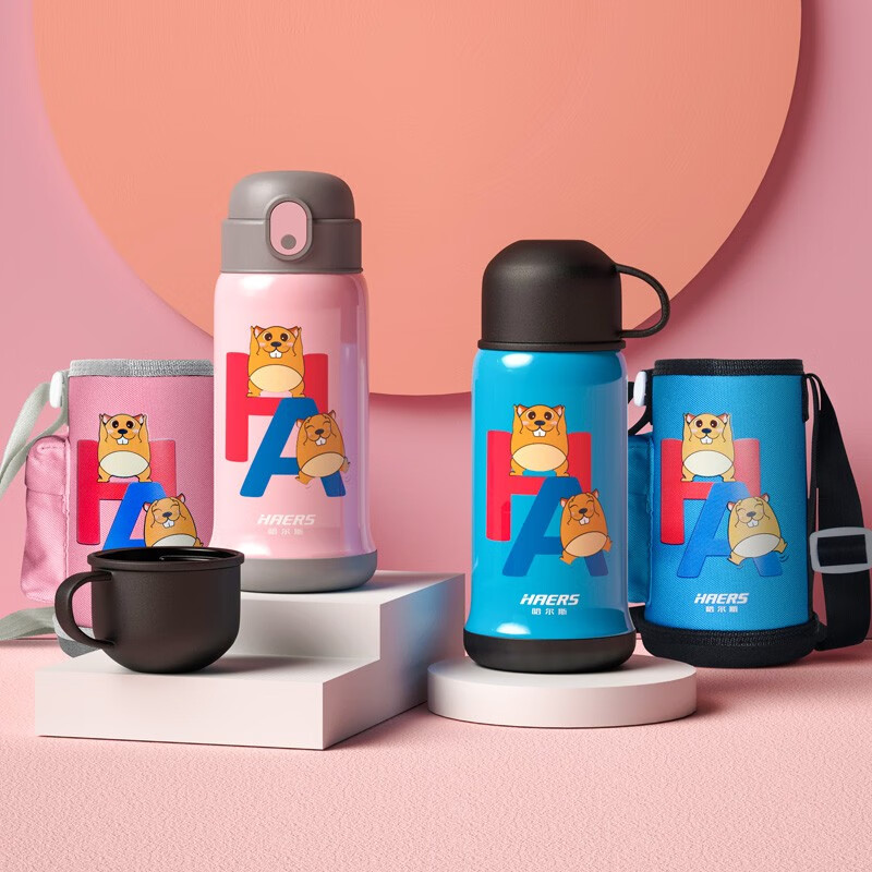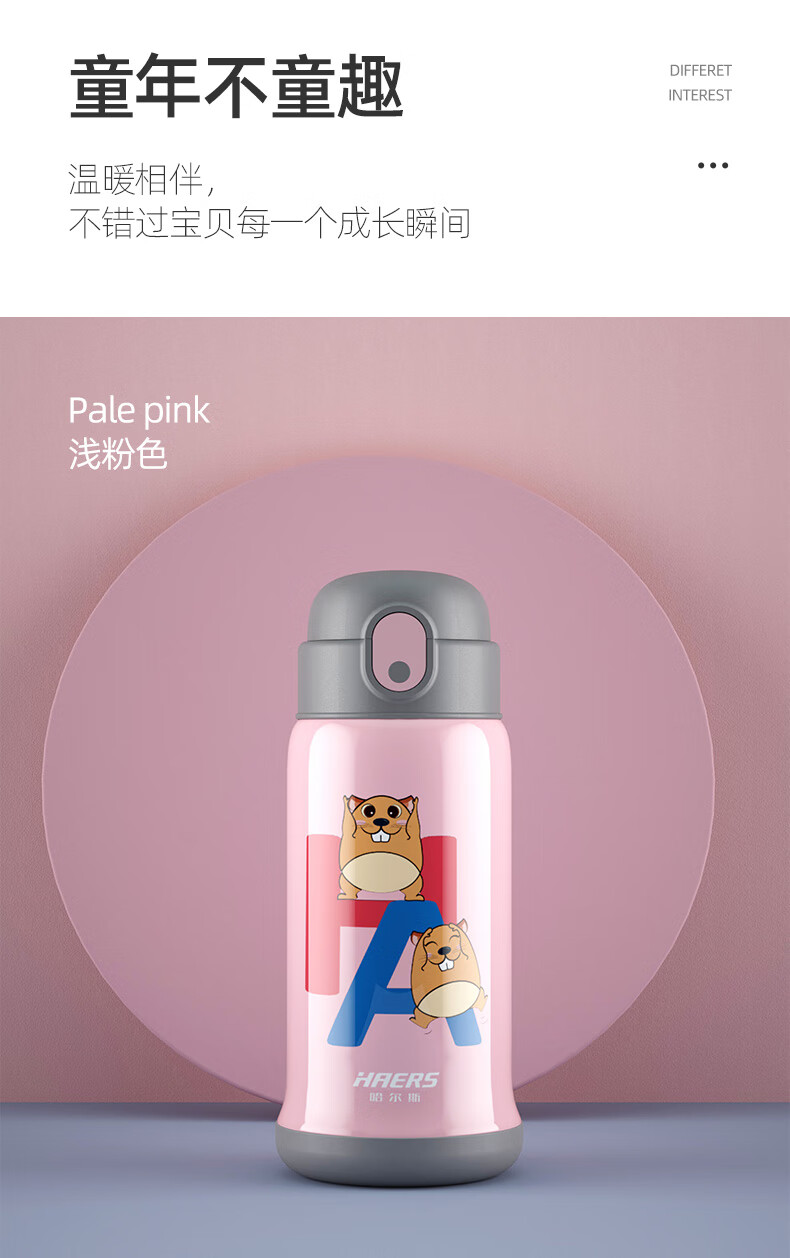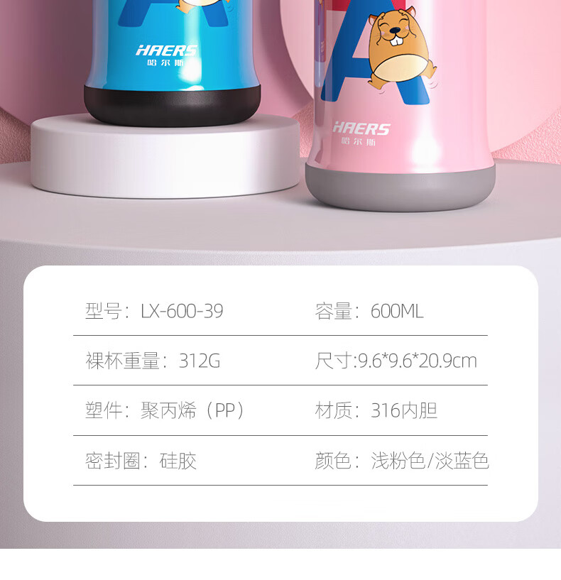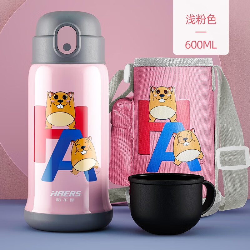 哈尔斯哈趣儿童壶 (一壶双盖)/316不锈钢儿童保温杯带吸管男女两用茶杯600ml大容量小学生防摔宝宝幼儿园水杯600ml LX-600-40 自营