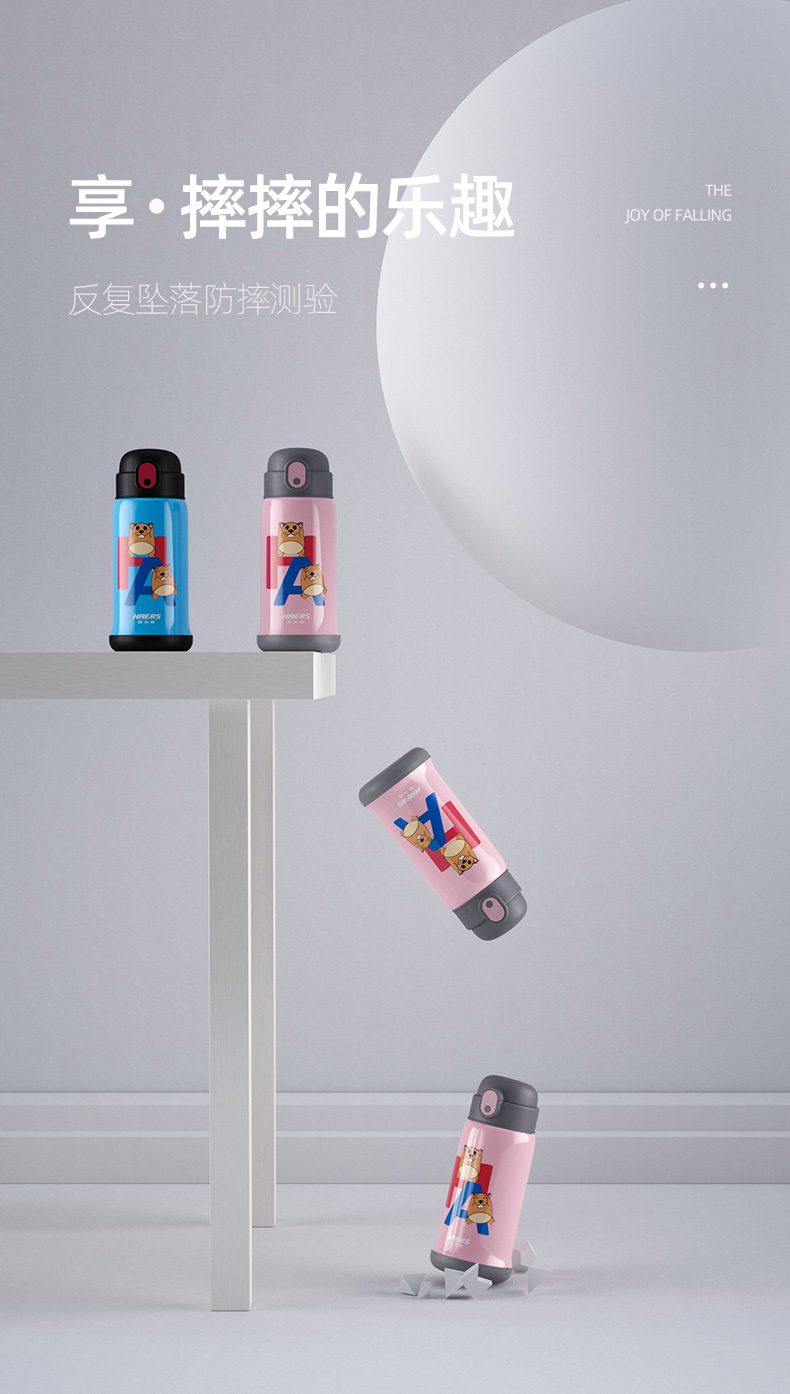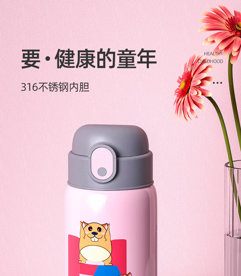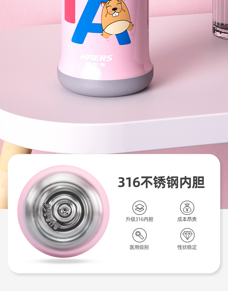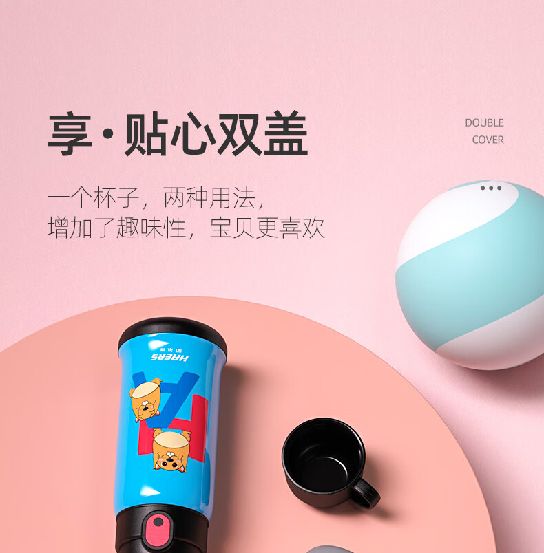 哈尔斯哈趣儿童壶 (一壶双盖)/316不锈钢儿童保温杯带吸管男女两用茶杯600ml大容量小学生防摔宝宝幼儿园水杯600ml LX-600-40 自营