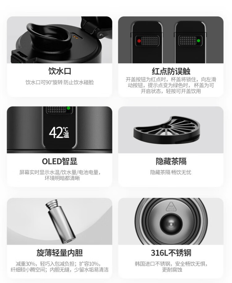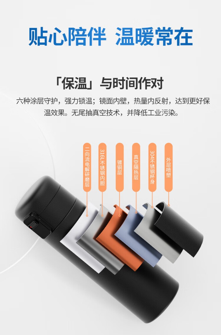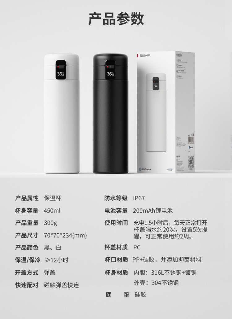 哈尔斯保温杯/智能水杯12H哈尔斯保温杯数显提醒316不锈钢+智能屏显】HDM-450-16 自营