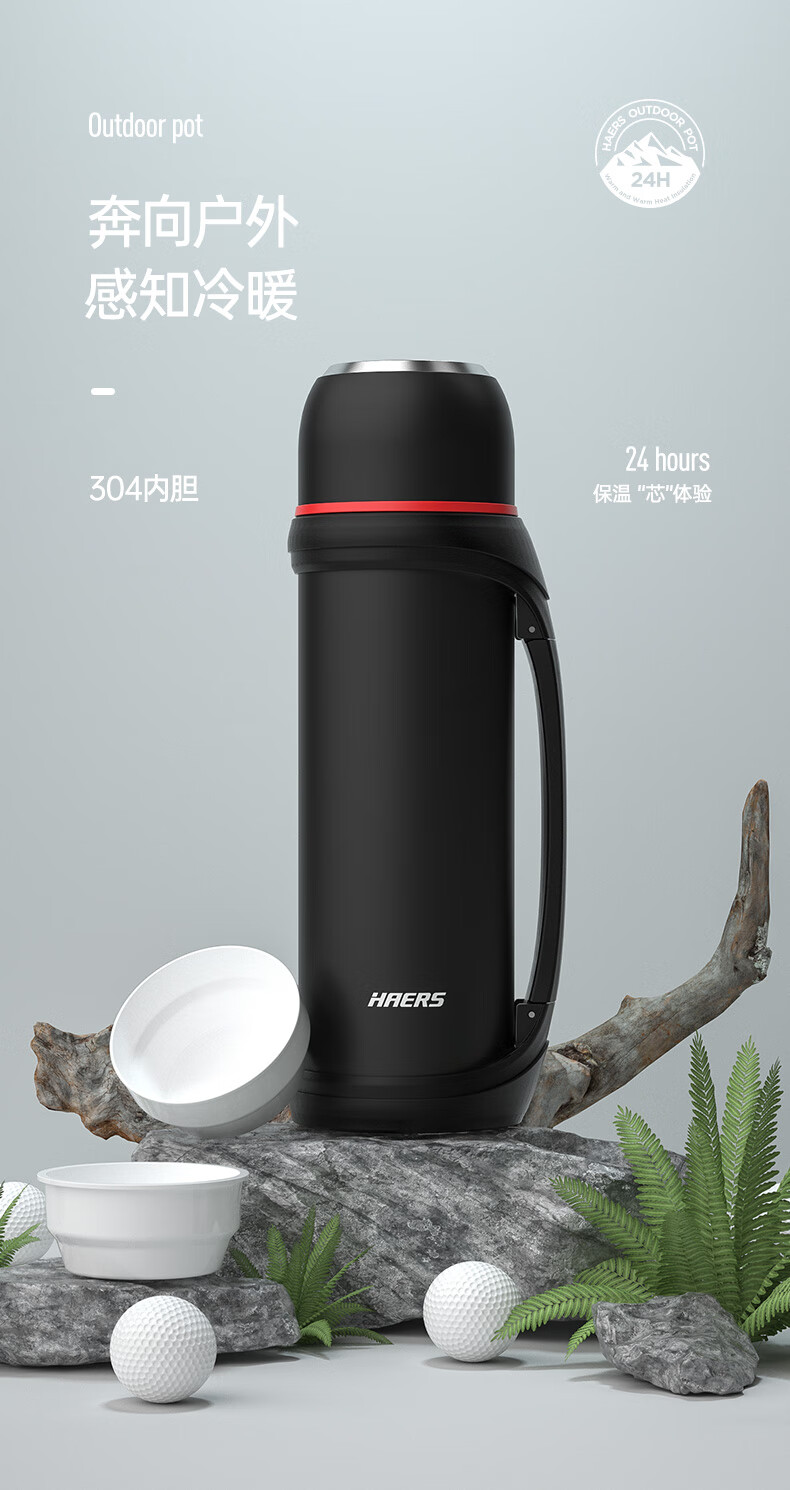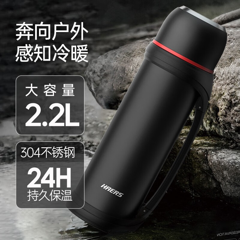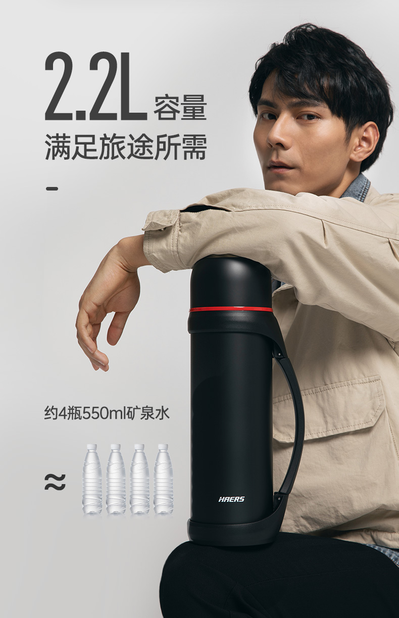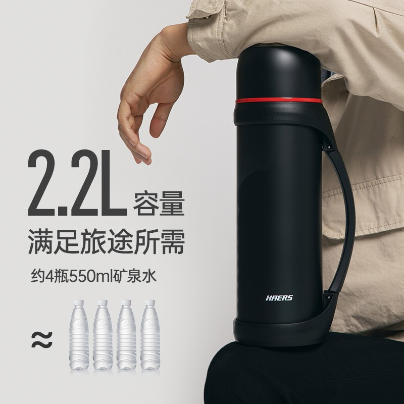 哈尔斯(HAERS)悦途多碗旅行壶/保温壶户外大容量旅行壶2.2L 不锈钢真空保温瓶暖瓶车载运动水壶 LY-2200-12 自营