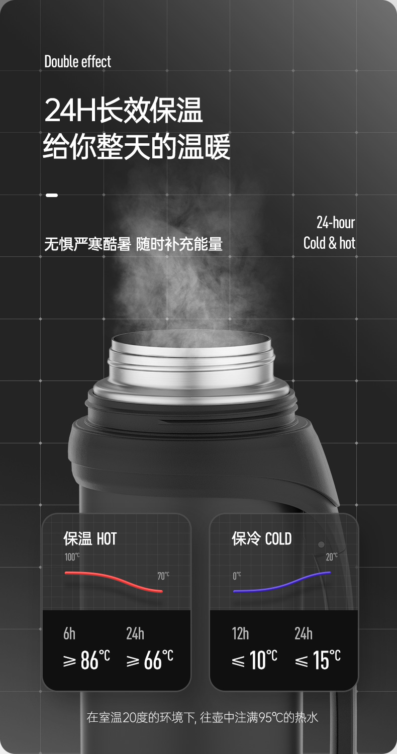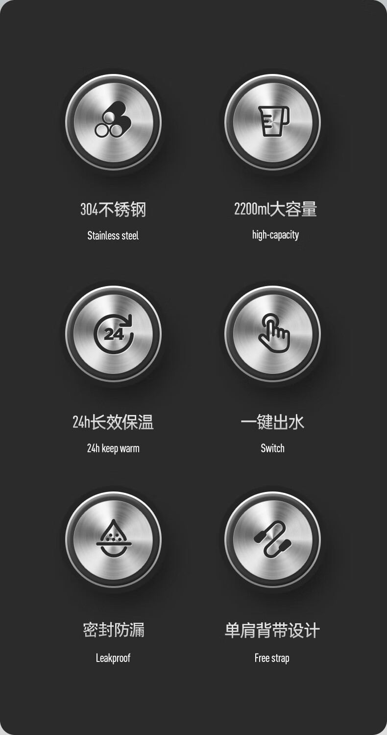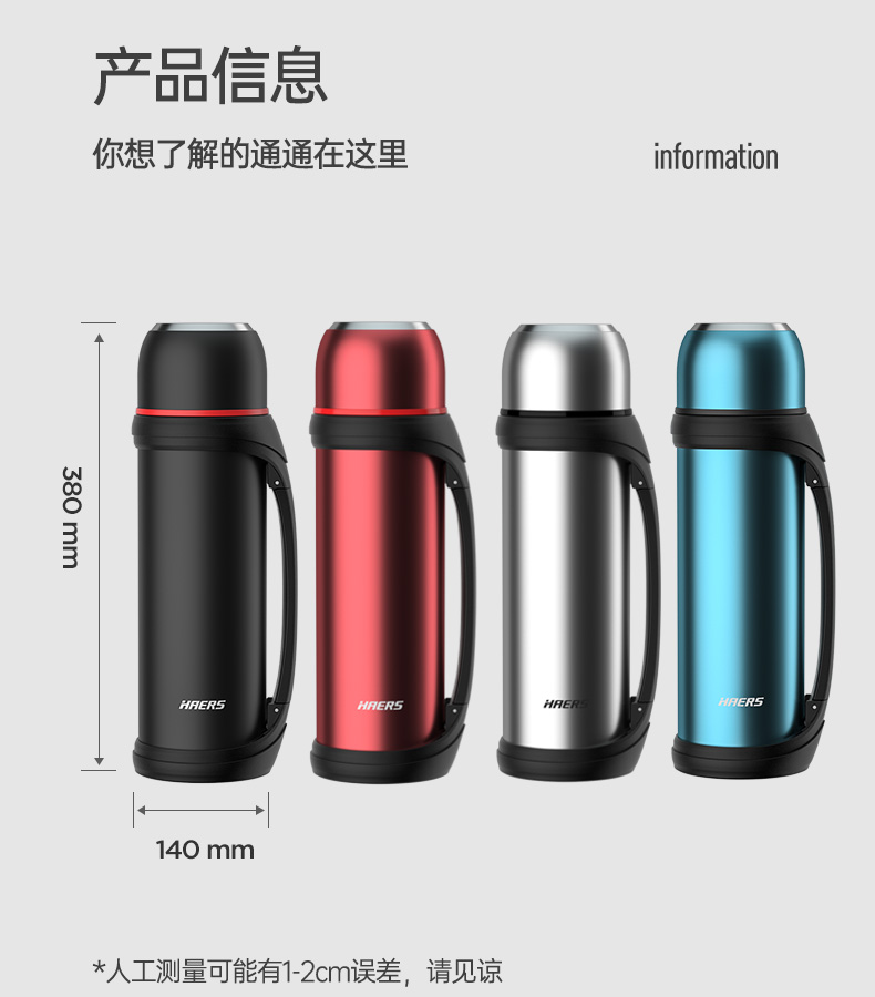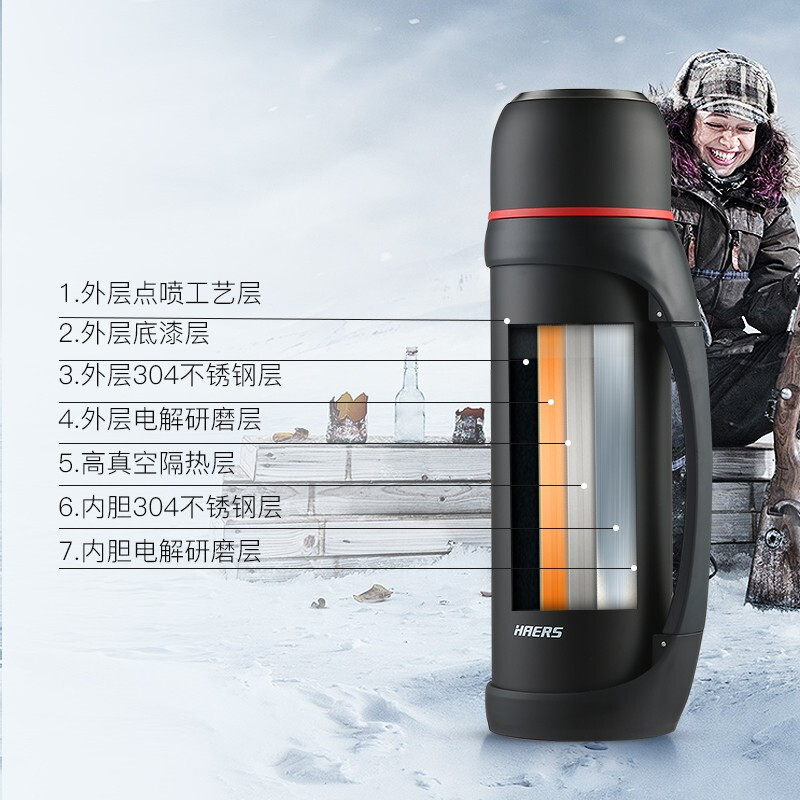 哈尔斯(HAERS)悦途多碗旅行壶/保温壶户外大容量旅行壶2.2L 不锈钢真空保温瓶暖瓶车载运动水壶 LY-2200-12 自营