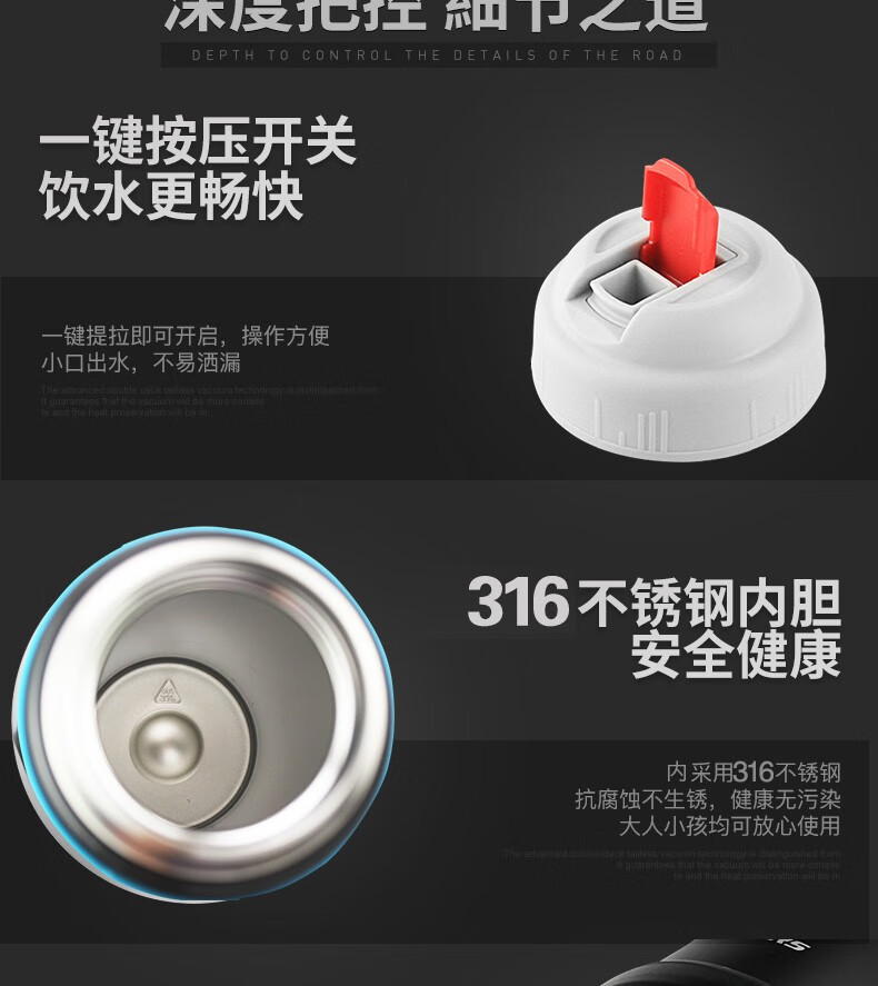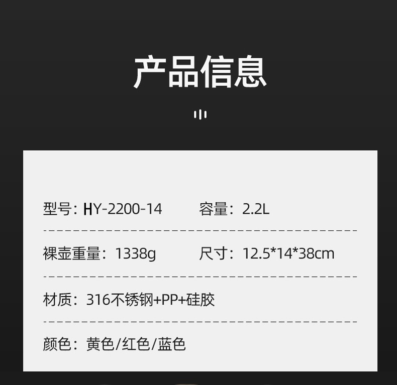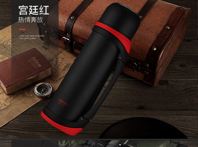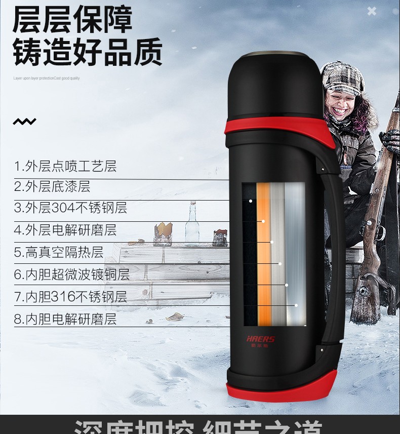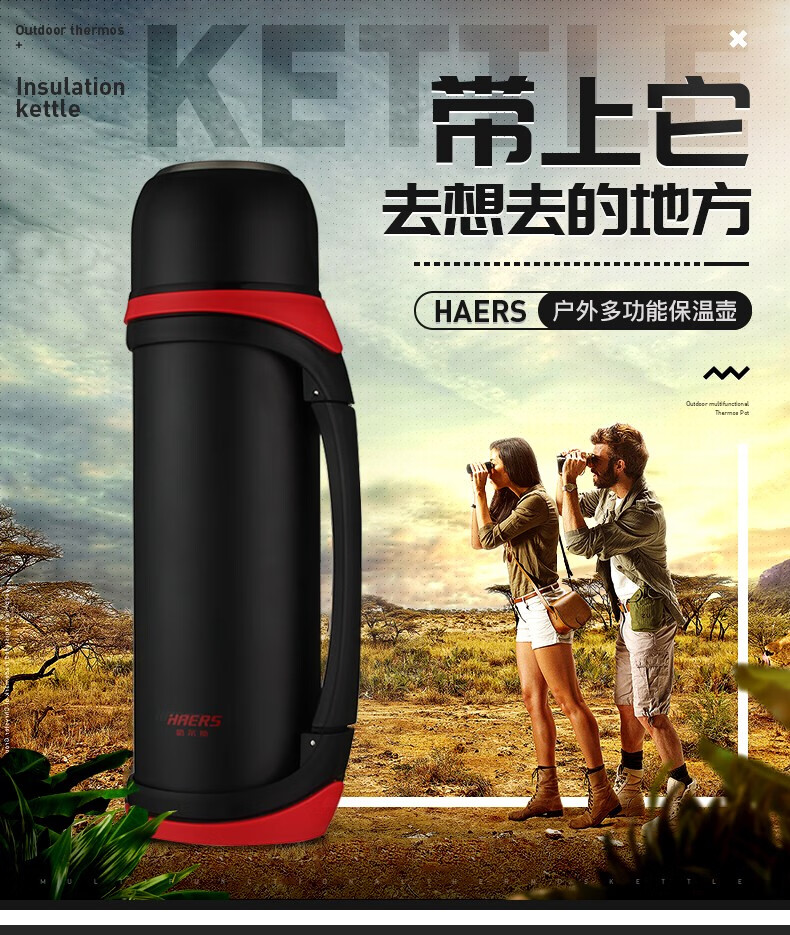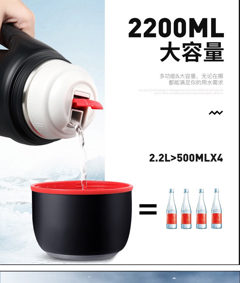 哈尔斯(HAERS)HY-2200-14不锈钢真空保温壶2200ml户外运动广口旅行壶暖瓶水壶旅游壶 自营