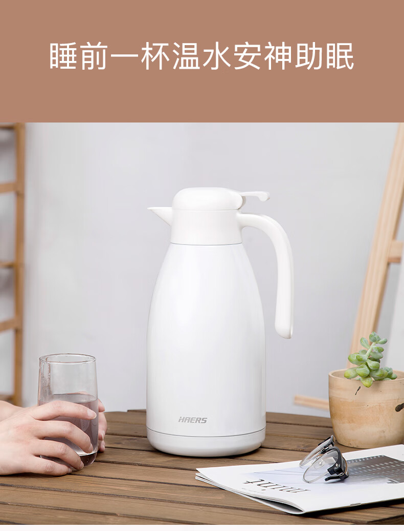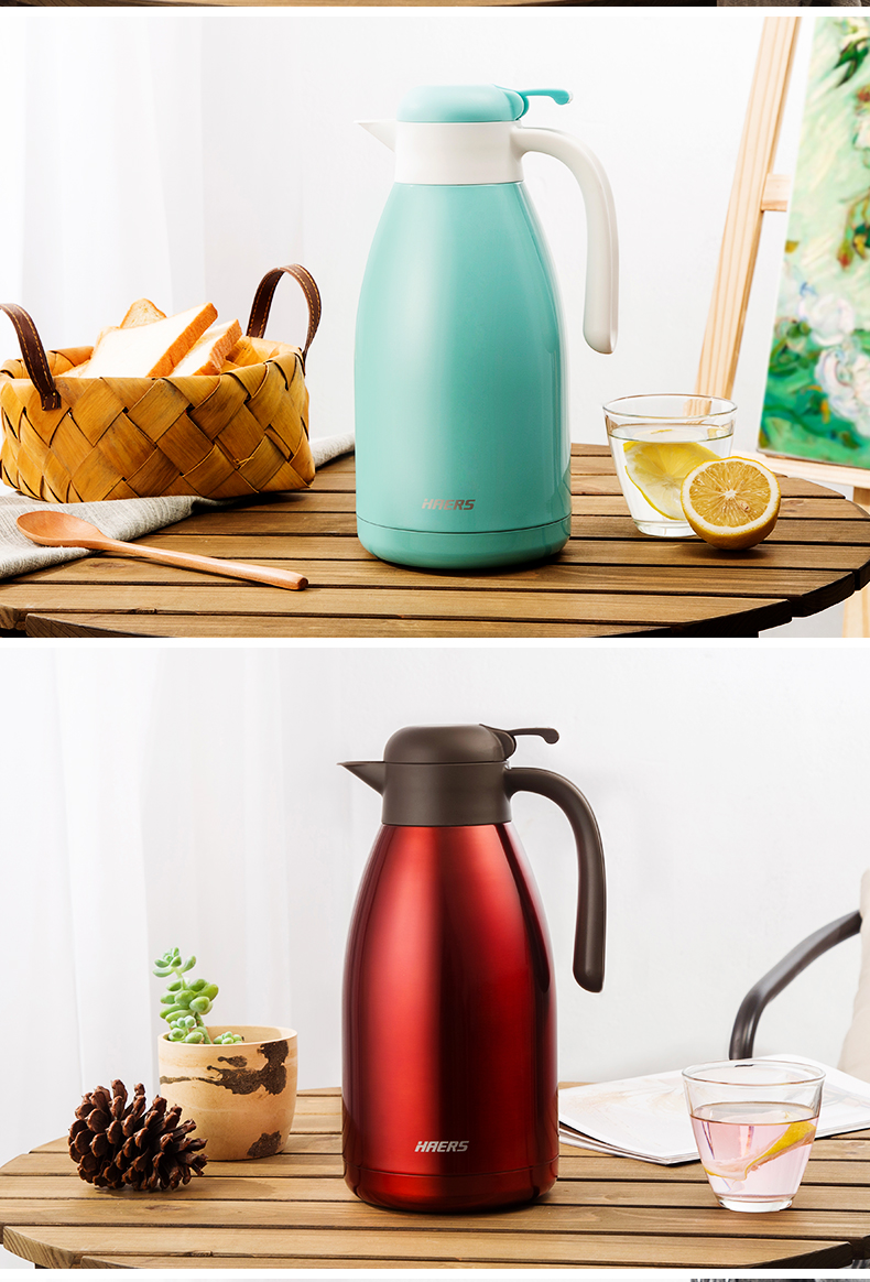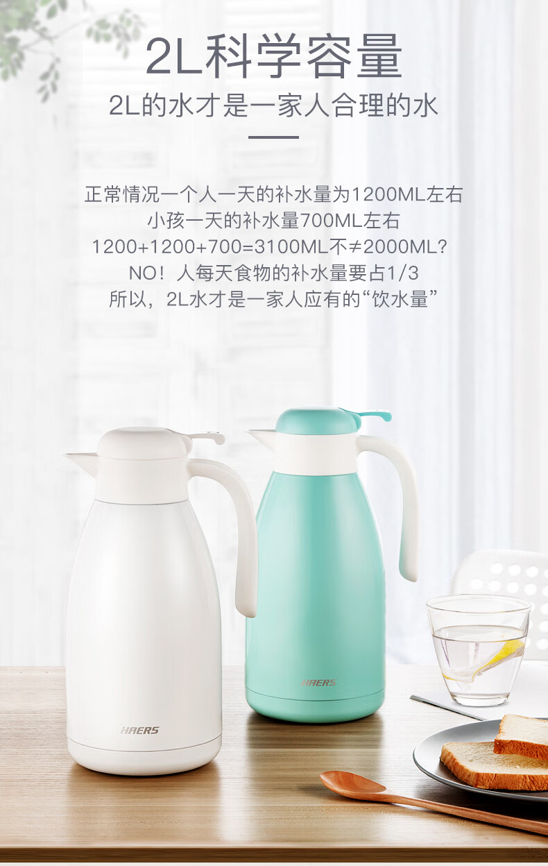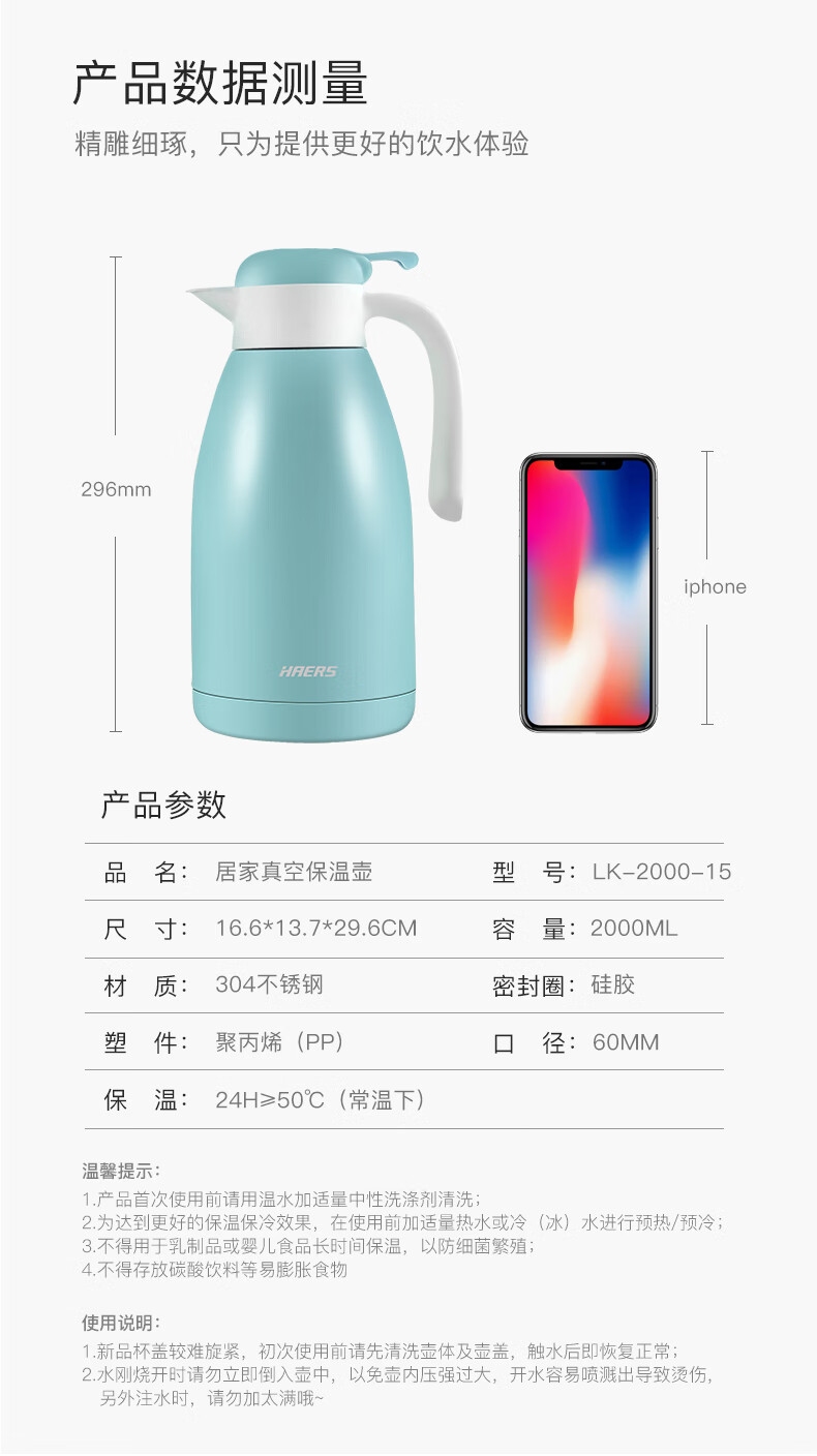 哈尔斯 保温壶杯 家用暖壶瓶热水瓶壶 健康不锈钢暖水瓶壶 保温壶瓶2L欧式家用开水瓶咖啡壶 碧蓝2000ml-尊享 LK-2000-15 自营