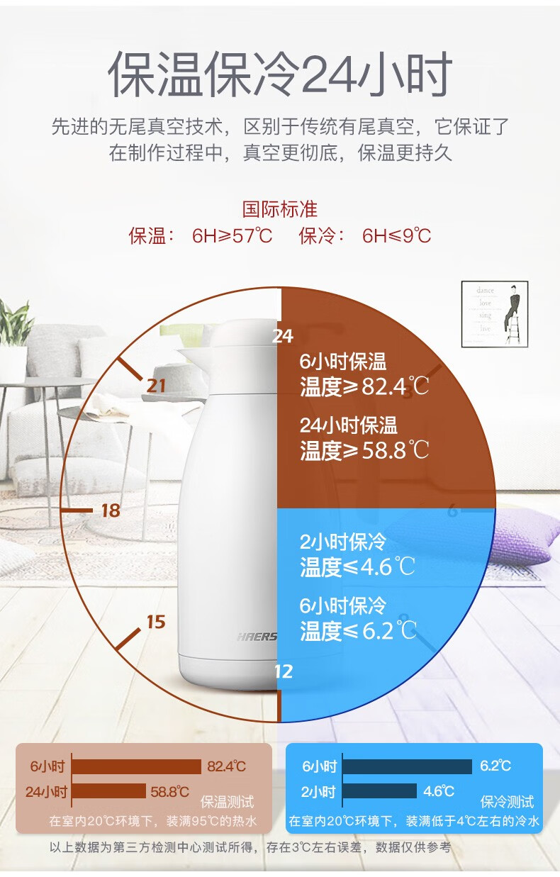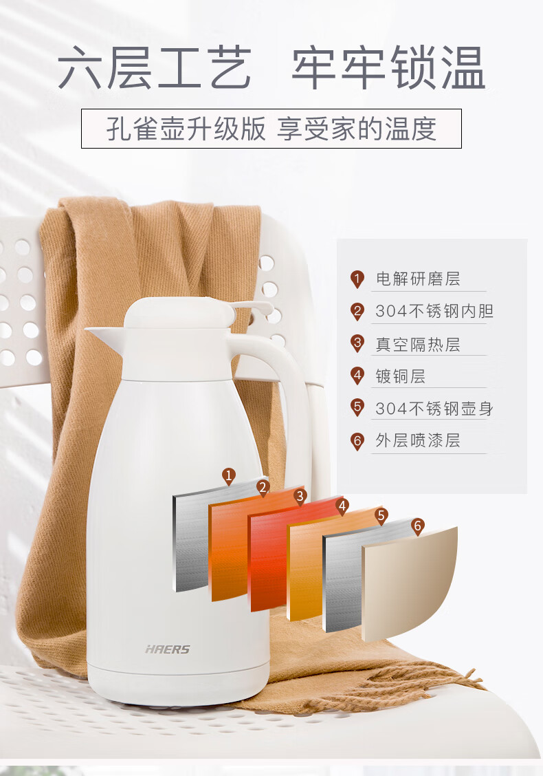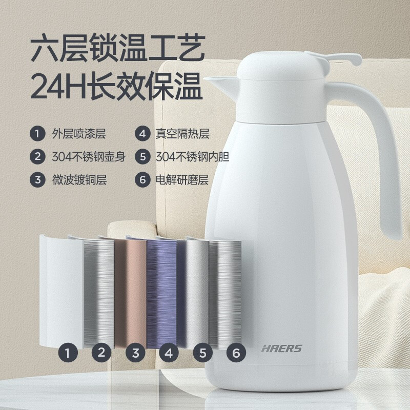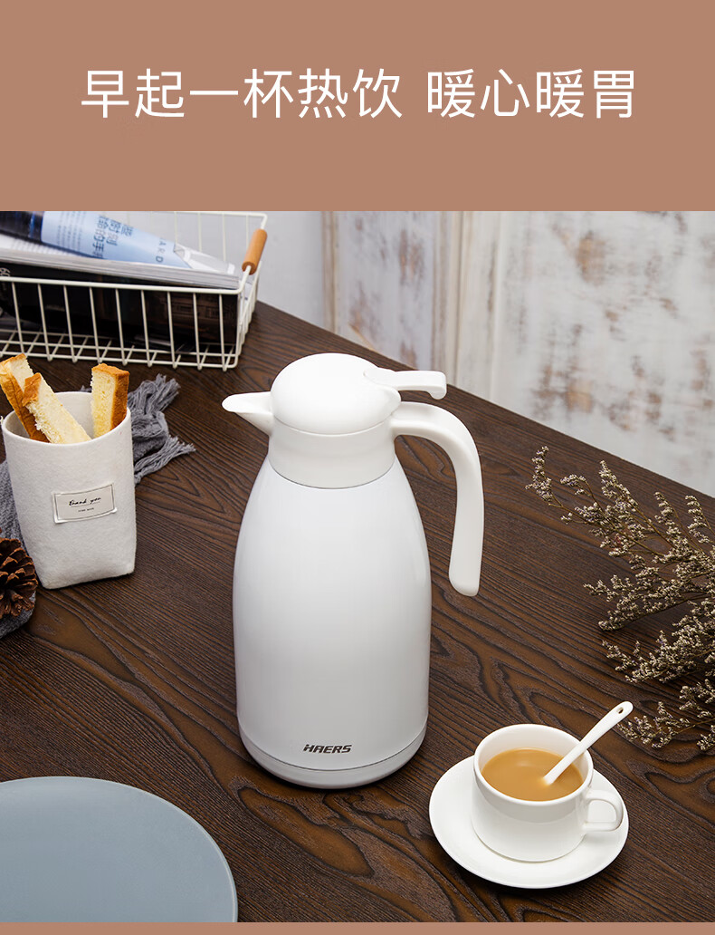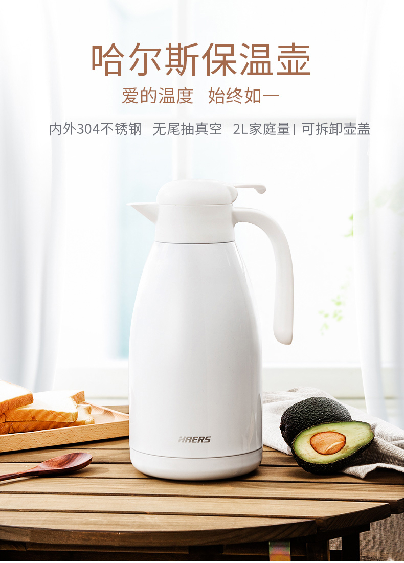 哈尔斯 保温壶杯 家用暖壶瓶热水瓶壶 健康不锈钢暖水瓶壶 保温壶瓶2L欧式家用开水瓶咖啡壶 碧蓝2000ml-尊享 LK-2000-15 自营