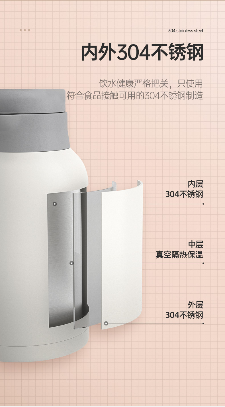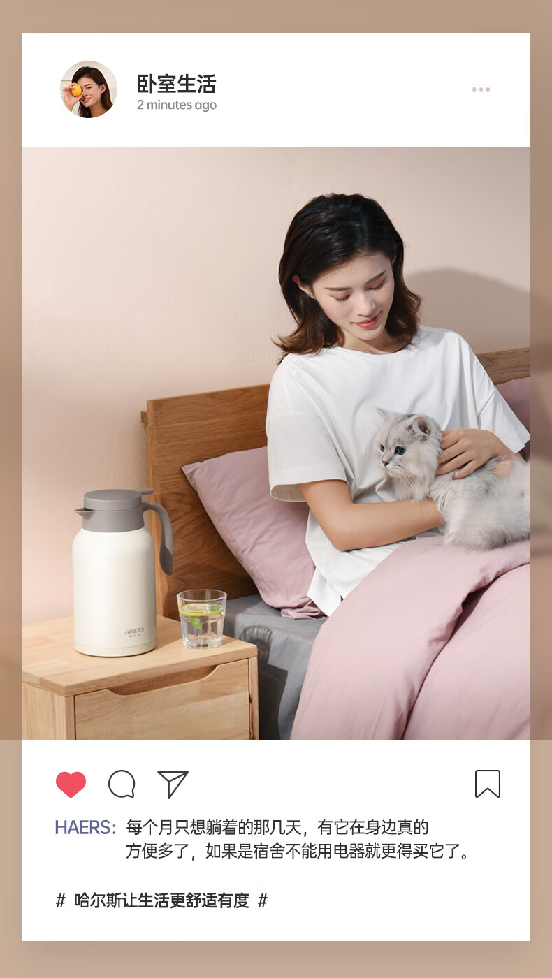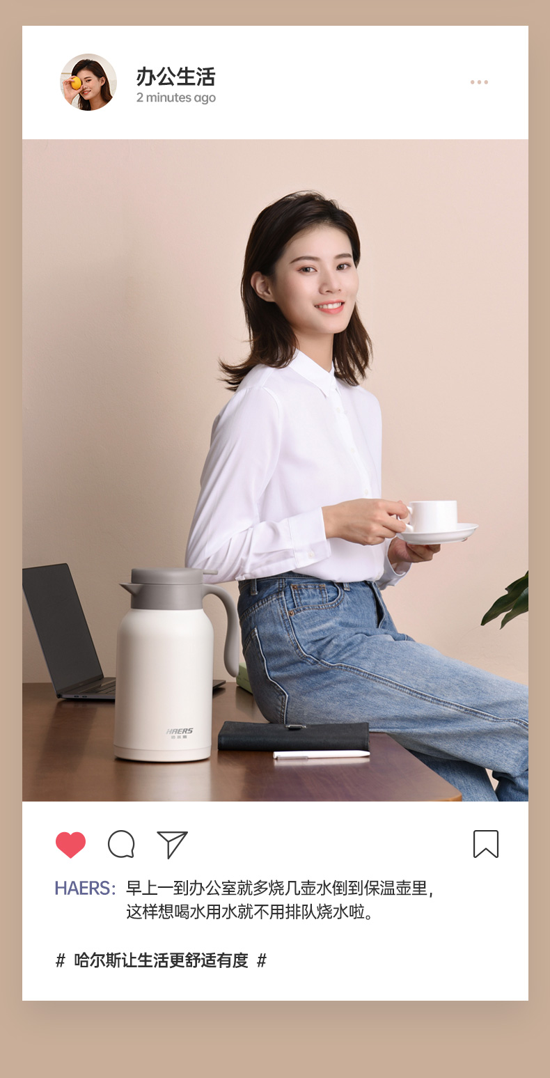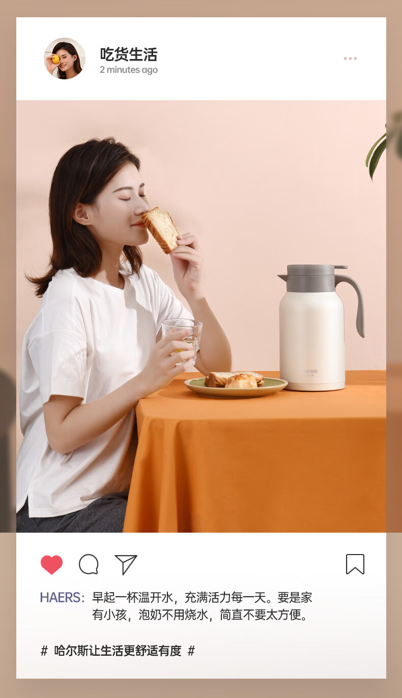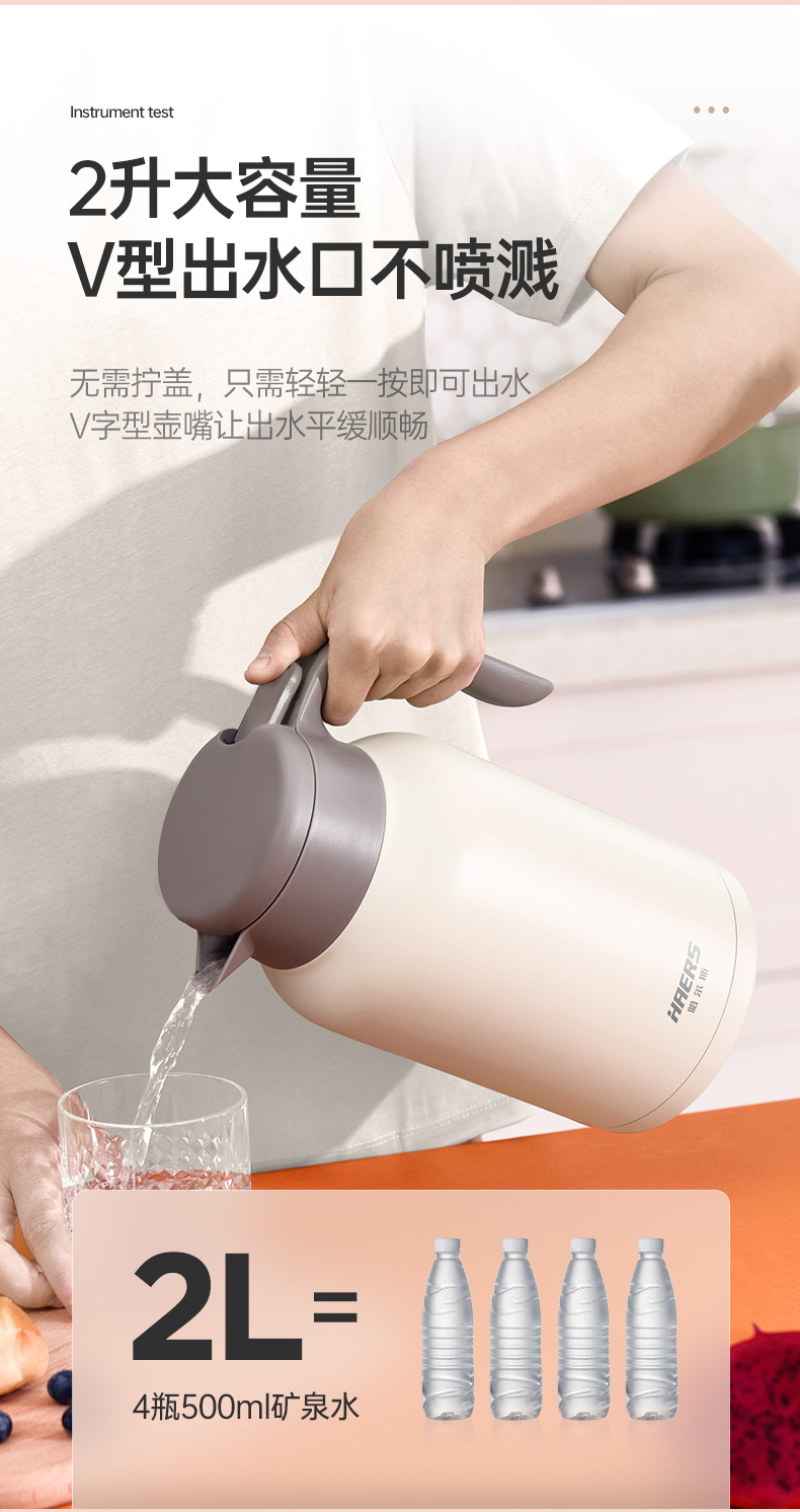 哈尔斯(HAERS)不锈钢日系家居保温壶/保温壶家用暖瓶2L不锈钢热水瓶大容量真空咖啡壶车载便携保温水壶 LK-2000-26 自营