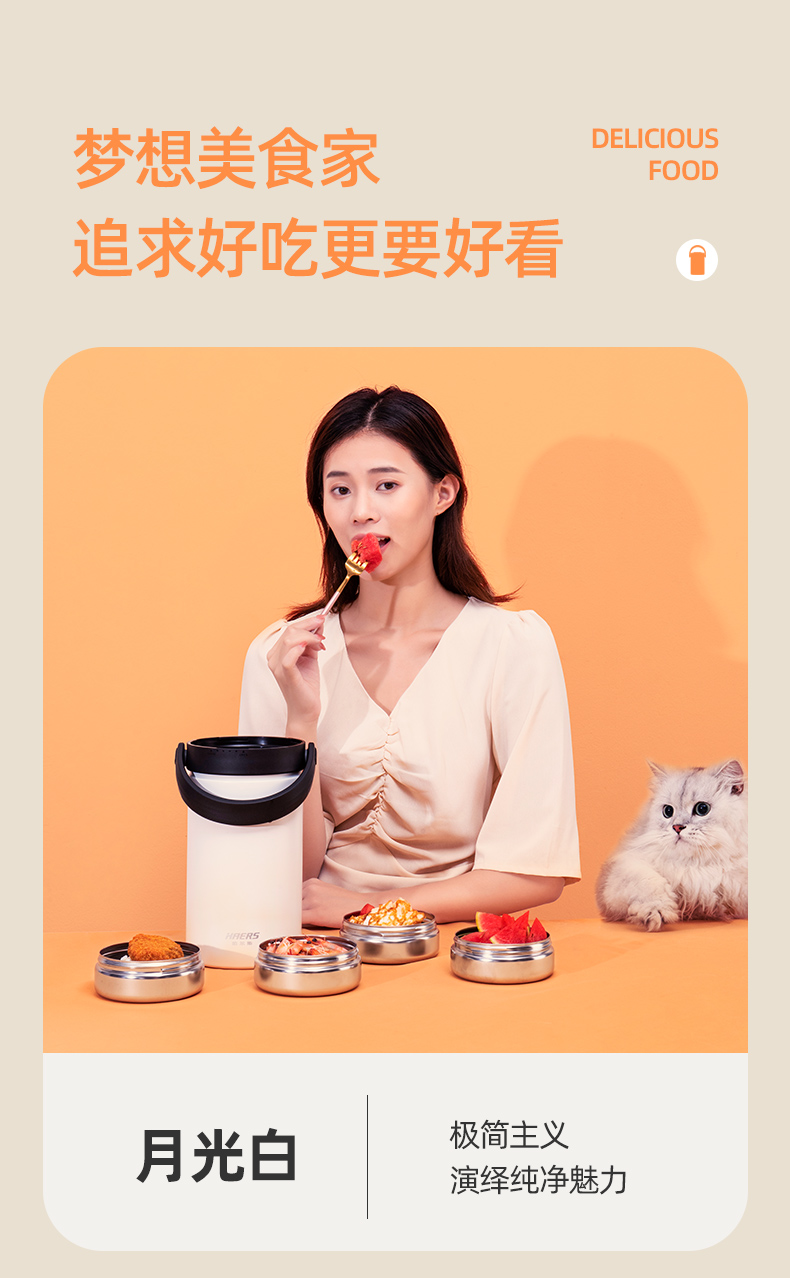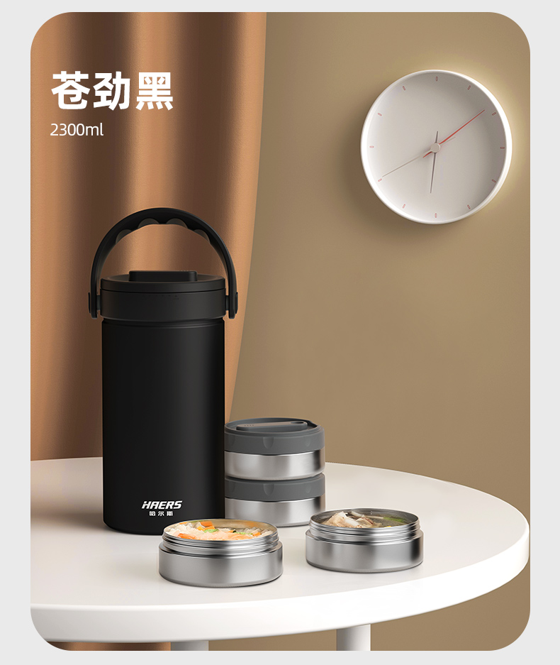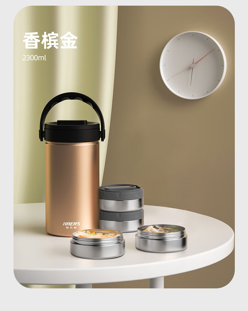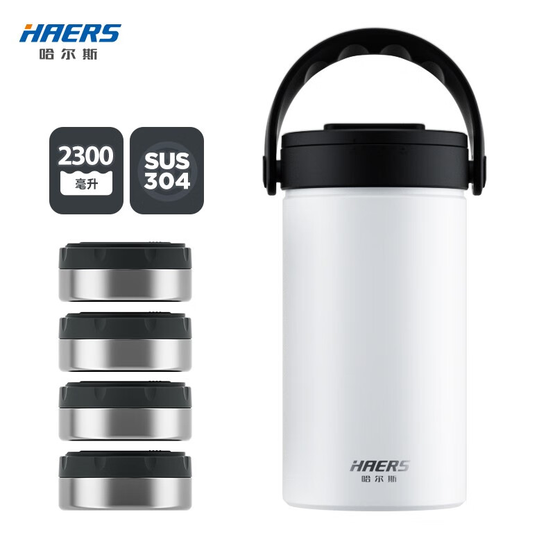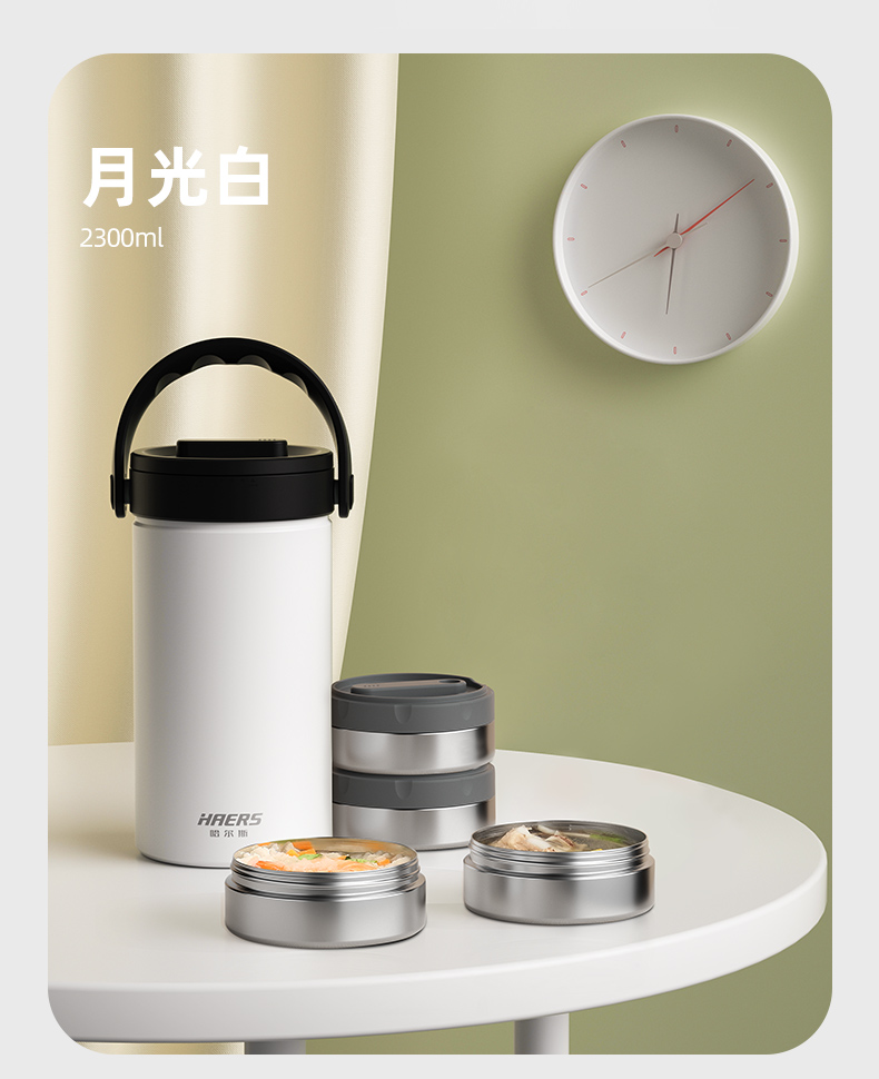 哈尔斯倍乐食光保温提锅/保温饭盒多层2.3升大容量提锅304不锈钢长效保温桶上班族学生带饭汤盒赠餐具 月光白2300ml【四层饭盒 内带餐具】 LR-2300-17 自营