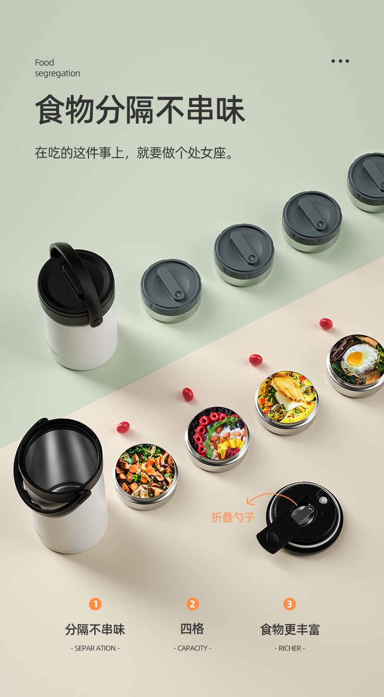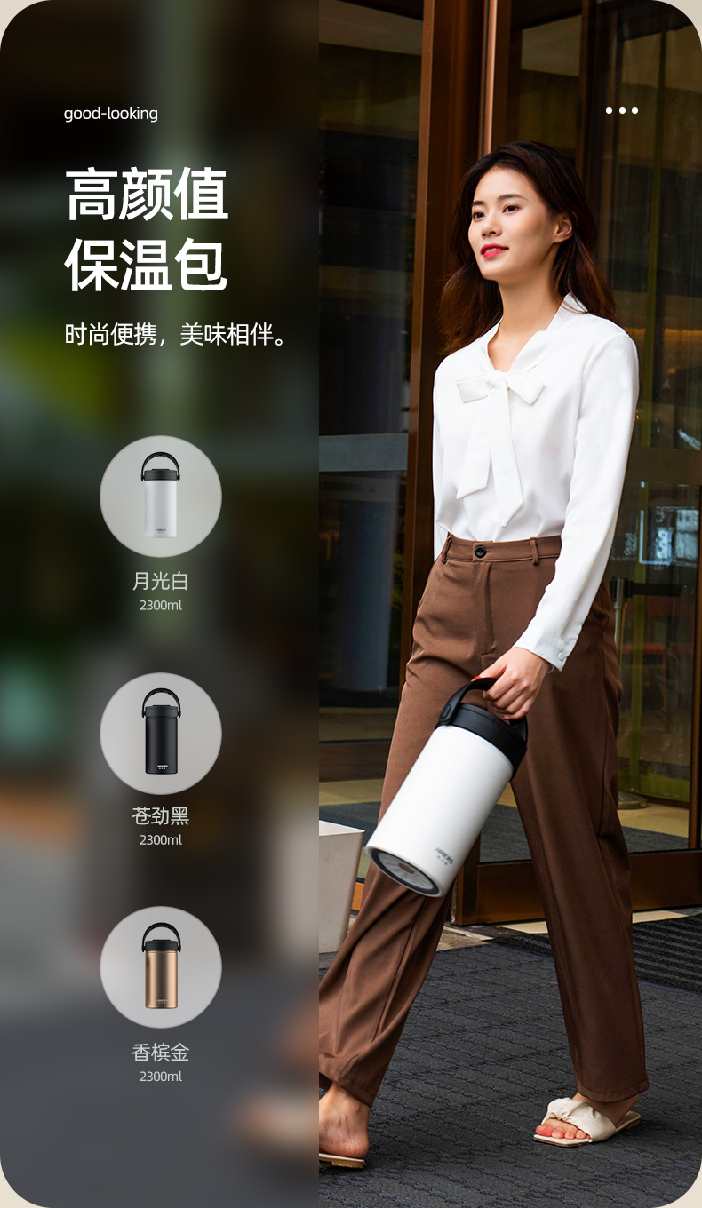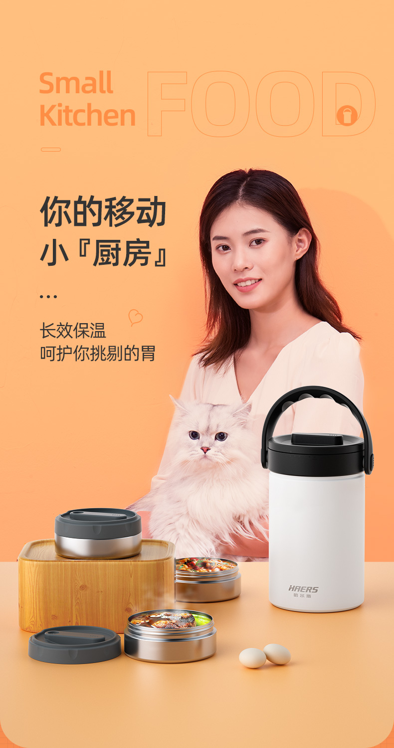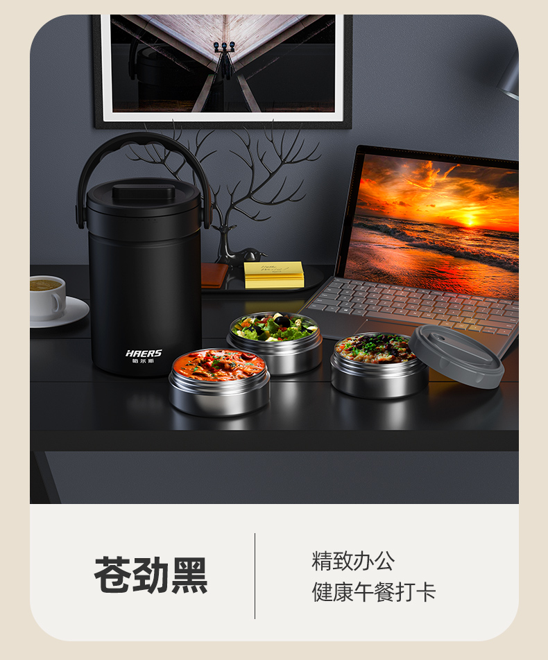 哈尔斯倍乐食光保温提锅/保温饭盒多层2.3升大容量提锅304不锈钢长效保温桶上班族学生带饭汤盒赠餐具 月光白2300ml【四层饭盒 内带餐具】 LR-2300-17 自营