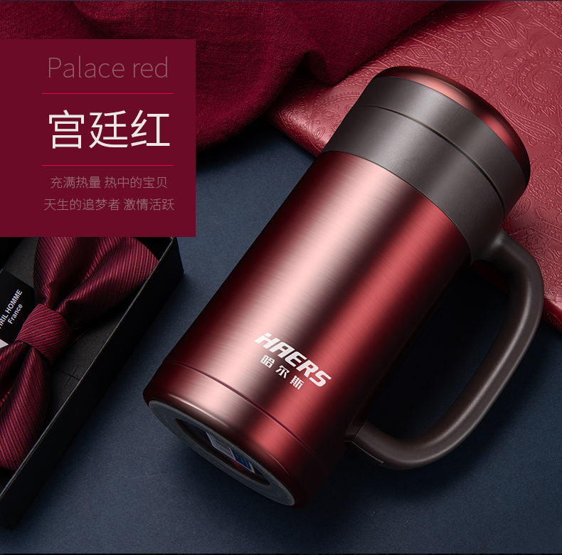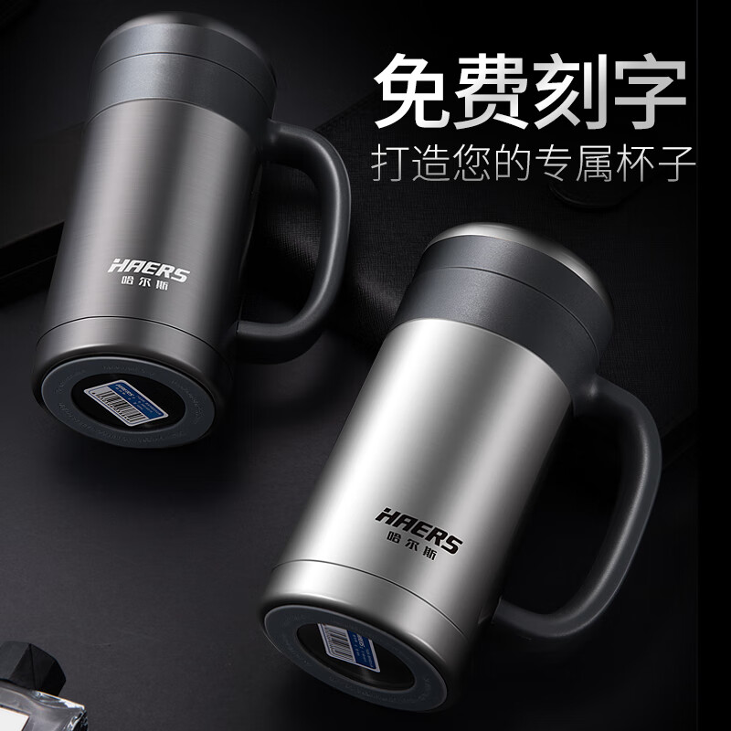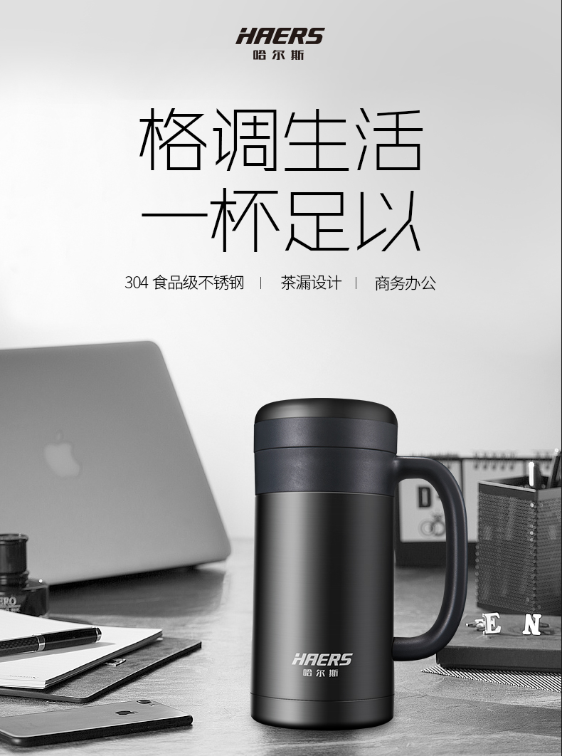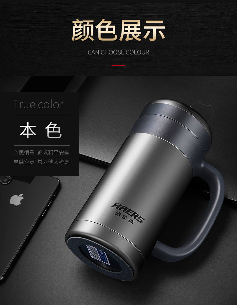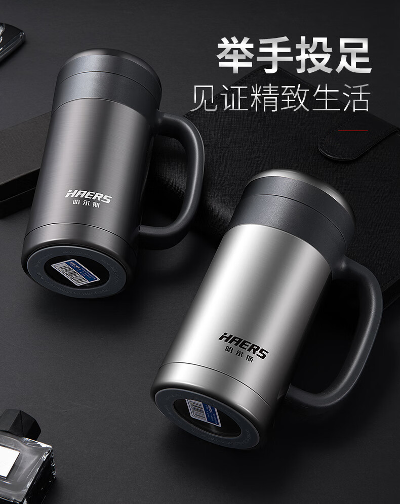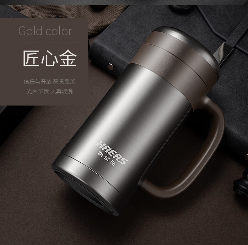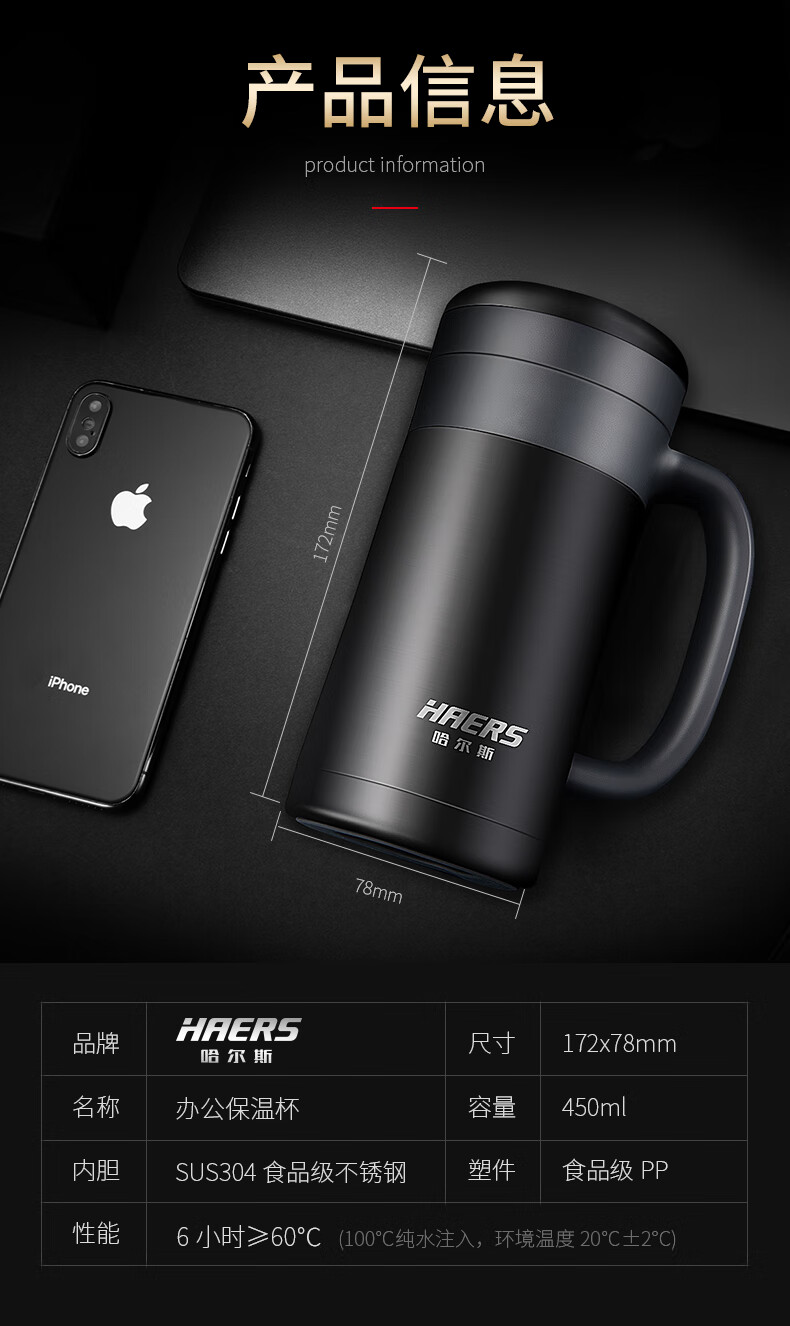 哈尔斯雅系列真空办公杯/304不锈钢高档办公杯保温水杯男女士带手柄泡茶水杯 450ml HBG-450-13 自营