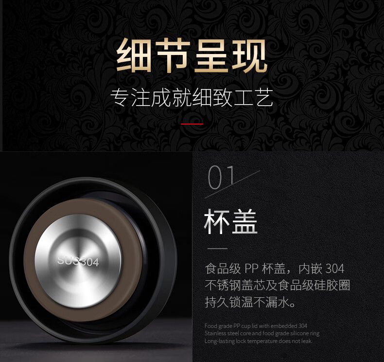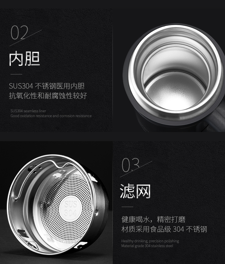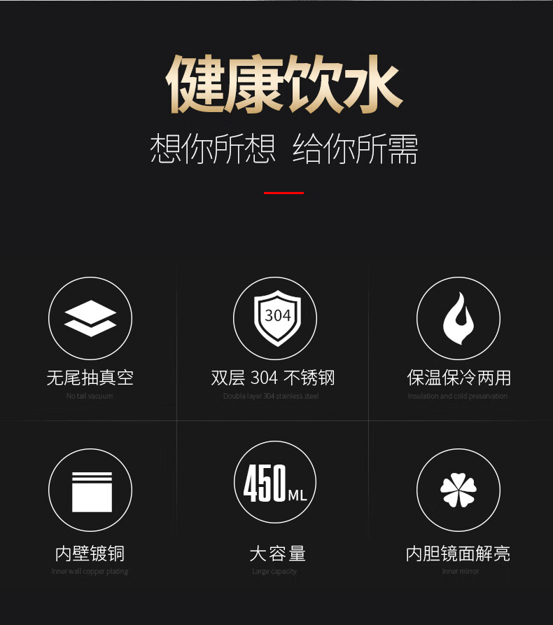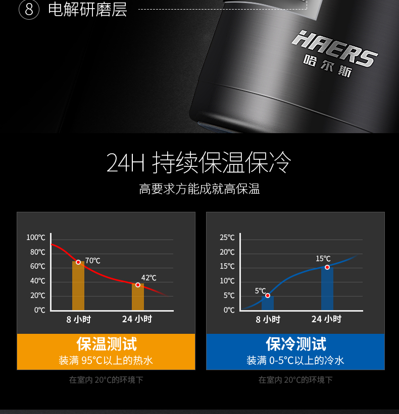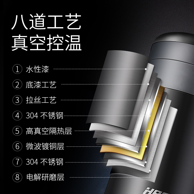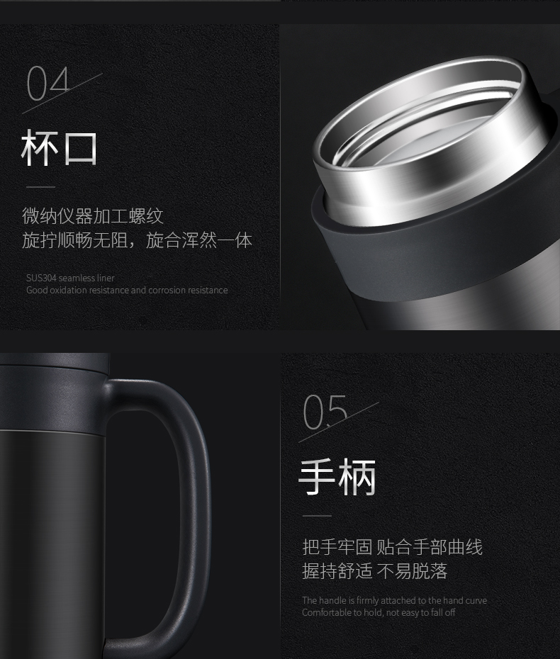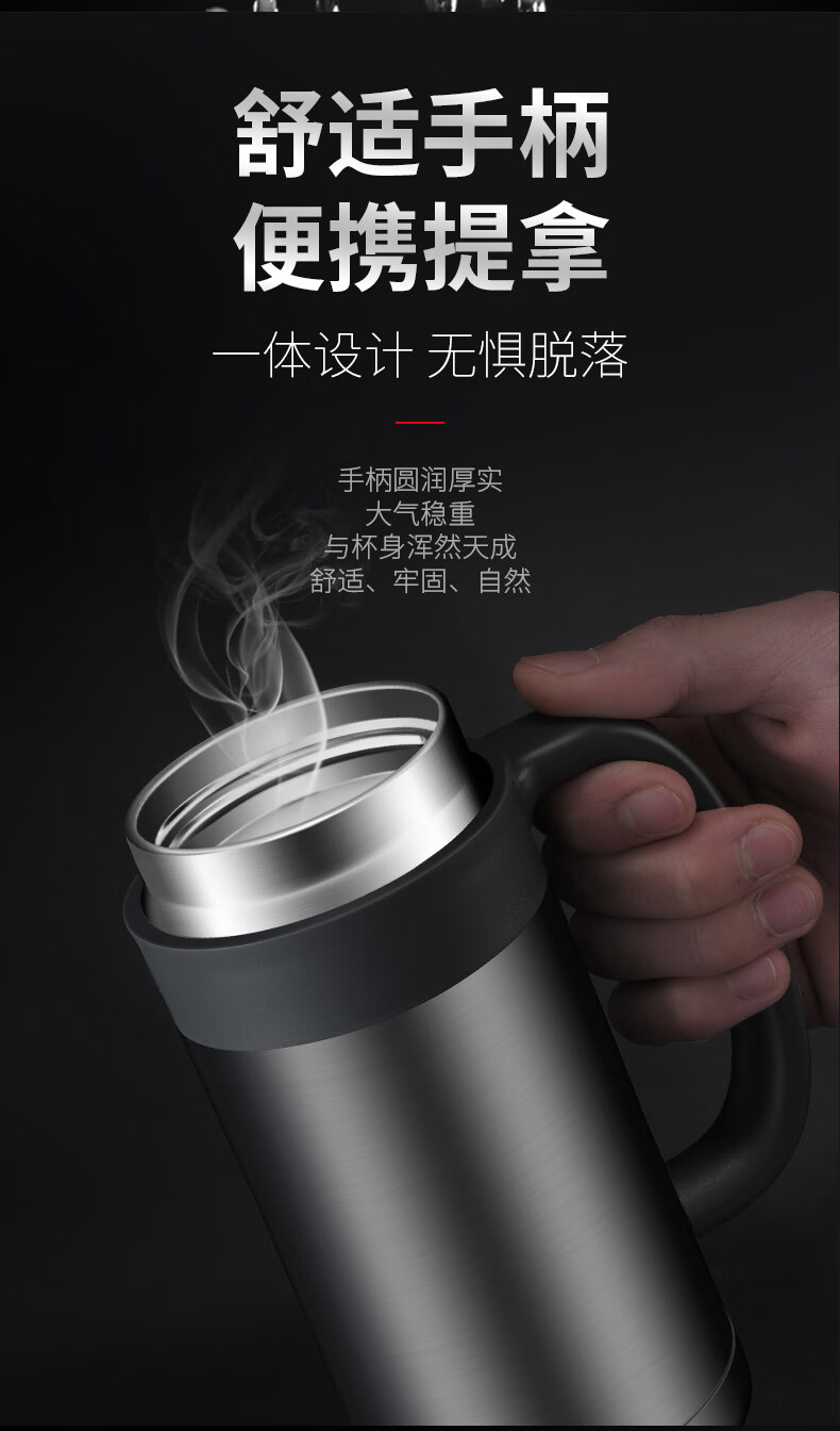 哈尔斯雅系列真空办公杯/304不锈钢高档办公杯保温水杯男女士带手柄泡茶水杯 450ml HBG-450-13 自营