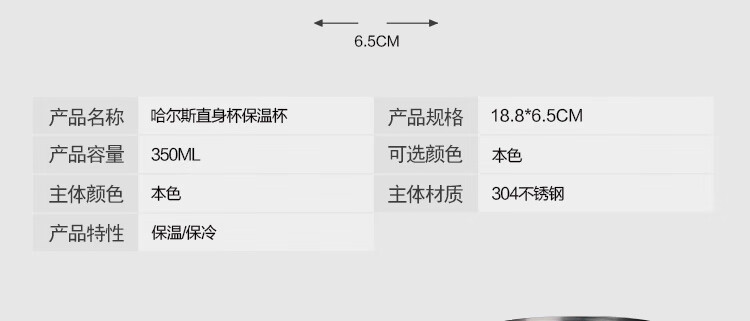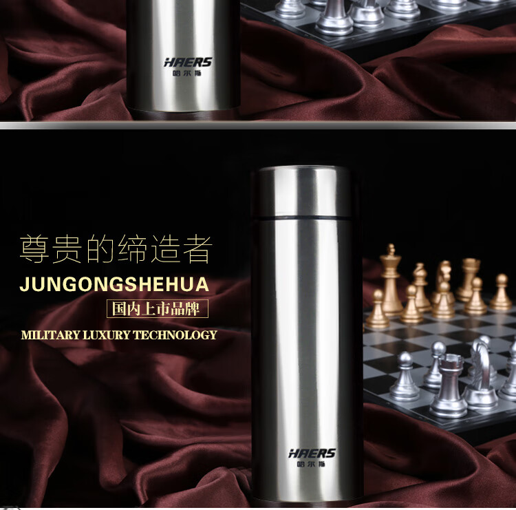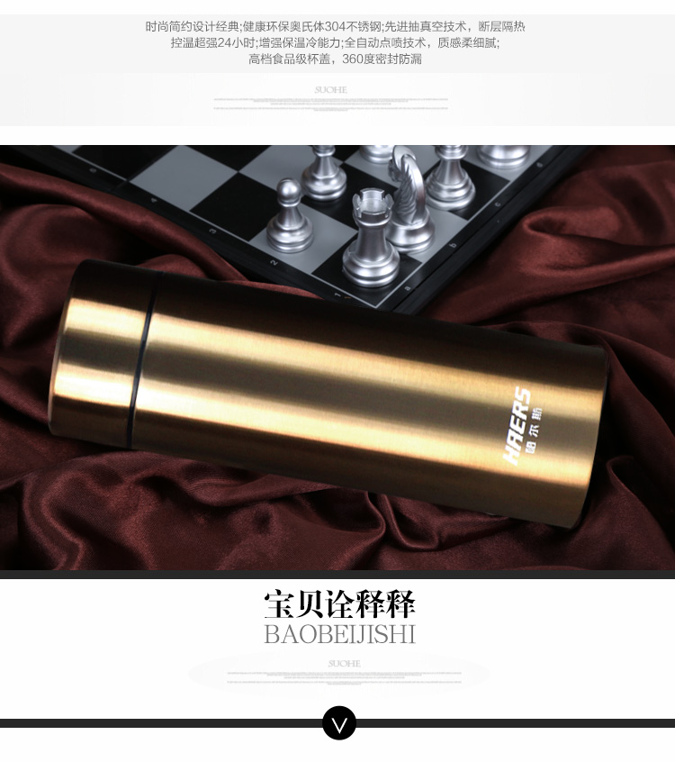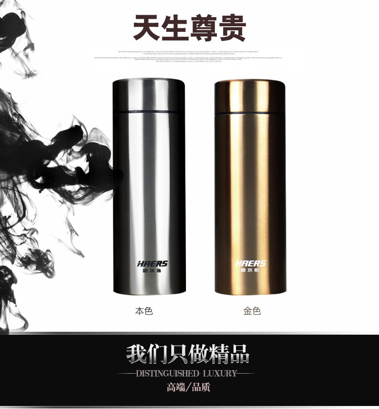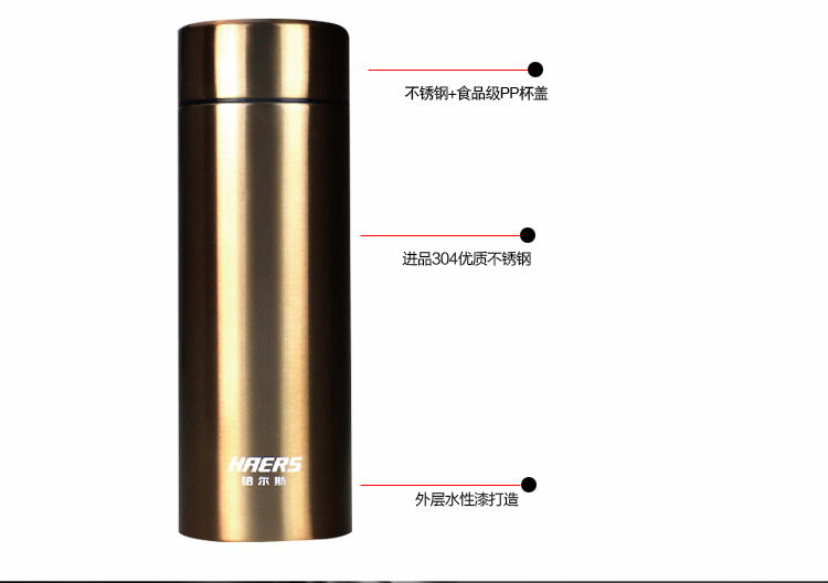 哈尔斯 保温杯 304不锈钢保温旅行杯防滑硅胶杯底便携车载 金色 350ml HW-350-45 自营