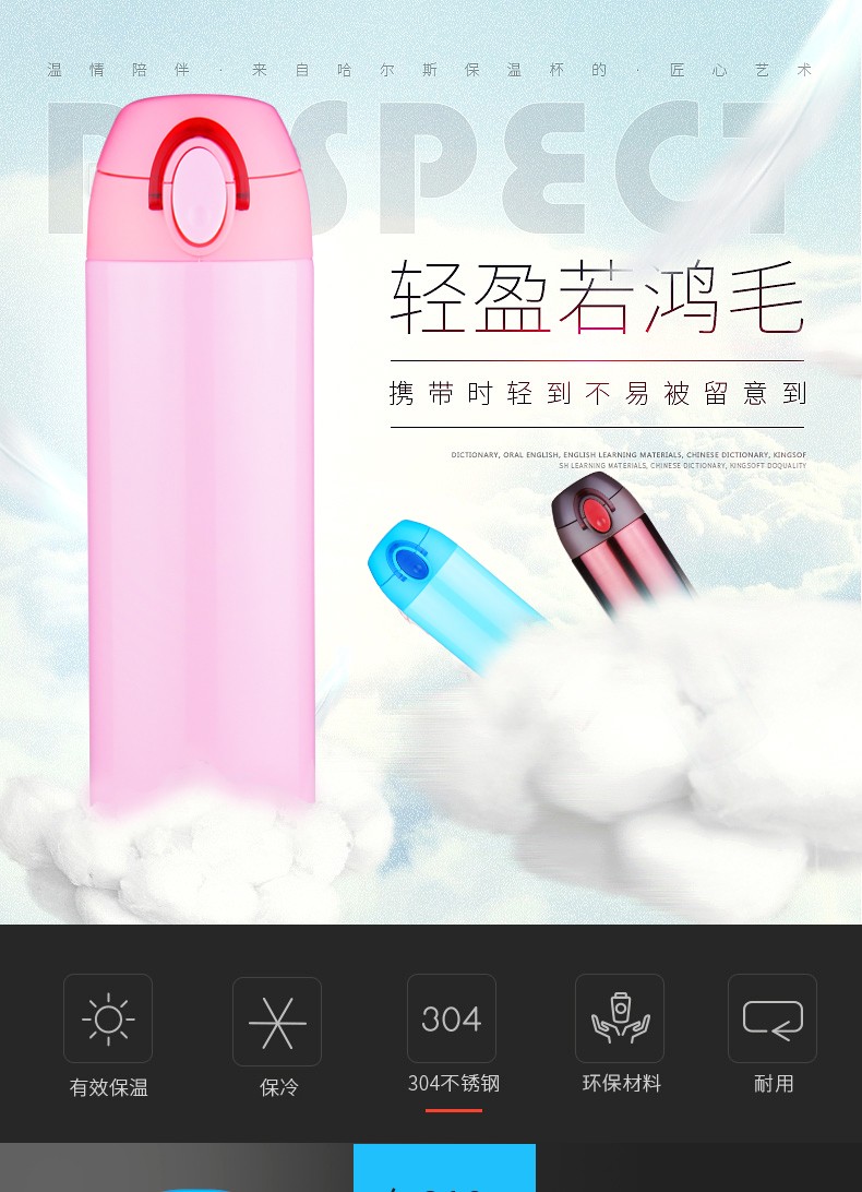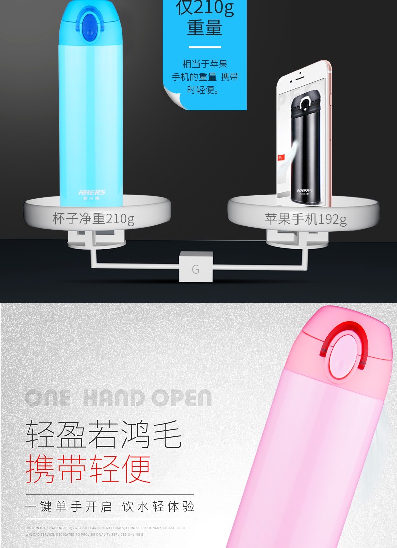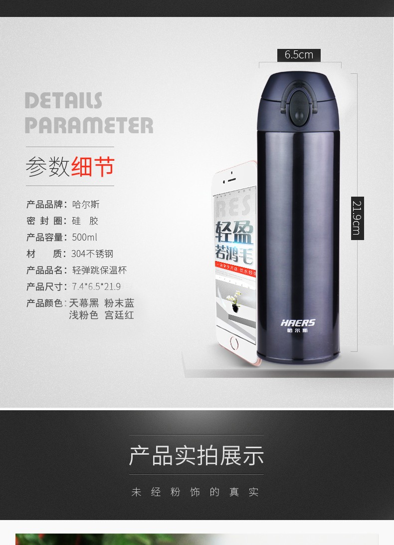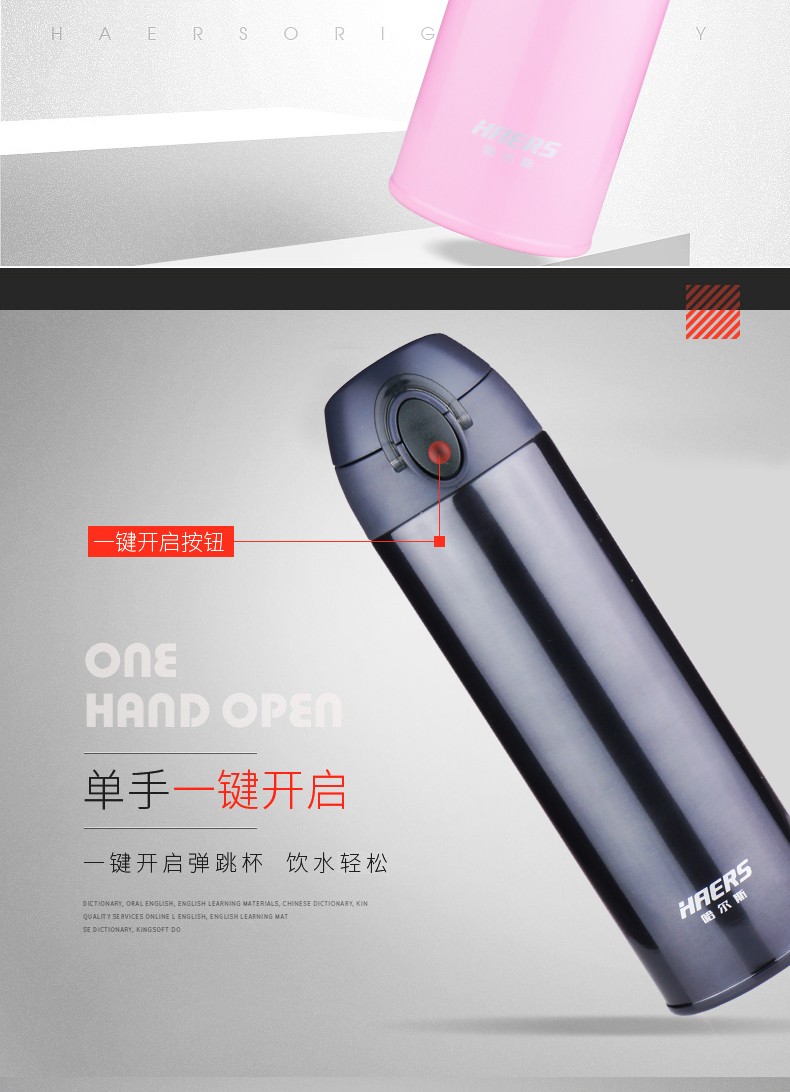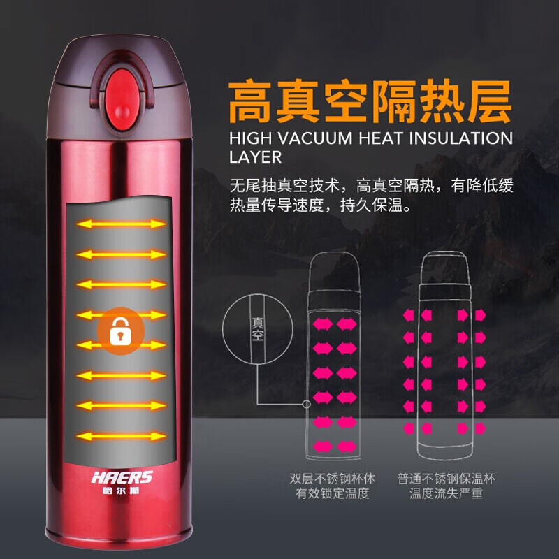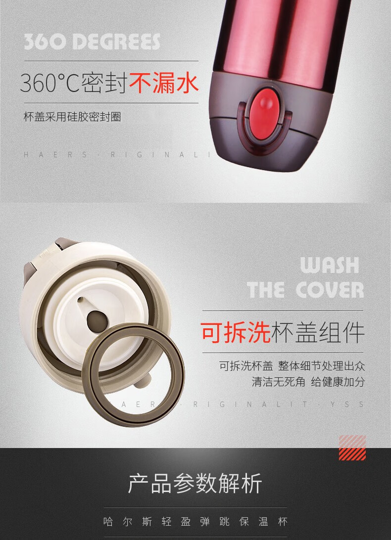 哈尔斯(HAERS)保温杯 男女便携时尚不锈钢保温水杯子车载水杯学生喝水杯 500ml- HD-500-24 自营