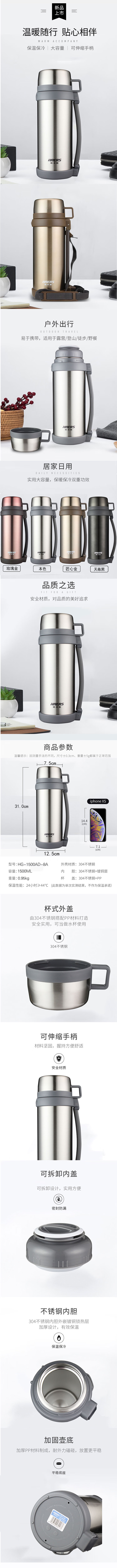 哈尔斯(HAERS)经典真空保温壶 咖啡壶 HG-1500AD-8A 自营