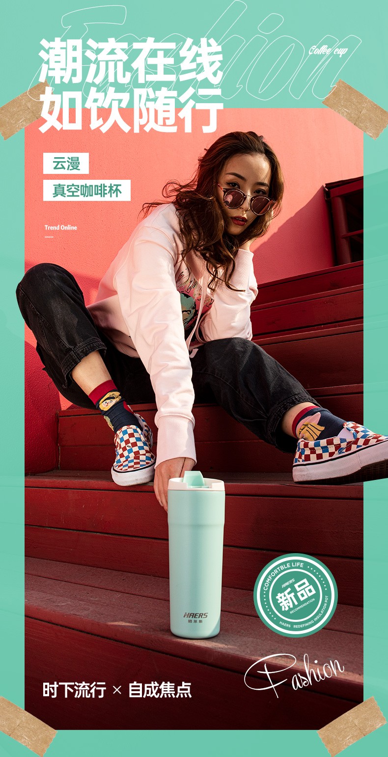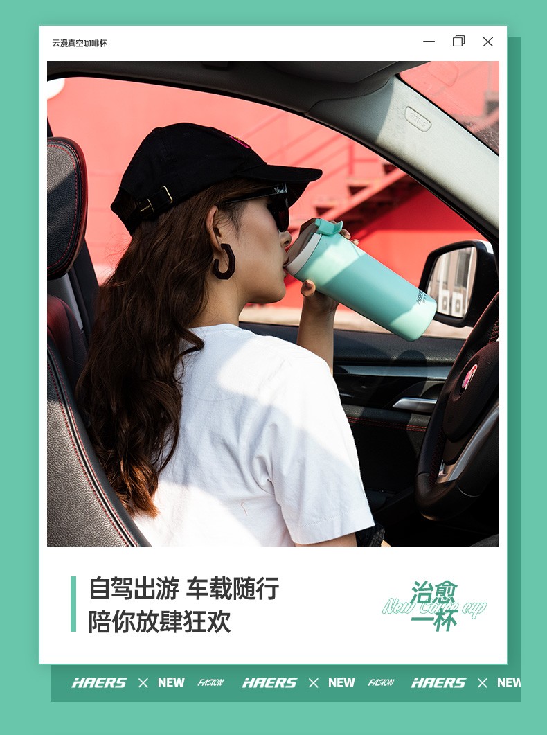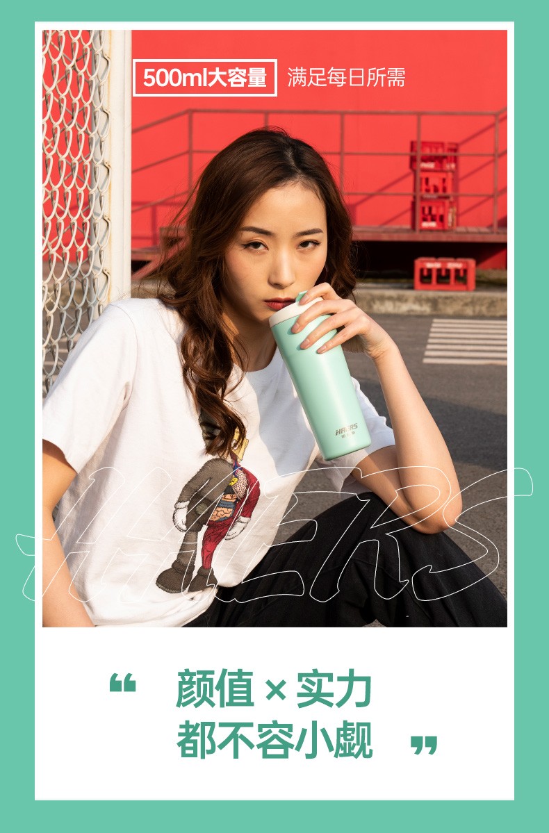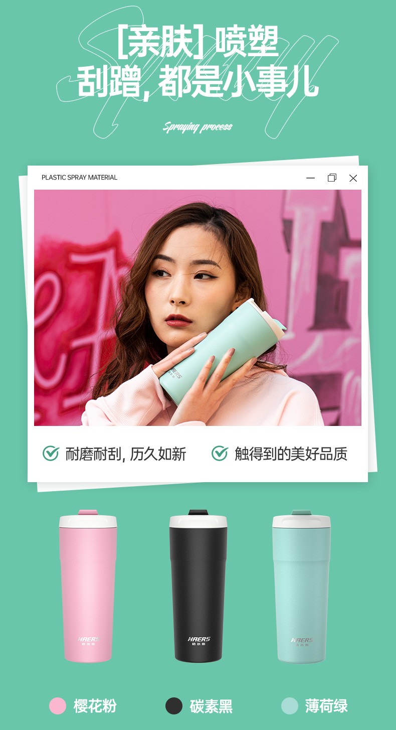 哈尔斯车载保温杯户外办公用咖啡杯304不锈钢清新时尚水杯500ml HE-500-8 自营