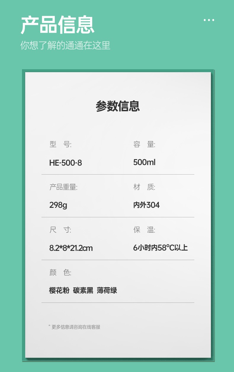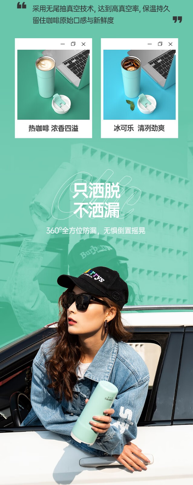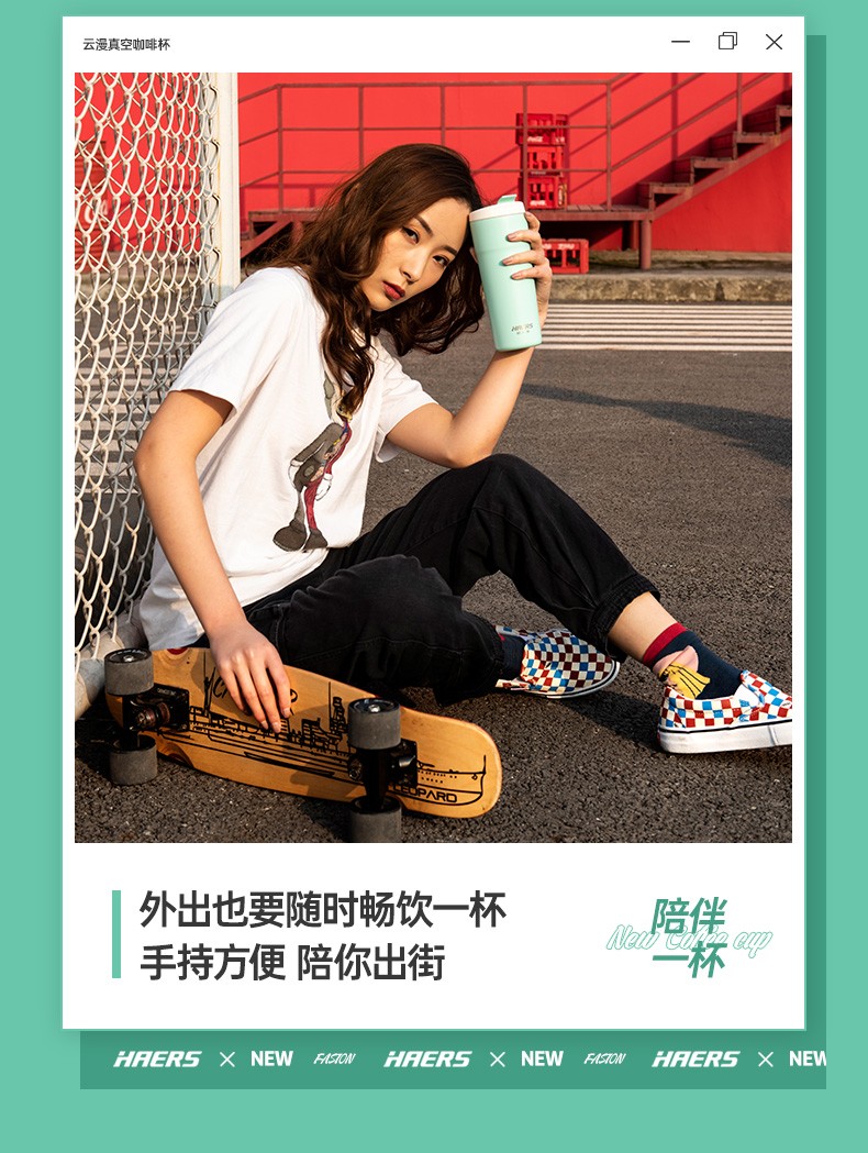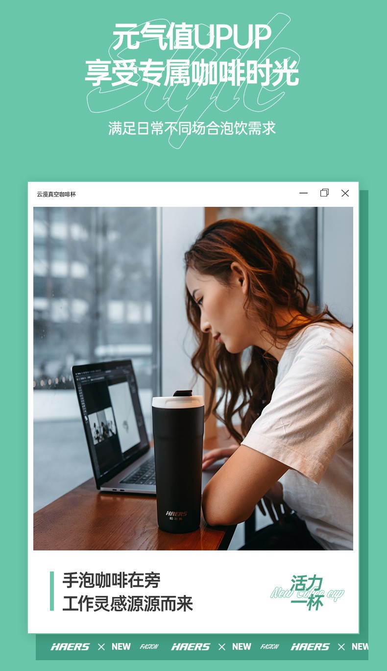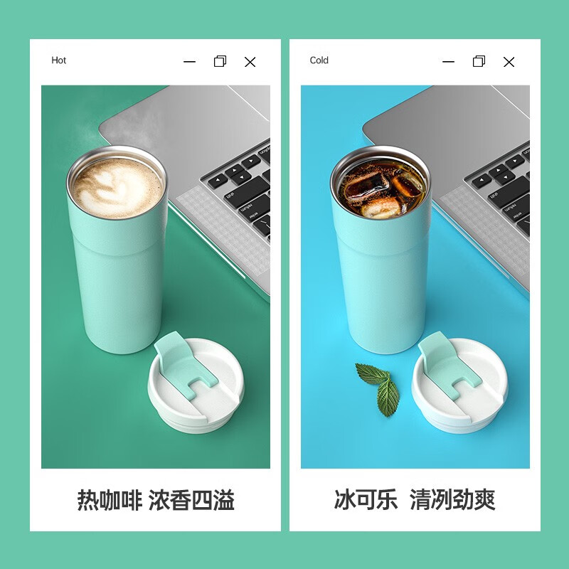 哈尔斯车载保温杯户外办公用咖啡杯304不锈钢清新时尚水杯500ml HE-500-8 自营