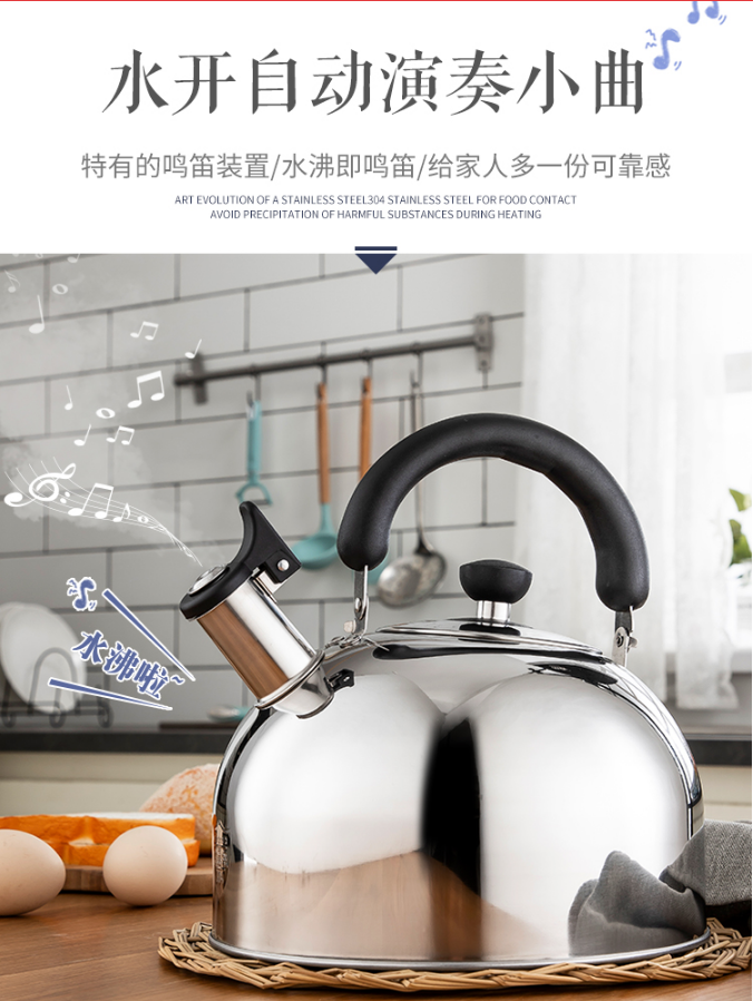 美厨(maxcook)烧水壶304不锈钢水壶 4L加厚鸣音 煤气电磁炉通用 乐厨系列 MS004Y 自营