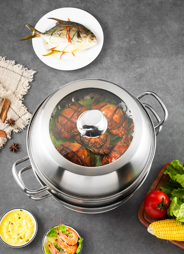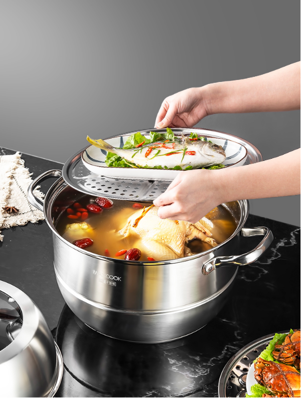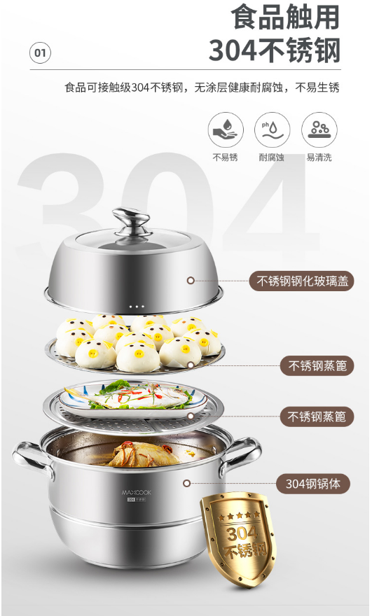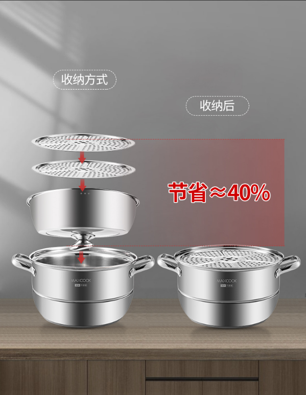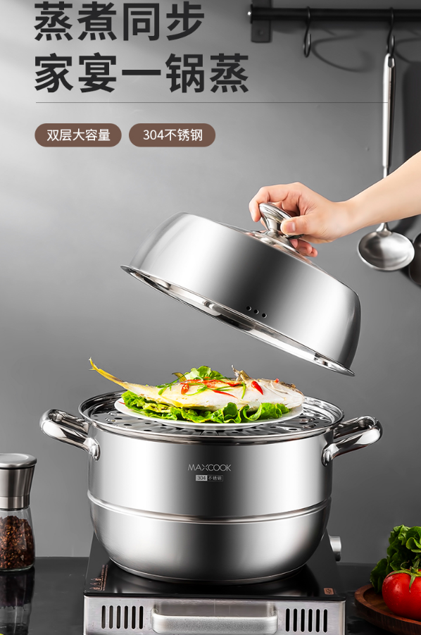 美厨(maxcook)蒸锅 304不锈钢28cm二层蒸锅 加厚复底汤蒸锅 电磁炉燃气炉通用 MCZ557 自营
