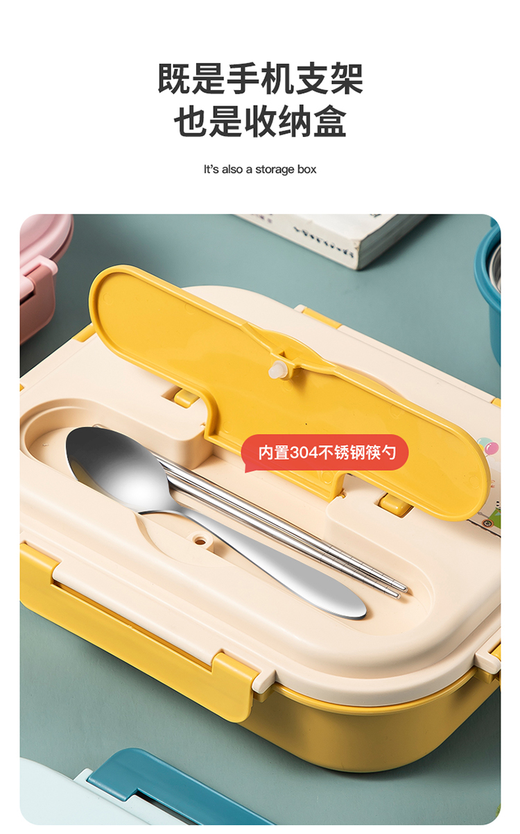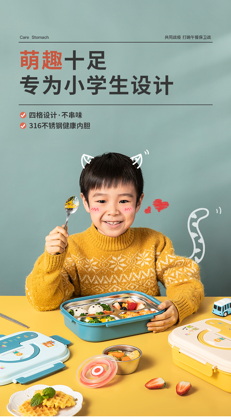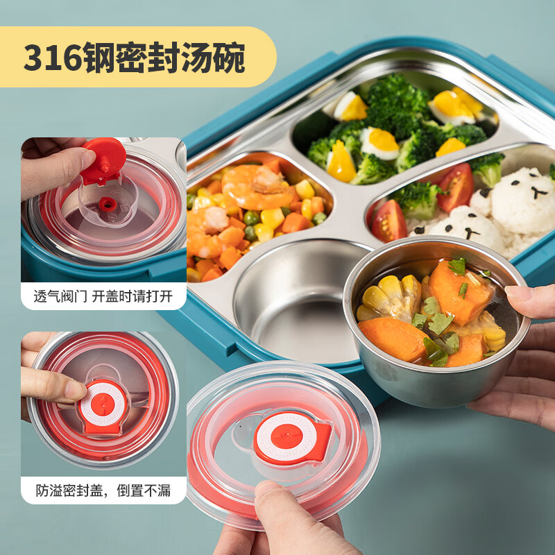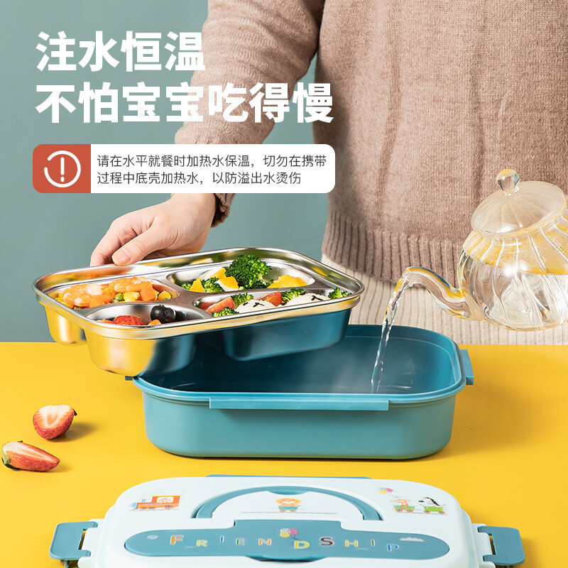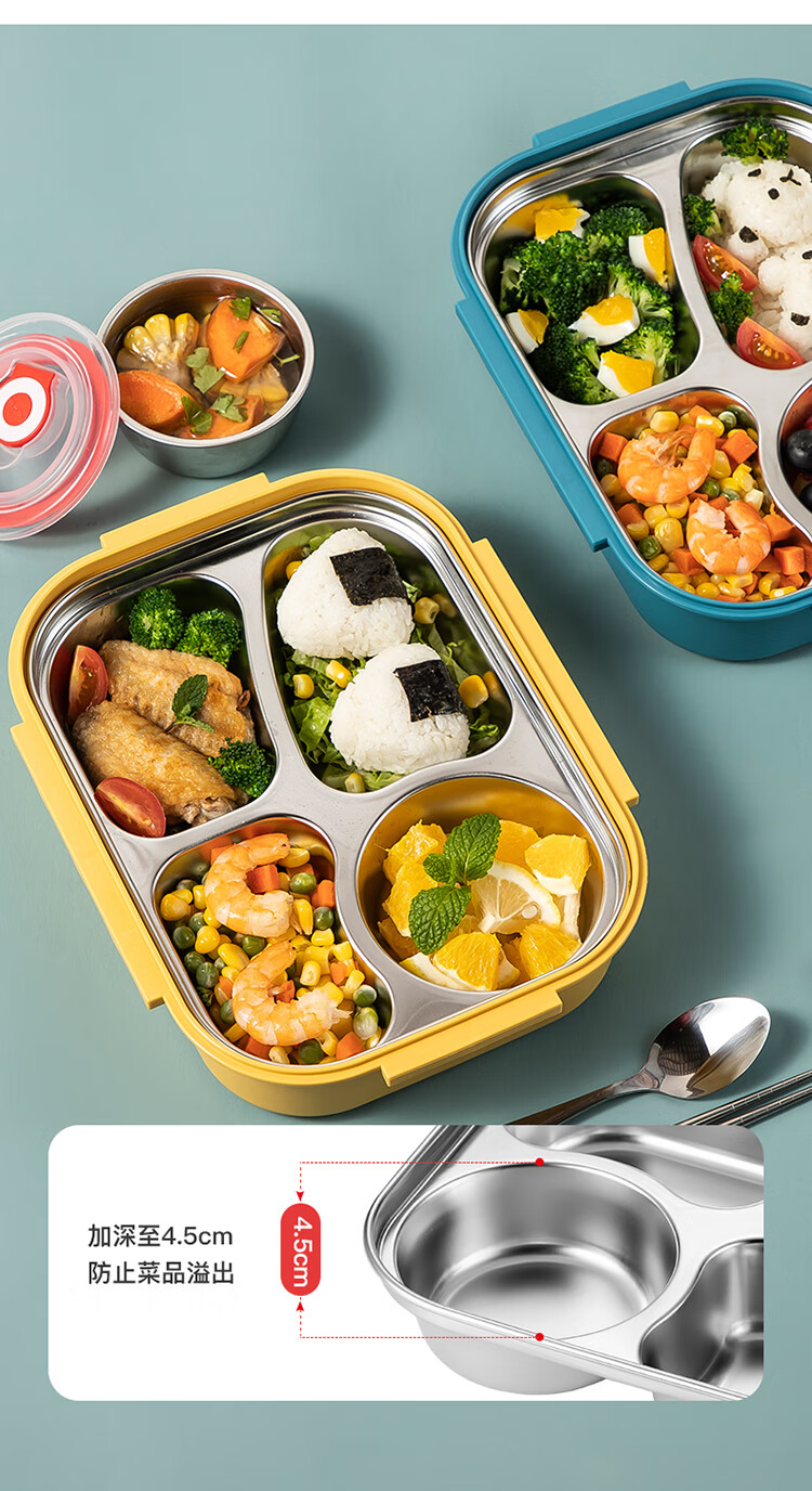 美厨(maxcook)316不锈钢饭盒 加大加深4格学生饭盒儿童饭盒餐盘保温便当盒 配餐具保温袋 卡通黄MCFT4070 自营