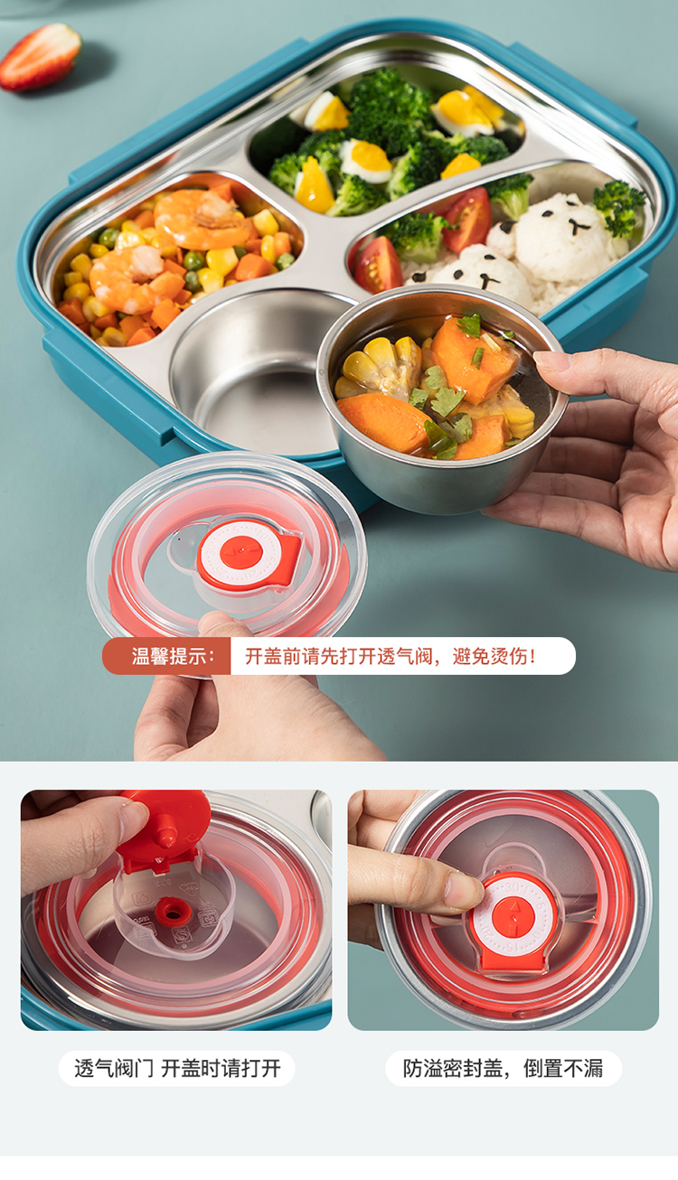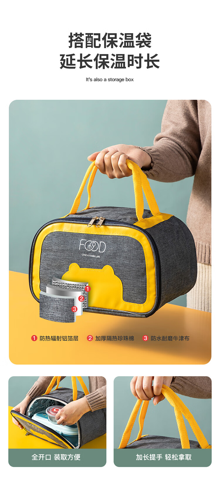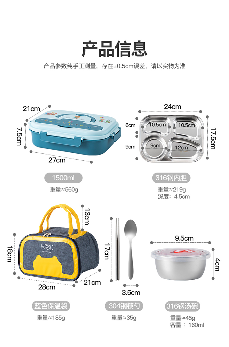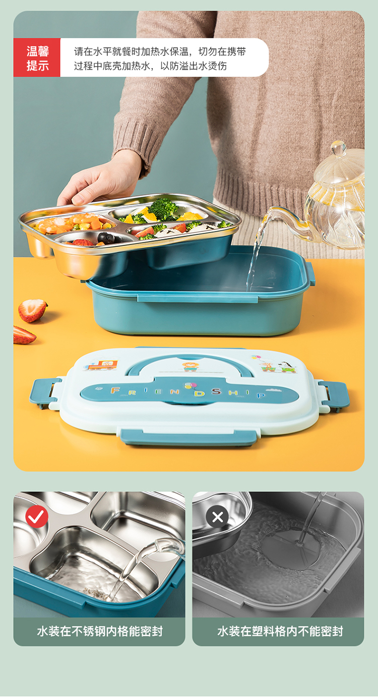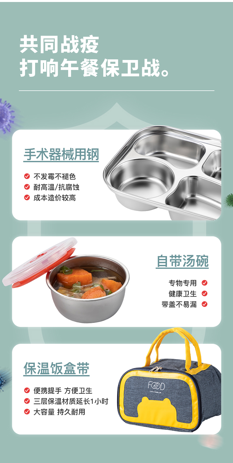 美厨(maxcook)316不锈钢饭盒 加大加深4格学生饭盒儿童饭盒餐盘保温便当盒 配餐具保温袋 卡通黄MCFT4070 自营
