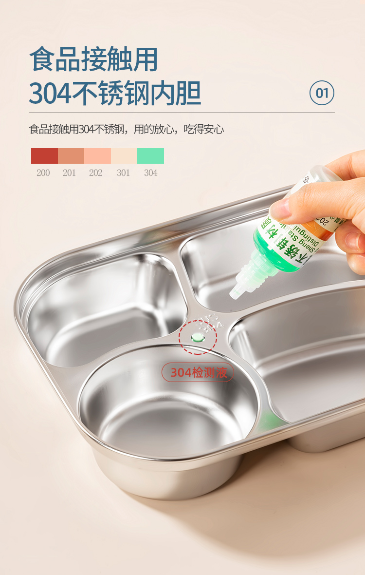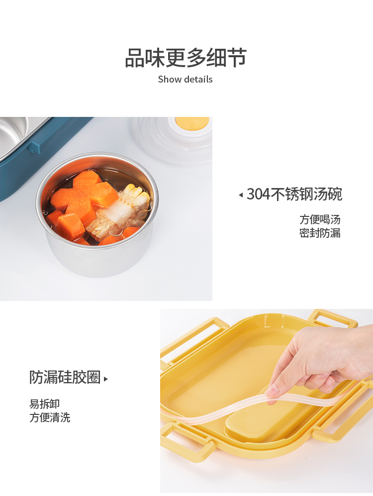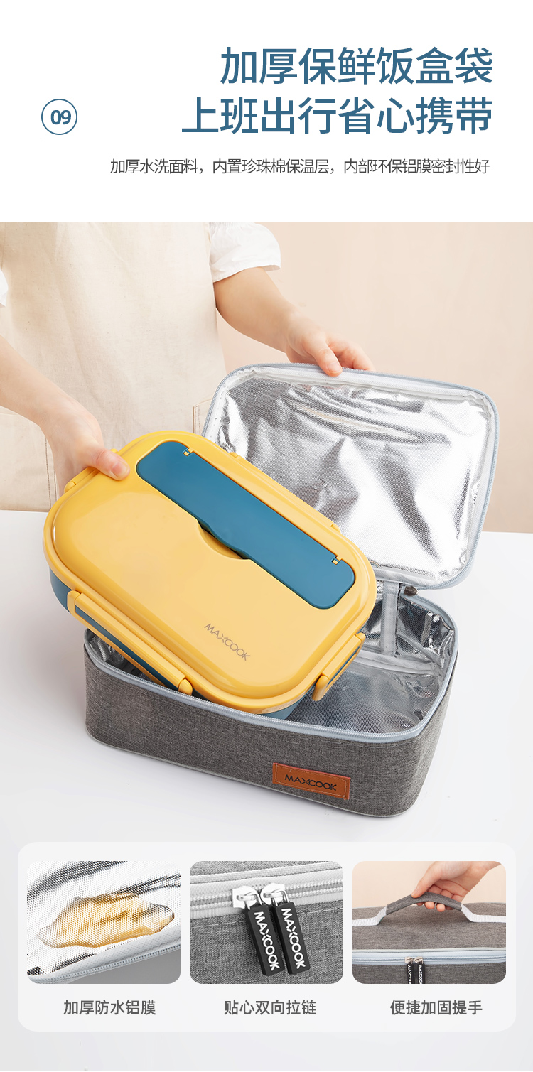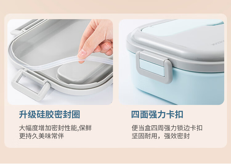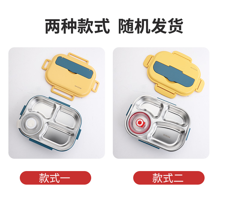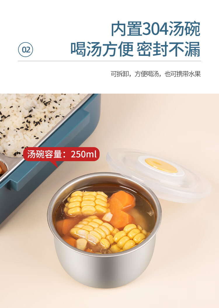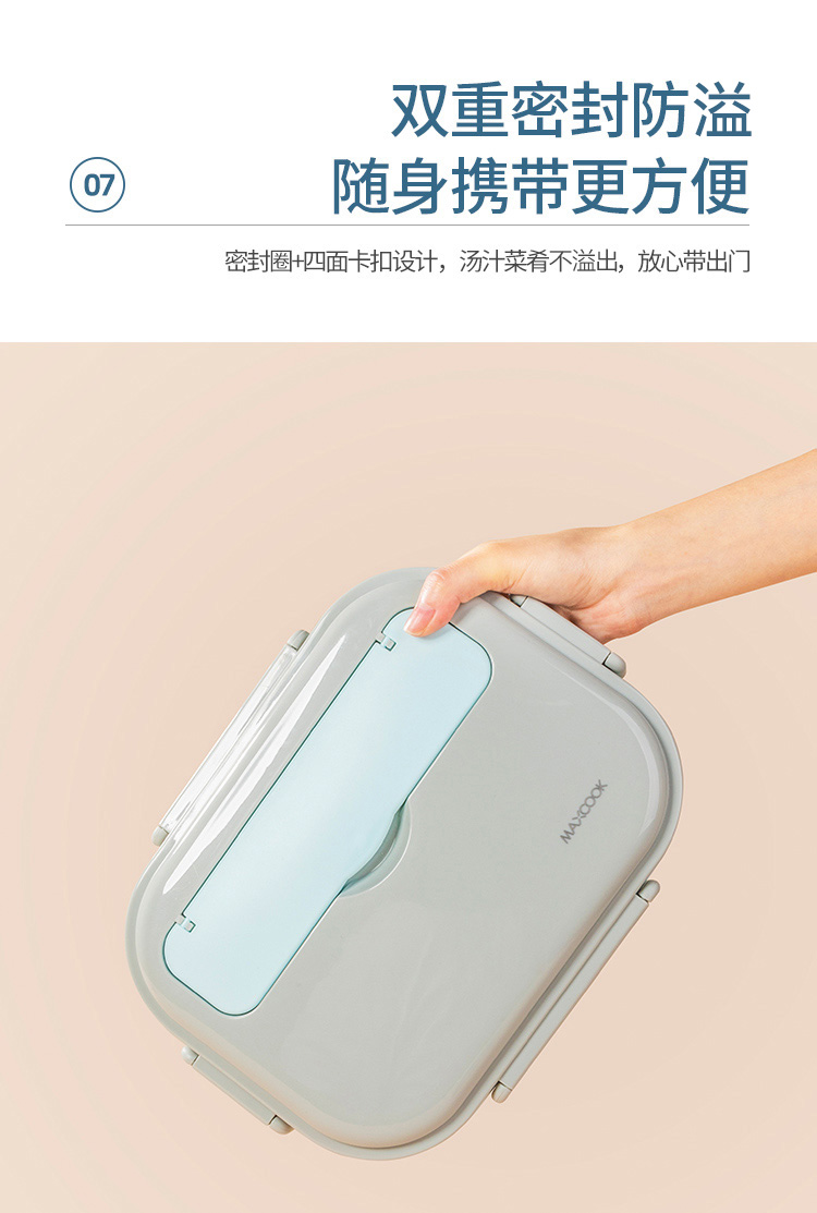 美厨(MAXCOOK)304不锈钢饭盒 4.5cm加大加深学生分格餐盒分隔饭盒男女保温便当盒配密封盖 深邃蓝四格1.6L【配筷勺+汤碗】MCFT532 自营