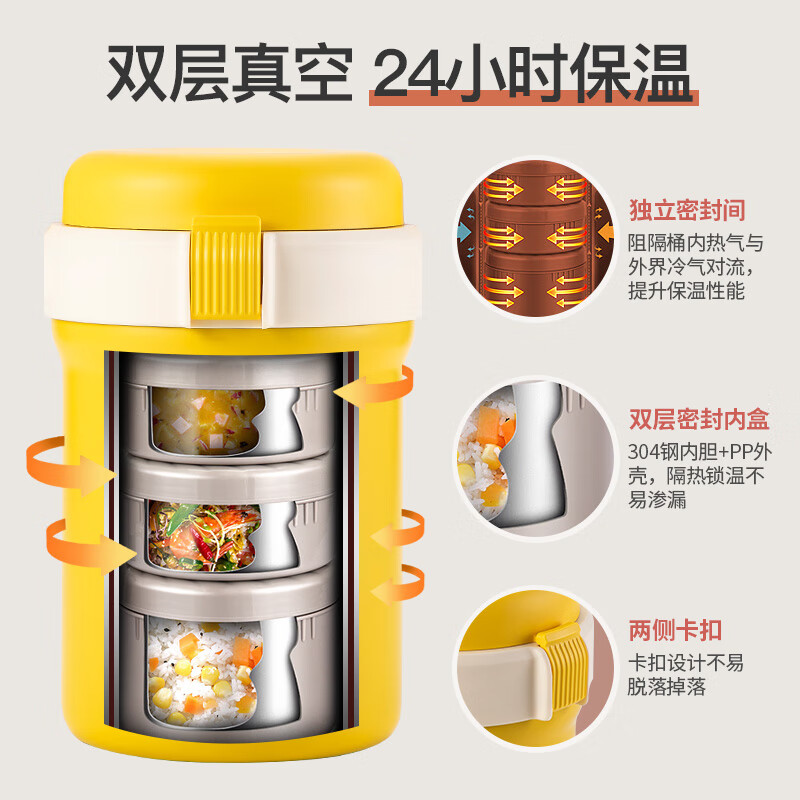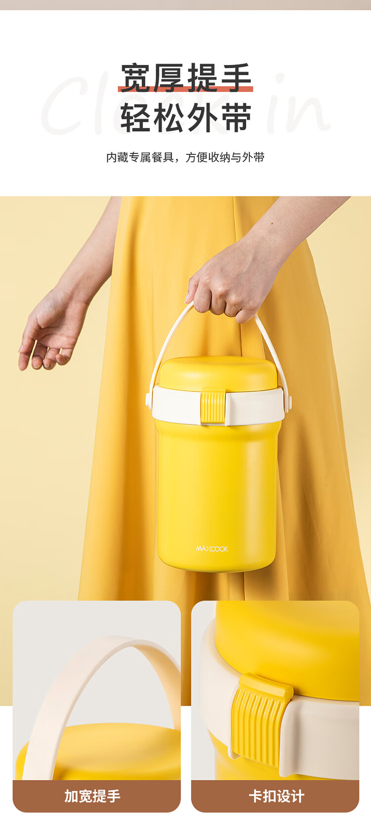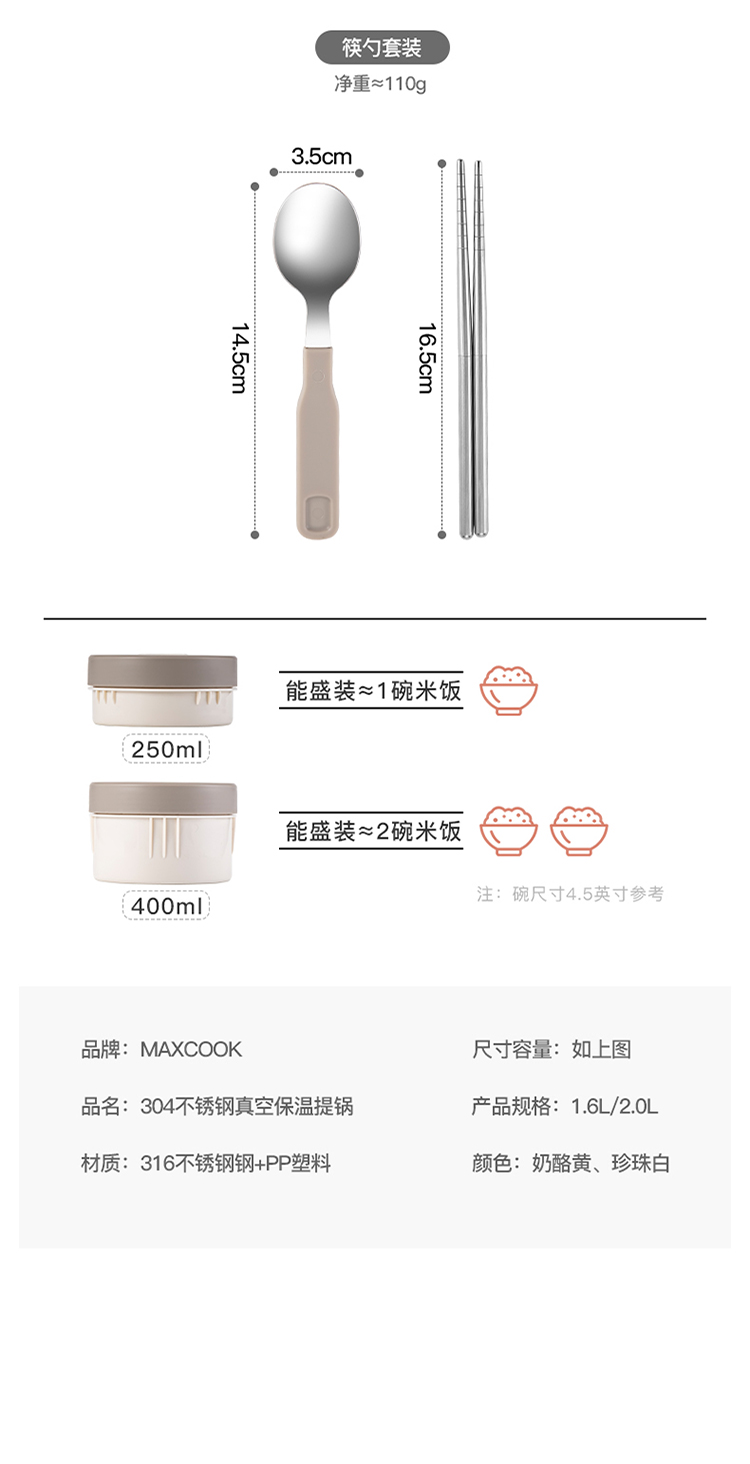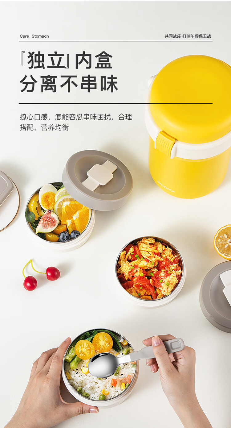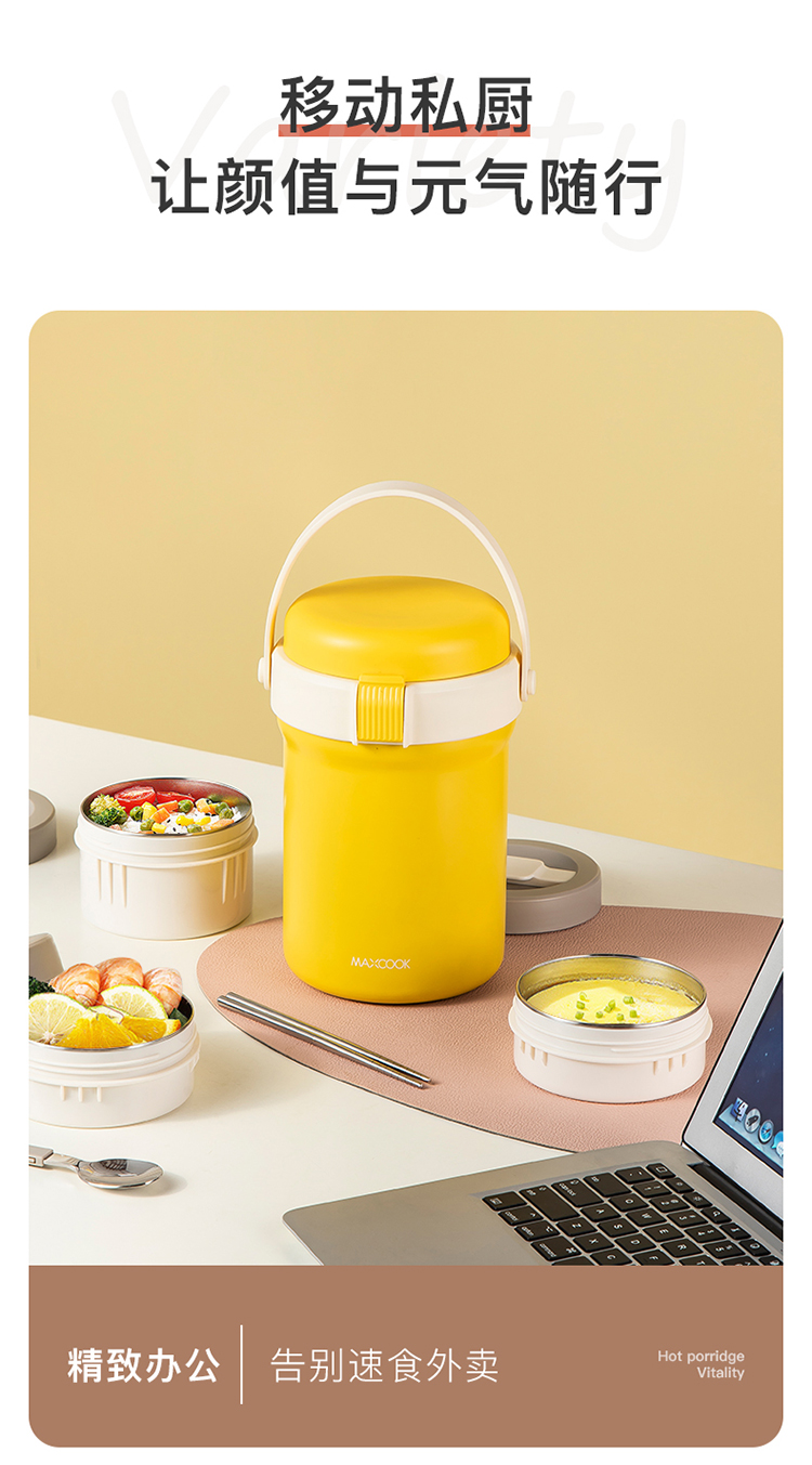美厨(MAXCOOK)保温饭盒提锅 304不锈钢真空保温桶 多层分格成人学生便当盒保温汤桶餐盒 【珍珠白1.6L】配餐具 MCTG0942 自营